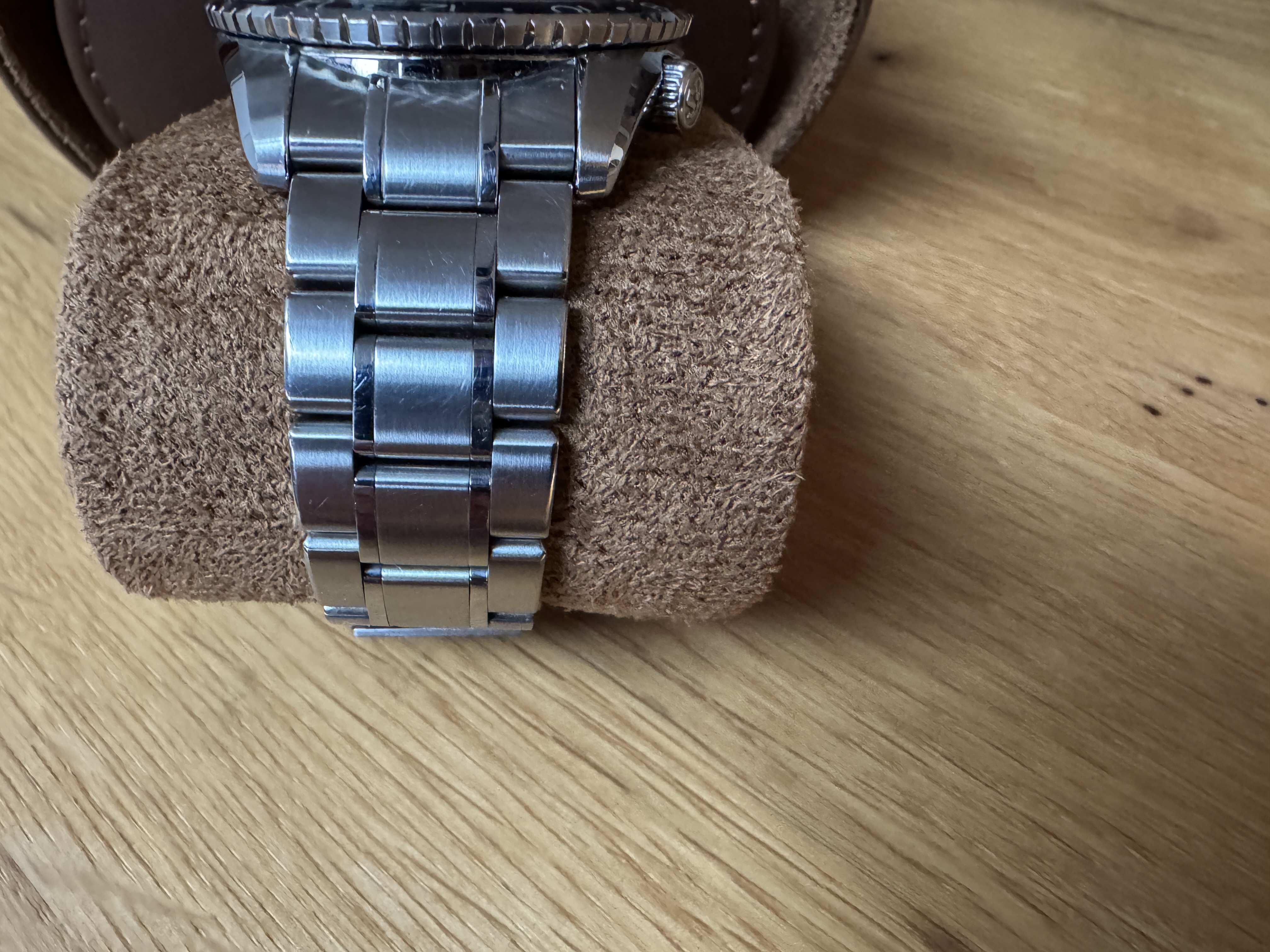 Ik denk dat hij scherp geprijst is, dat komt omdat er geen doos of papieren bijzitten behalve een rekening van de handelaar waar ik het horloge van gekocht heb.