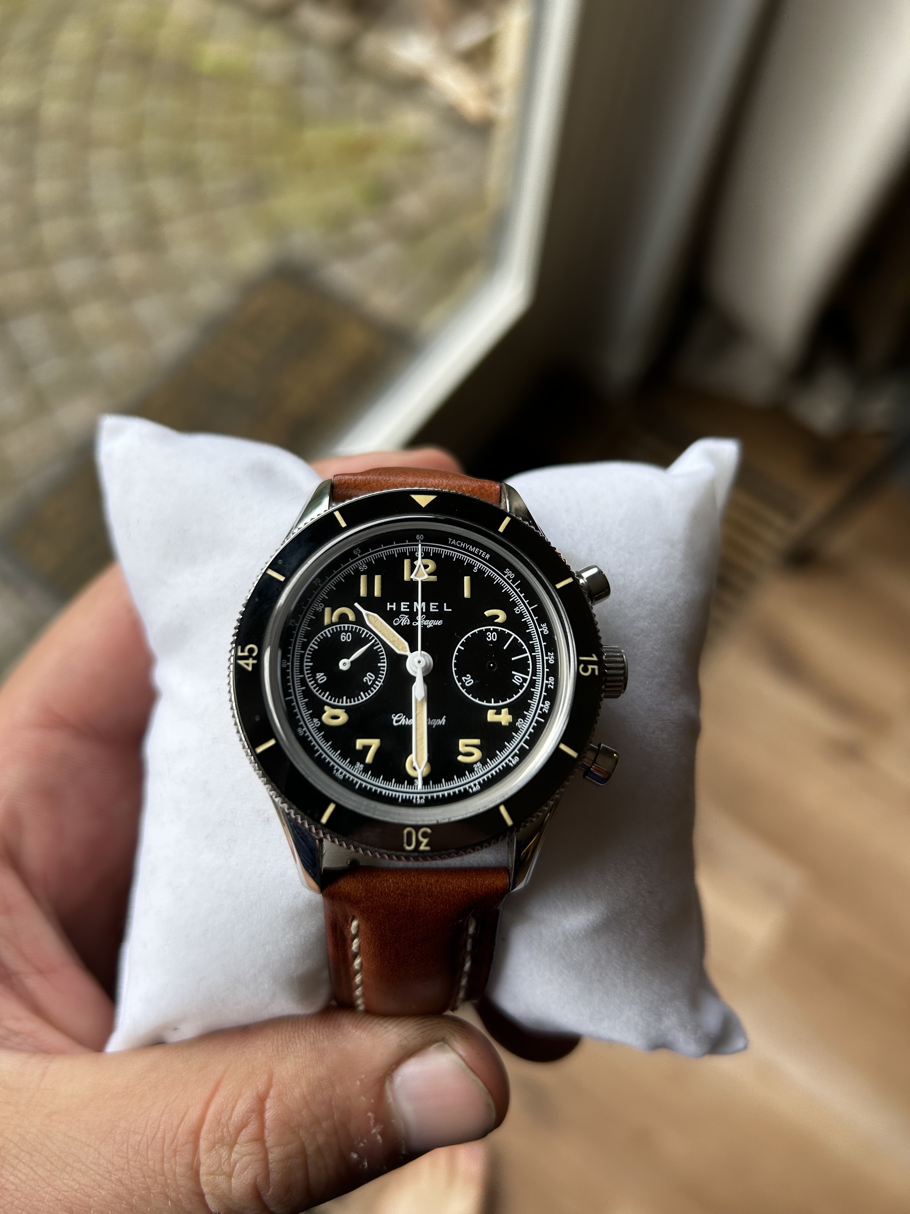 Prachtige Hemel Air League met seagull ST19 uurwerk. Helaas heeft een van de wijzers van de subdials losgelaten en die heeft een horlogemaker er voor mij uitgehaald. Hier is de prijs ook naar.