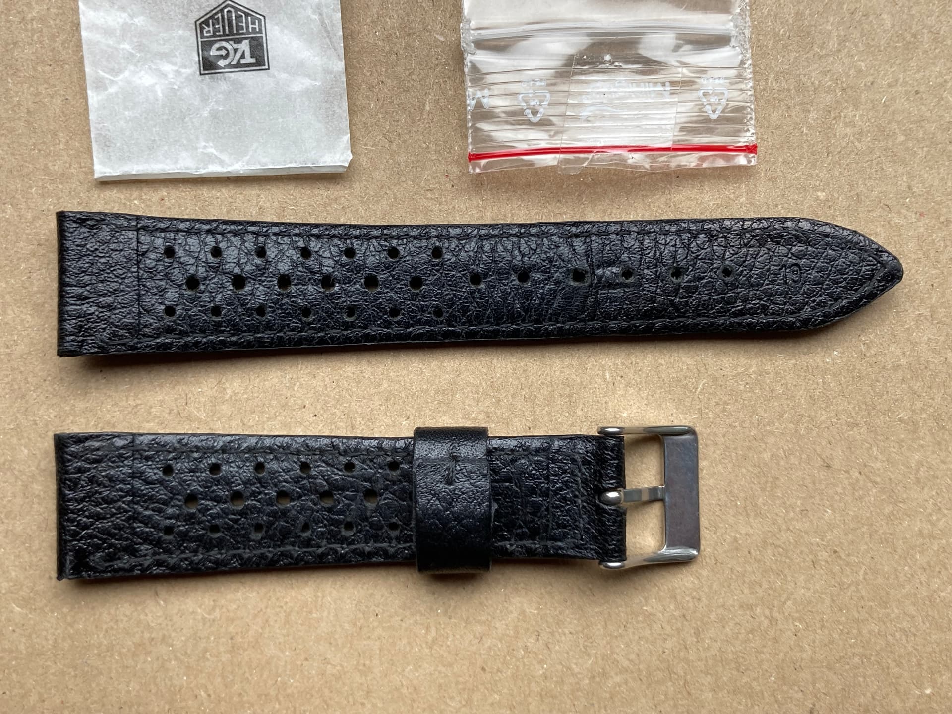 Omdat mijn Heuer Carrera de deur uit is bied ik deze z.g.a.n. Heuertime Abcoro Racing Strap 19mm inclusief OEM Heuer buckle (16mm) aan. Originele TAG Heuer verpakking zit erbij.
