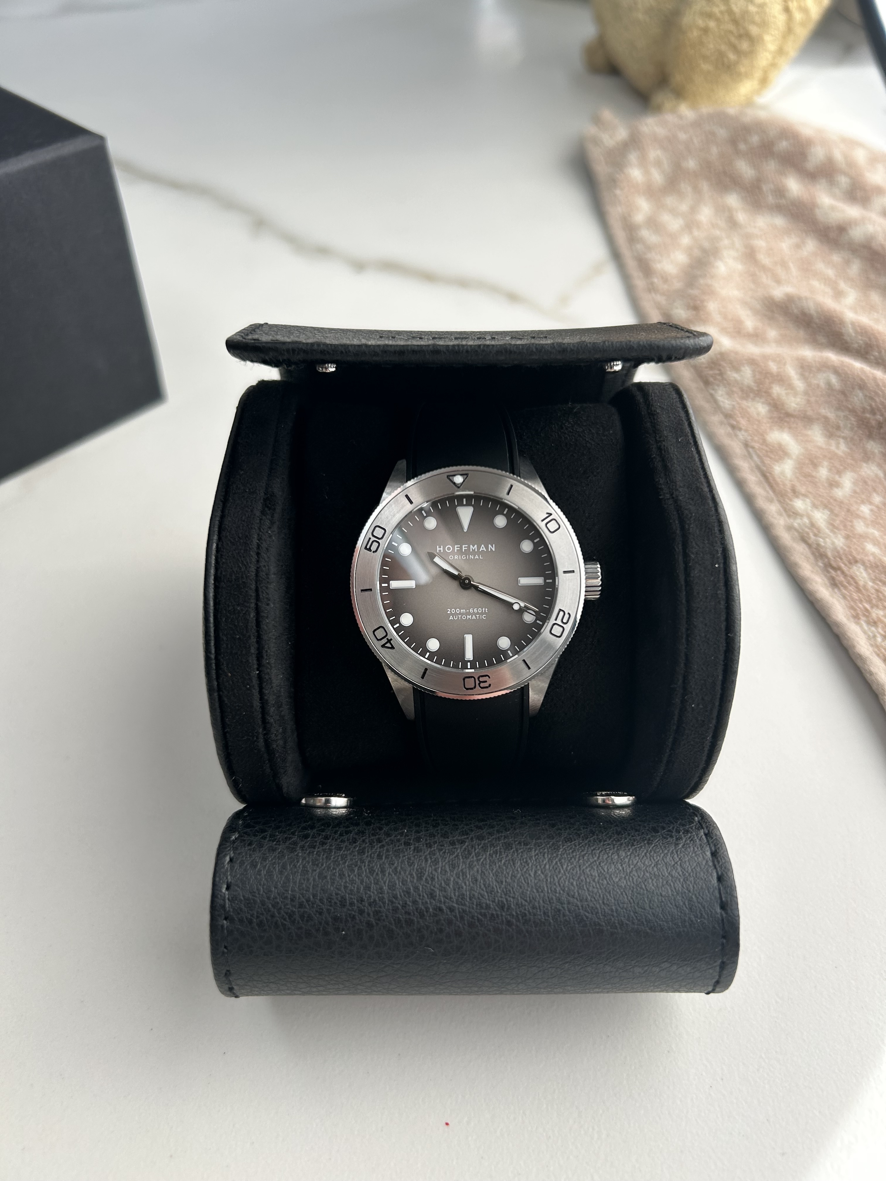 Verrassend afgewerkt voor het geld maar toch weinig om de pols. Dus daarom in de verkoop. Dit is nummer 003 van 200 en uitverkocht op hun website. Het horloge is een enkele keer gedragen en een keer bandjes mee geswapt. Ik kan geen krasjes oid ontdekken. Foto’s zijn van vandaag.