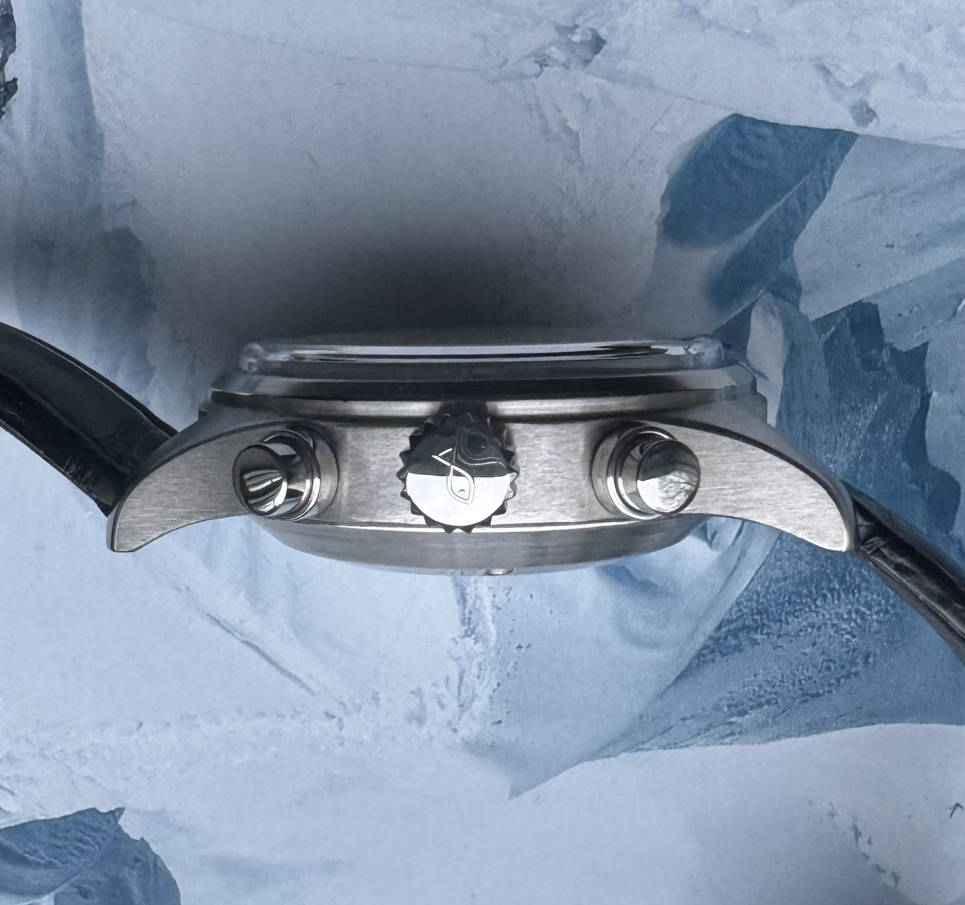 Belangrijk detail: de 3711 heeft een prachtig box-vormig saffierglas. Dit is echt een meerwaarde, die de meer gangbare 3713 opvolger niet heeft.