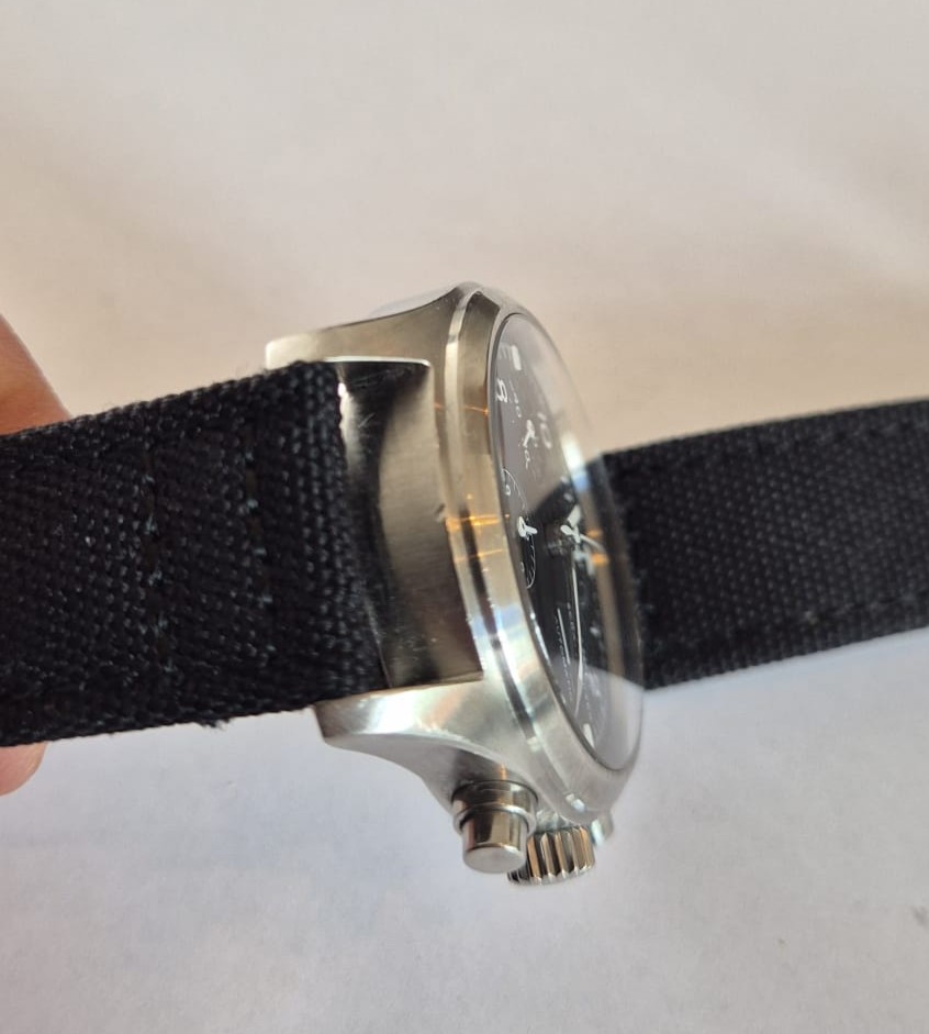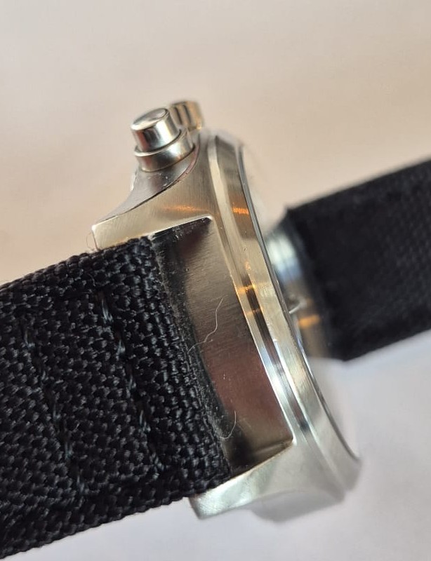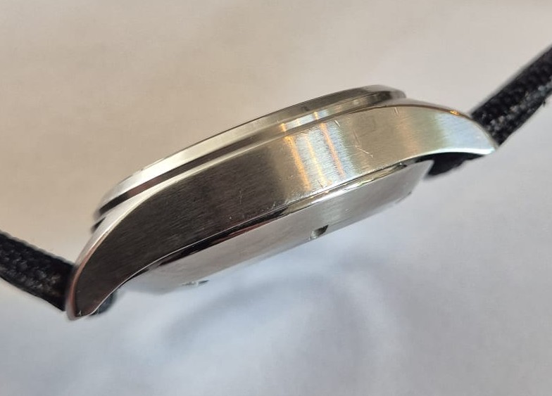 Het horloge is zeker niet mint. Er zitten tikjes en krasjes op de kast, maar het horloge draagt desondanks heerlijk en nu dus zorgeloos. Een tik extra ga je niet merken. Volgens de vorige eigenaar is het horloge geserviced in 2024. Het uurwerk lijkt op basis van de timegrapher in elk geval uitstekend te lopen. Ik weet op dit moment niet 100% zeker of er bewijs van service bij zat, maar ik dacht van wel. Pin me er niet op vast.