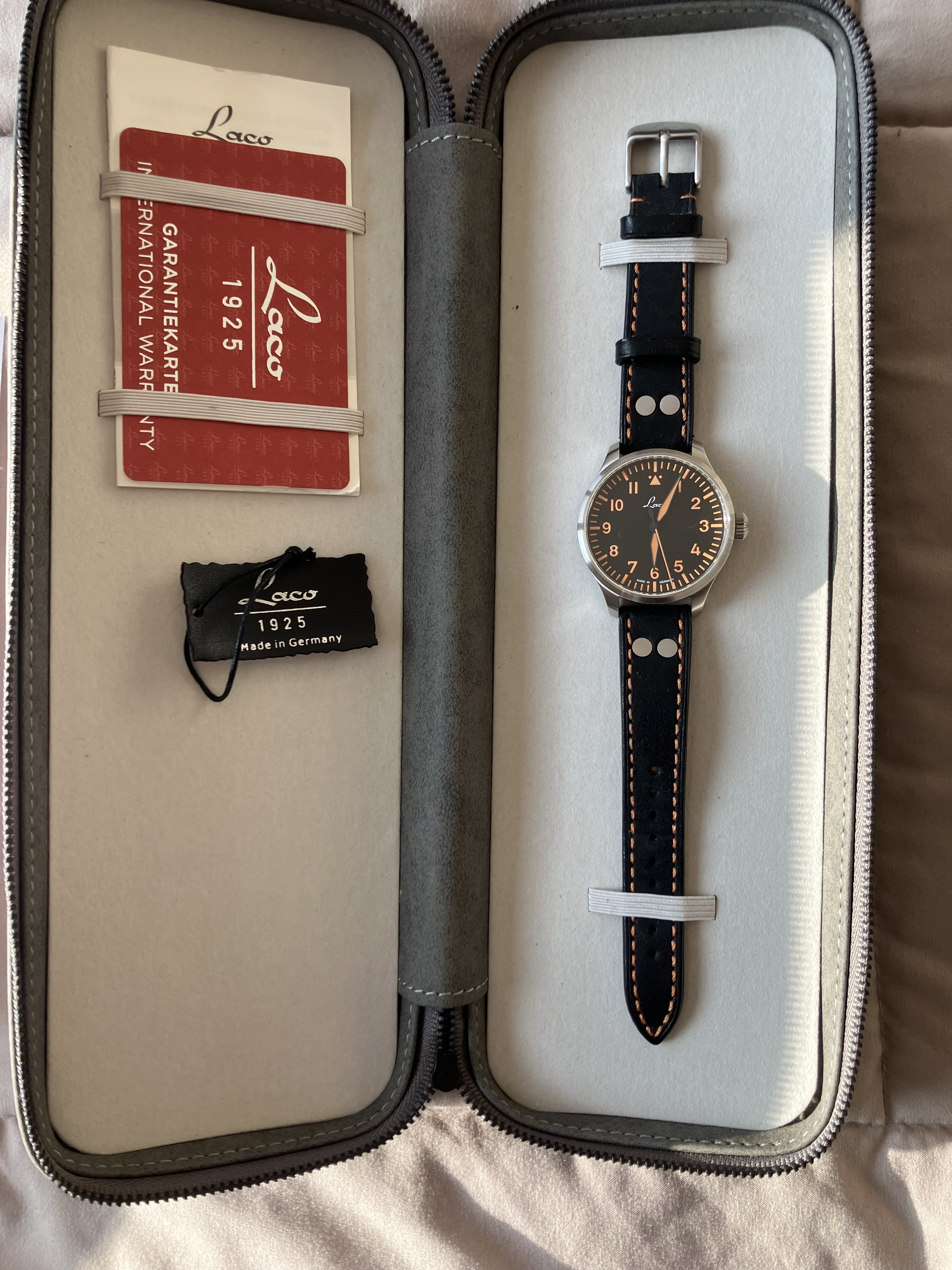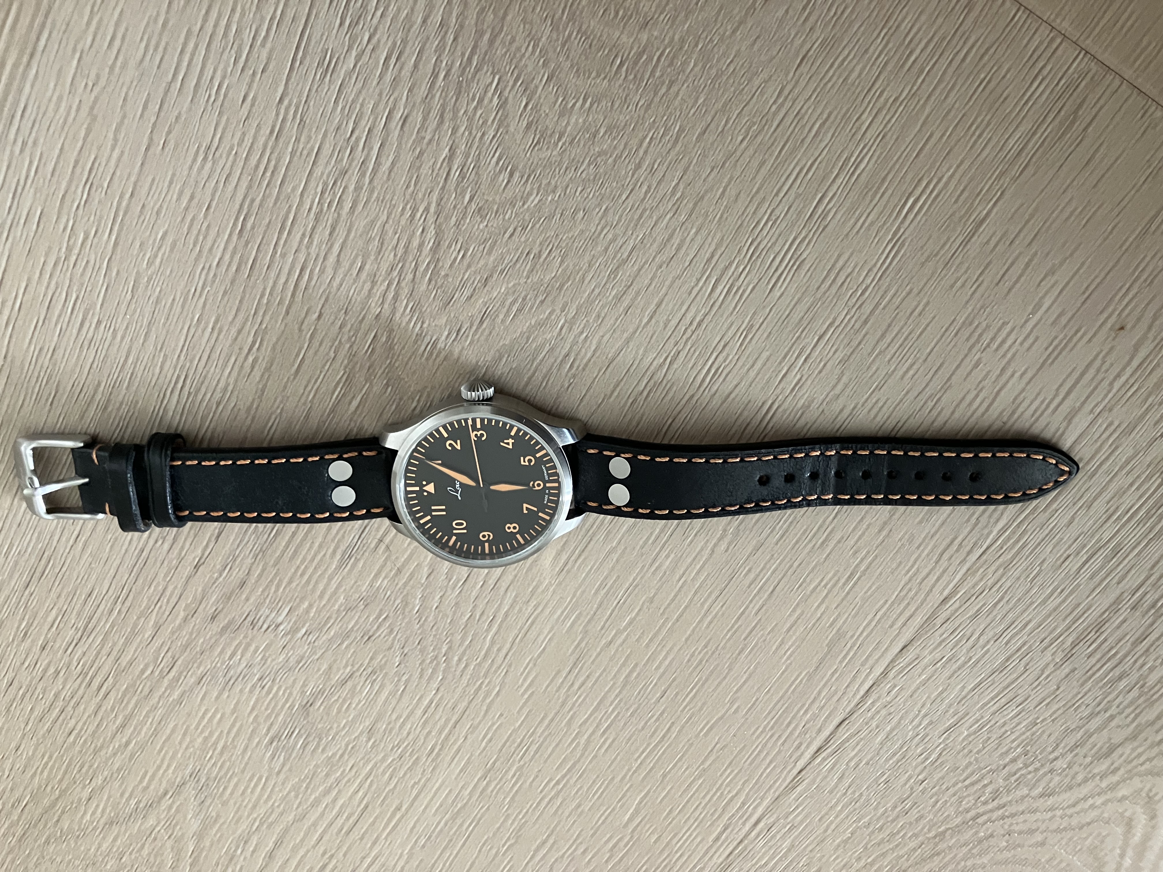 Ik heb dit horloge van een forumlid overgenomen. Ik heb het in nieuwstaat gekregen en zelf heb ik het ook slechts een paar keer gedragen. Het is een horloge in Fliegerstijl en 39 mm is daarin een perfecte grootte vind ik zelf. De grote wijzerplaat maakt dat je wel het echte Flieger horlogegevoel hebt. Het horloge is in uitstekende staat, kan ik wel zeggen. Maar ik ben aan het ontspullen, dus dan moet je keuzes maken. Voor vragen kun je natuurlijk altijd contact opnemen.