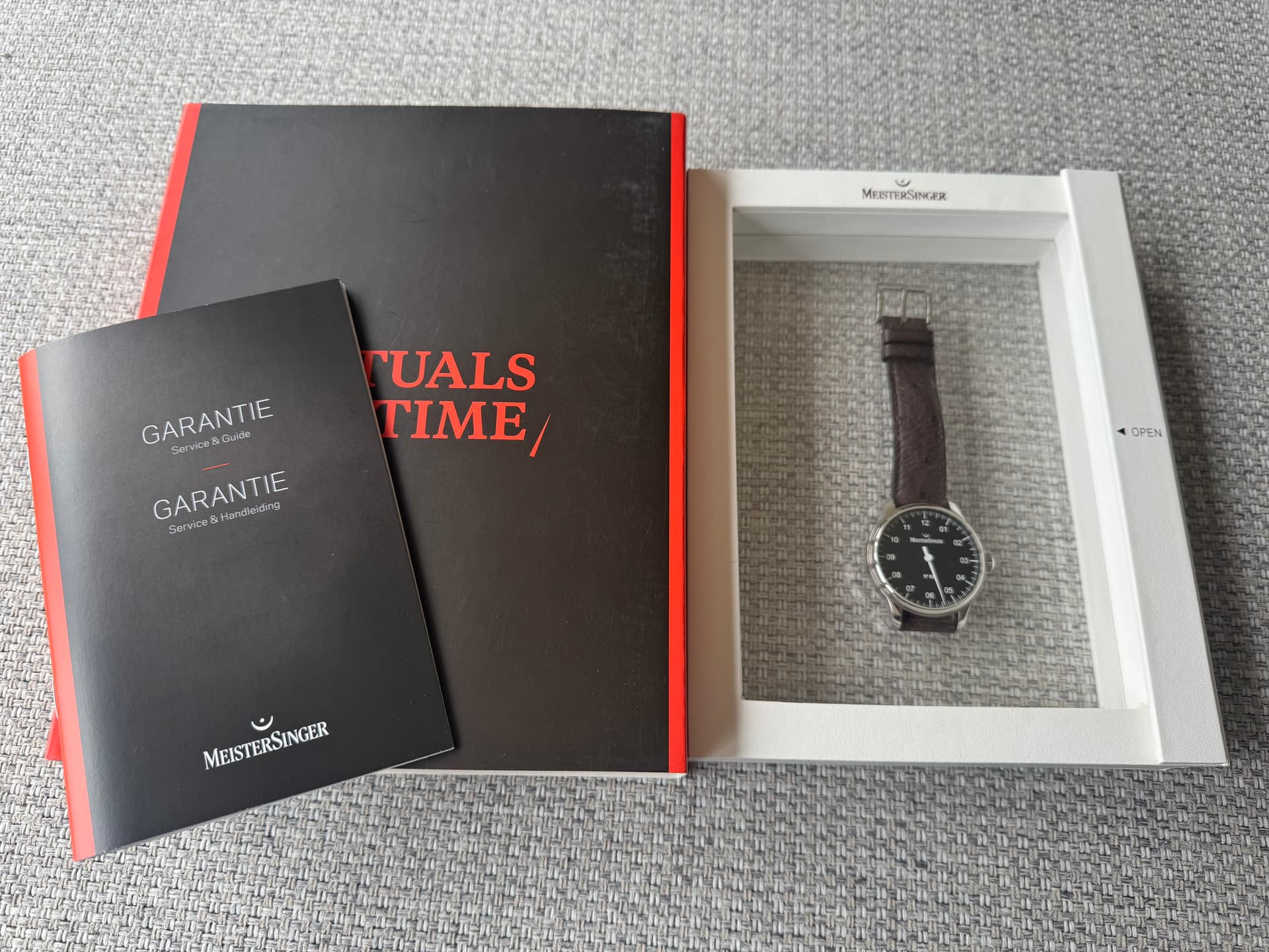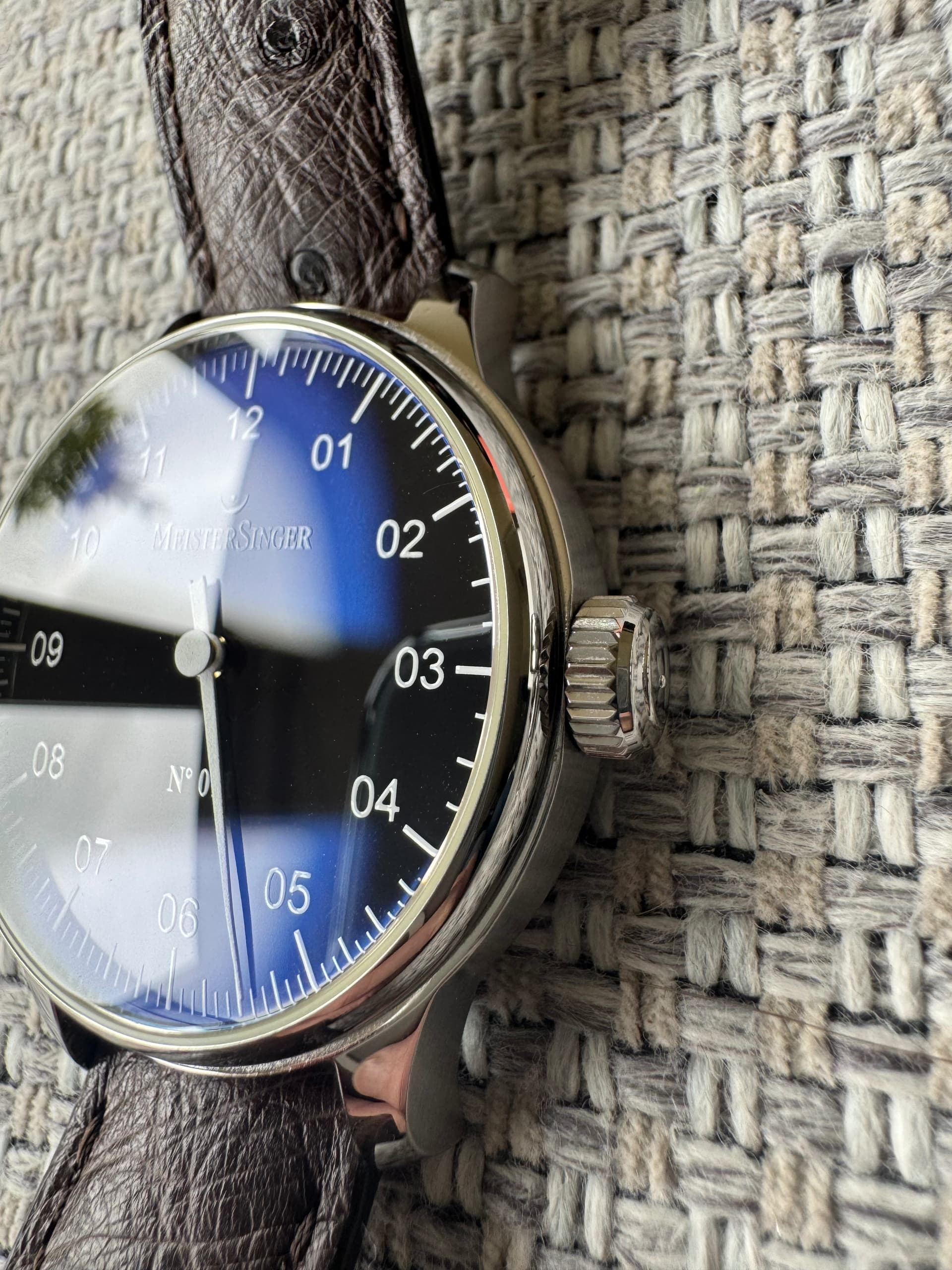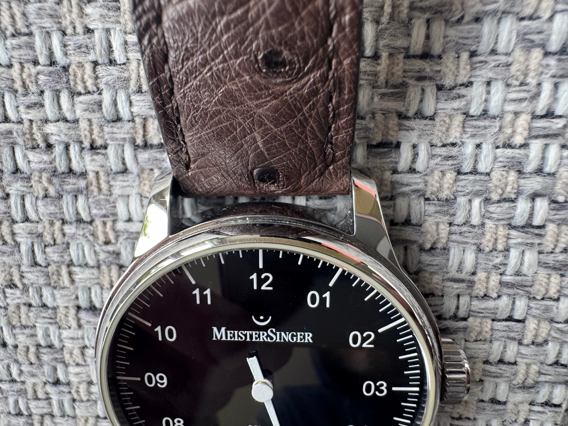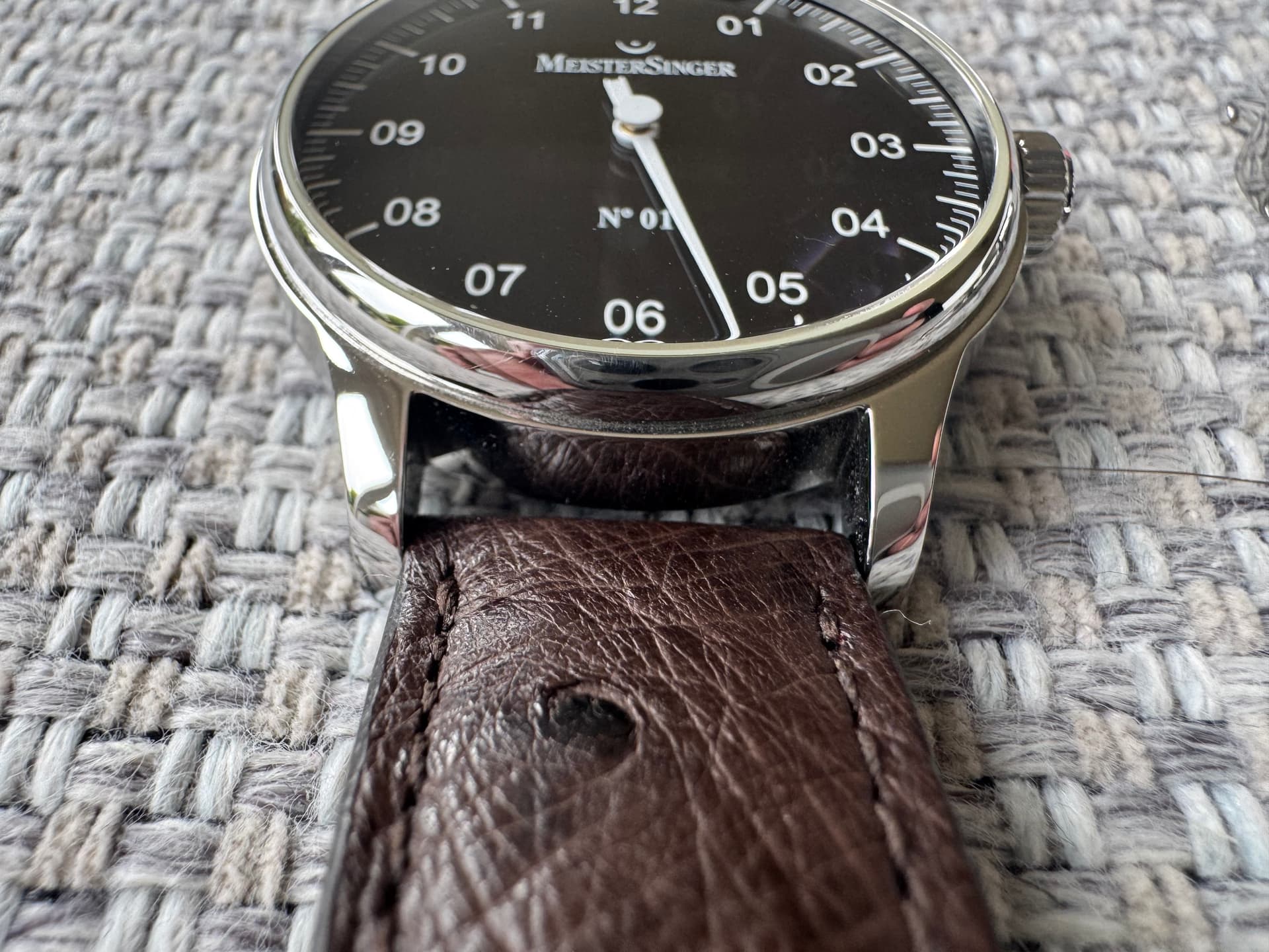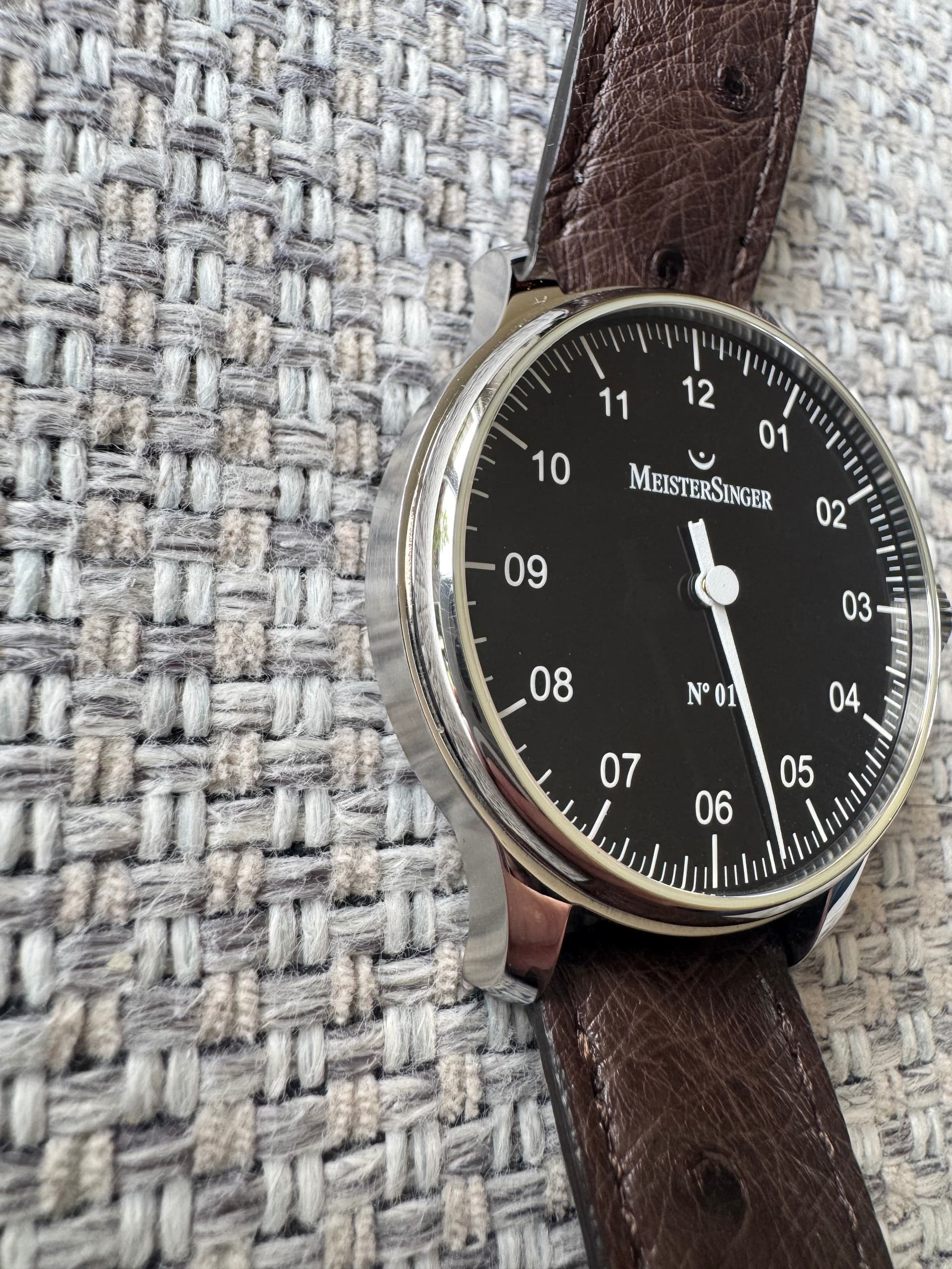 Te koop: Meistersinger No. 1 in 38mm. Deze Meistersinger heb ik vorig jaar via het forum van de eerste eigenaar gekocht. Een Meistersinger stond nog altijd op de wenslijst maar ik merk dat ik het horloge is de praktijk nooit draag. Door zowel de vorige eigenaar als mijzelf is het horloge spaarzaam gedragen. Zodoende ziet het horloge er nog vrijwel als nieuw uit. Zelfs met mijn OCD-blik kan ik vrijwel niks ontdekken. Het horloge komt op een mooie struisvogelband. Het horloge is in 2021 gereviseerd (factuur bijgevoegd)