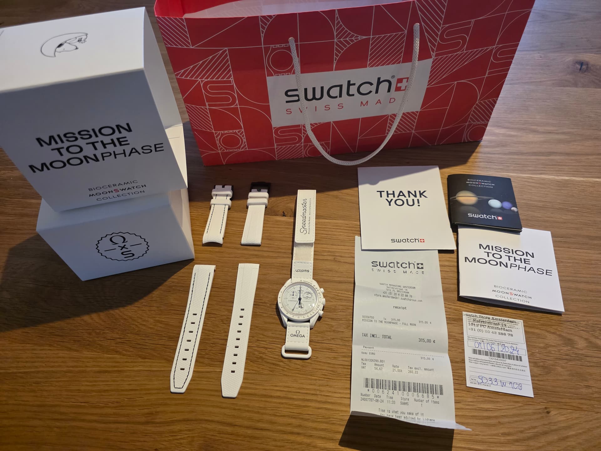 Gekocht bij Swatch Kalverstraat 8/8/24 maar eigenlijk altijd in de kast gebleven. Compleet, zo goed als nieuw en nog garantie.