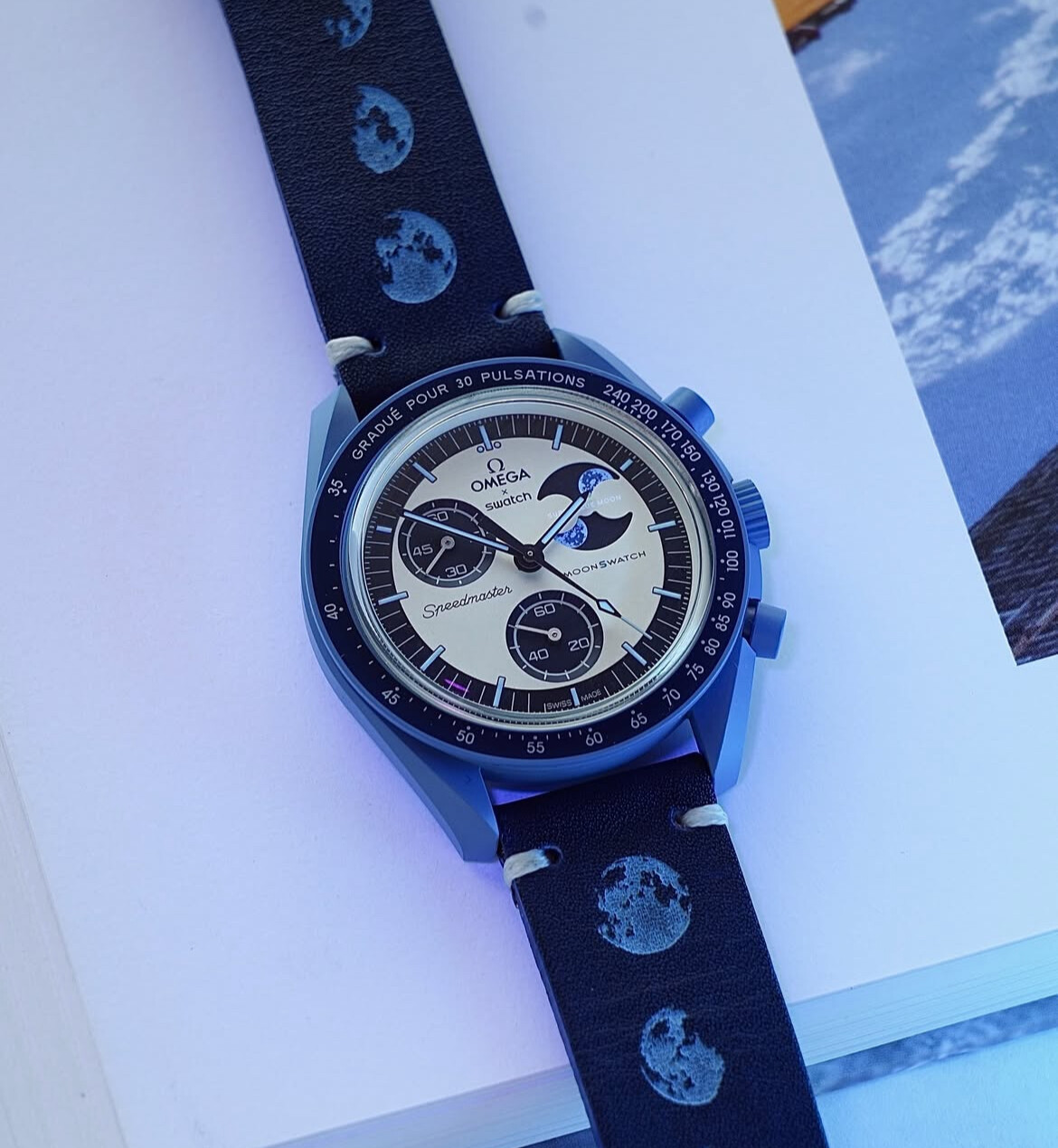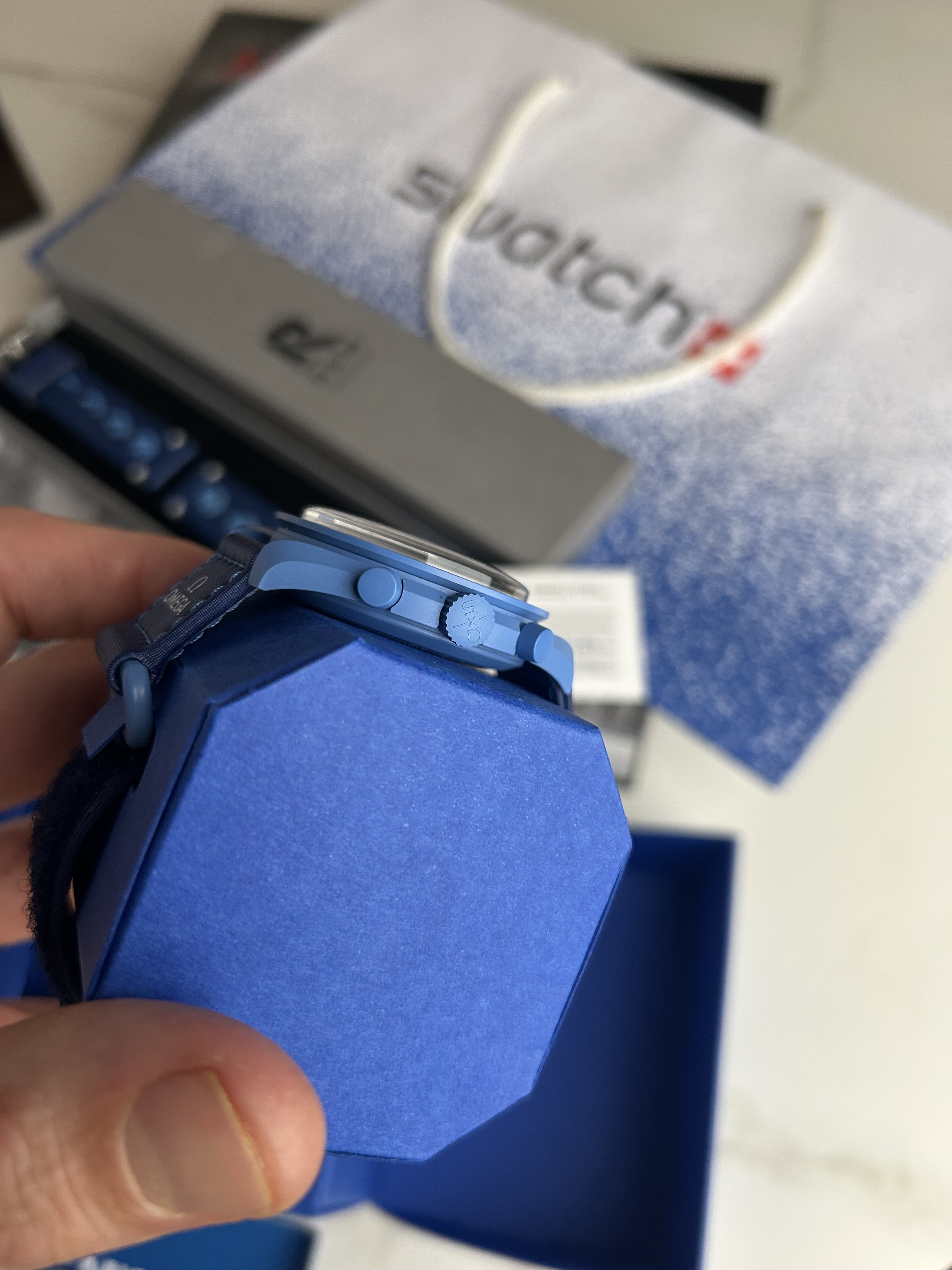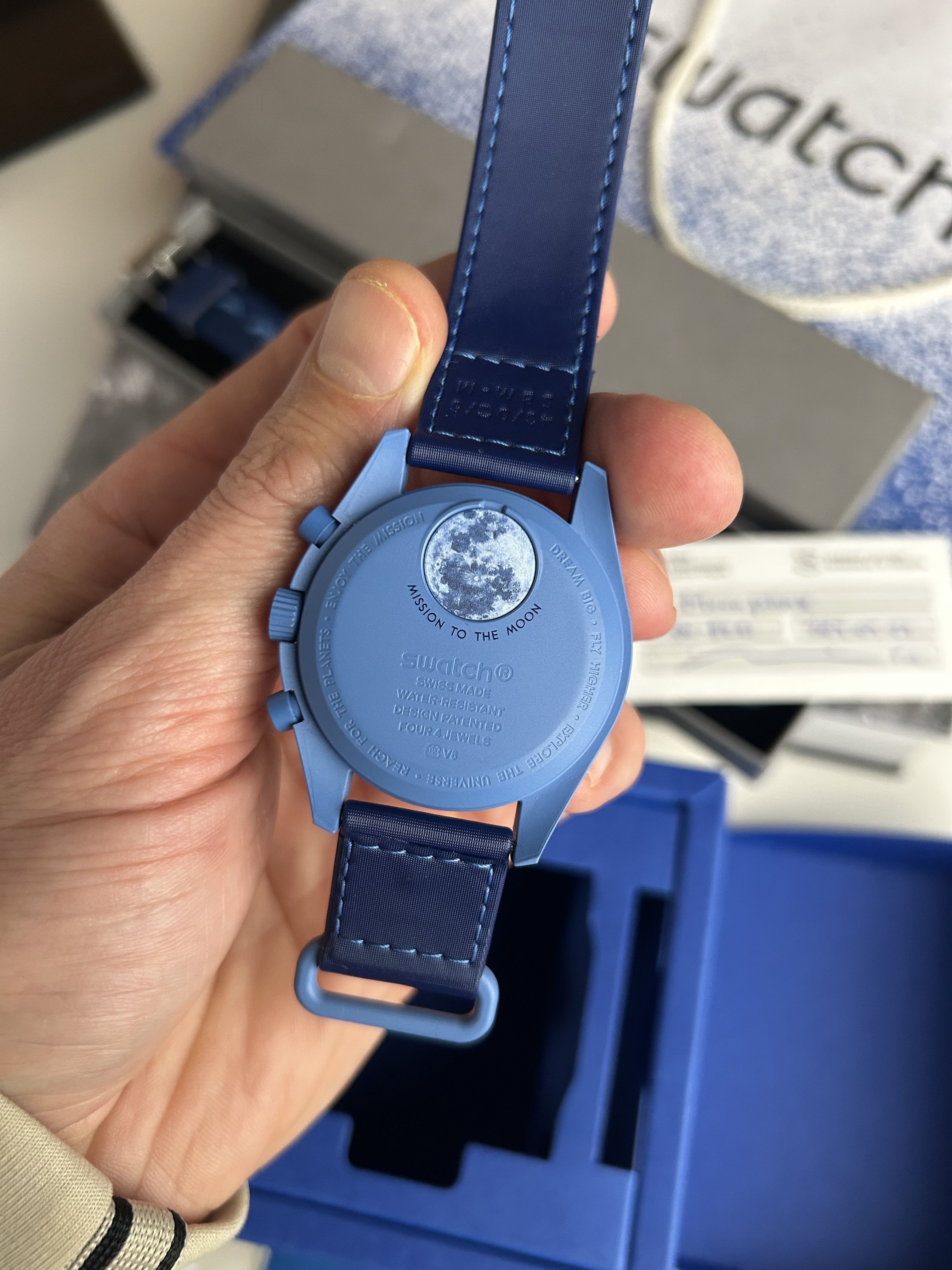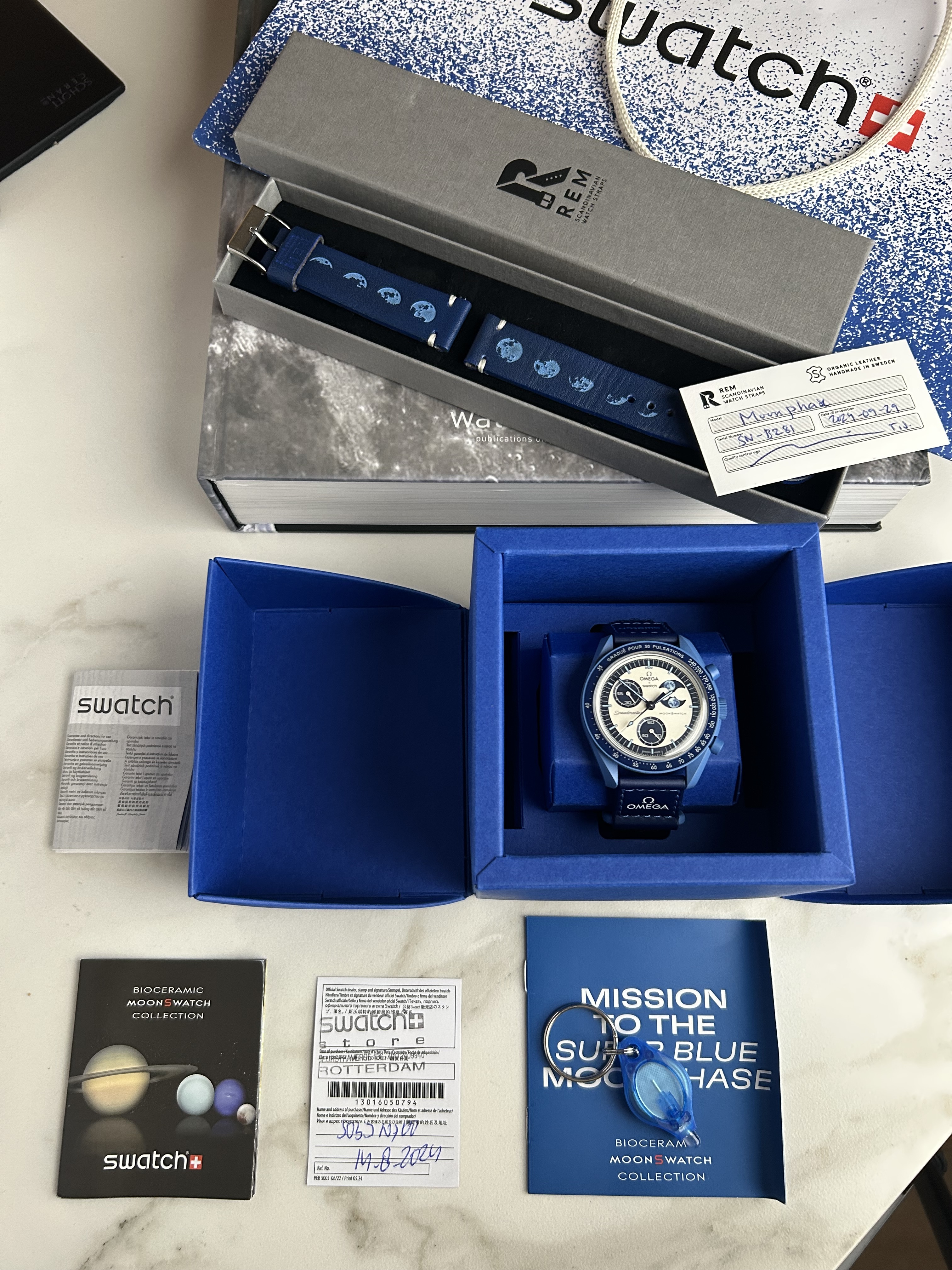Deze MoonSwatch mag de collectie verlaten, is zeer beperkt verkrijgbaar geweest. Ik doe er een bijpassende strap met lume bij van REM. Het horloge is gekocht voor de verzameling en enkel gedragen voor wat foto’s. De originele band is geheel ongedragen. Het grootste nadeel is eigenlijk dat de omdoos wat vlekjes heeft.