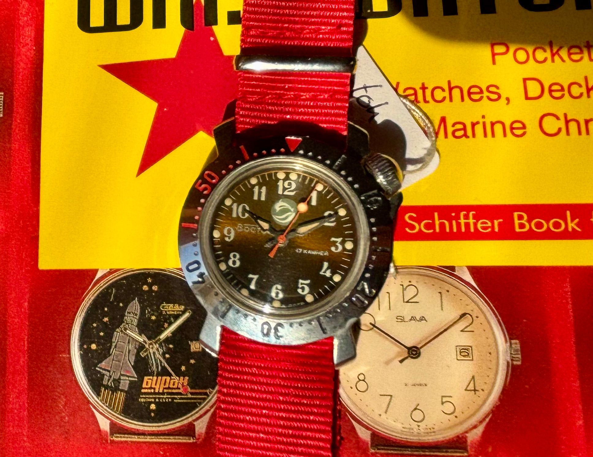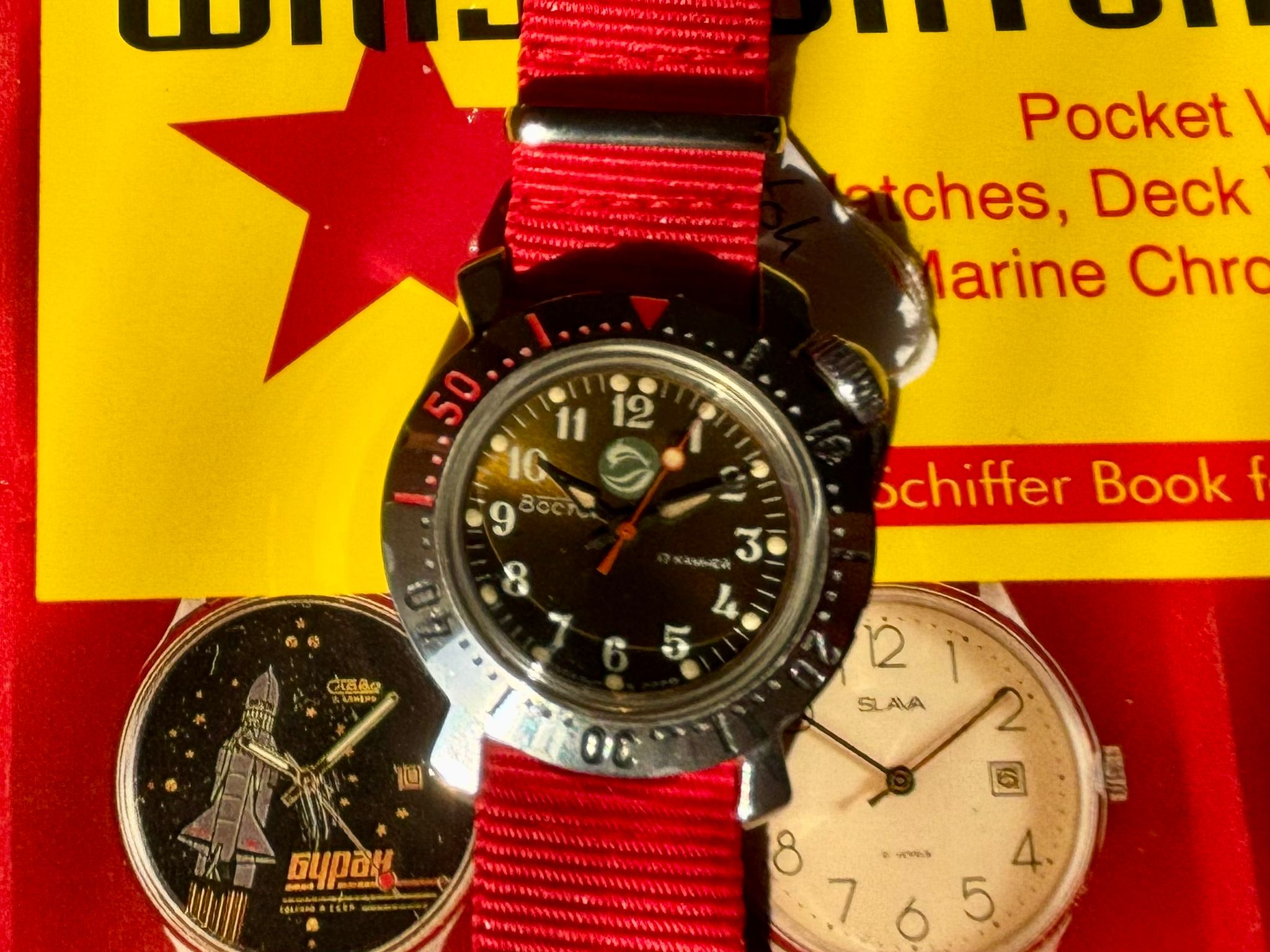Dus voor minder dan viert tientjes een NOS horloge met een in-house uurwerk, een kast met “supercompressor” constructie ofwel de weerstand tegen druk stijgt naarmate je dieper duikt, domed acrylic, de Vostok “wiebelkroon” die ervoor zorgt dat een tik op de ingedraaide kroon nooit het uurwerk wat kan doen en dit alles uit een wereldmacht die teloor ging!