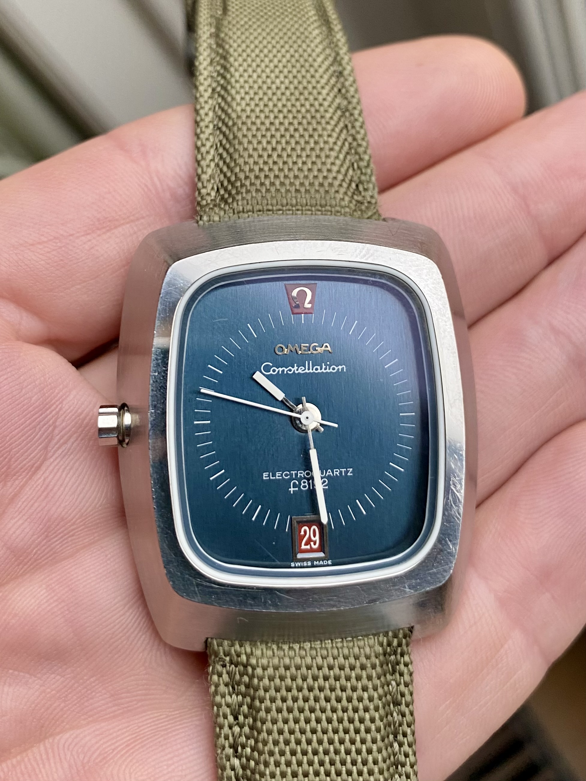 Het betreft een Constellation met het beroemde Beta21 uurwerk. Deze is ontwikkeld door een aantal grote Zwitserse merken (hoofdsponsors waren Patek, Rolex en Omega, maar er waren er nog een paar), nadat de Japanners de toen opeens zwaar verouderde mechanische natuurlijk volledig overdonderden met hun (toen) State of the art en superaccurate kwartsuurwerken. Mooi verhaal, Google zelf de rest even. Er staat hier op HF vast ook wel het e.e.a.