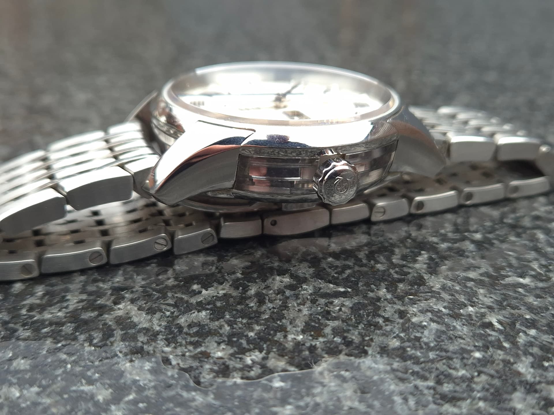 Conditie (krassen, werking etc): mooie gedragen staat. Met een loep zie je een bandwissel dommigheidje en er zitten draagsporen op. Niks extreems (ik zie het zonder bril niet) maar het zit er wel.