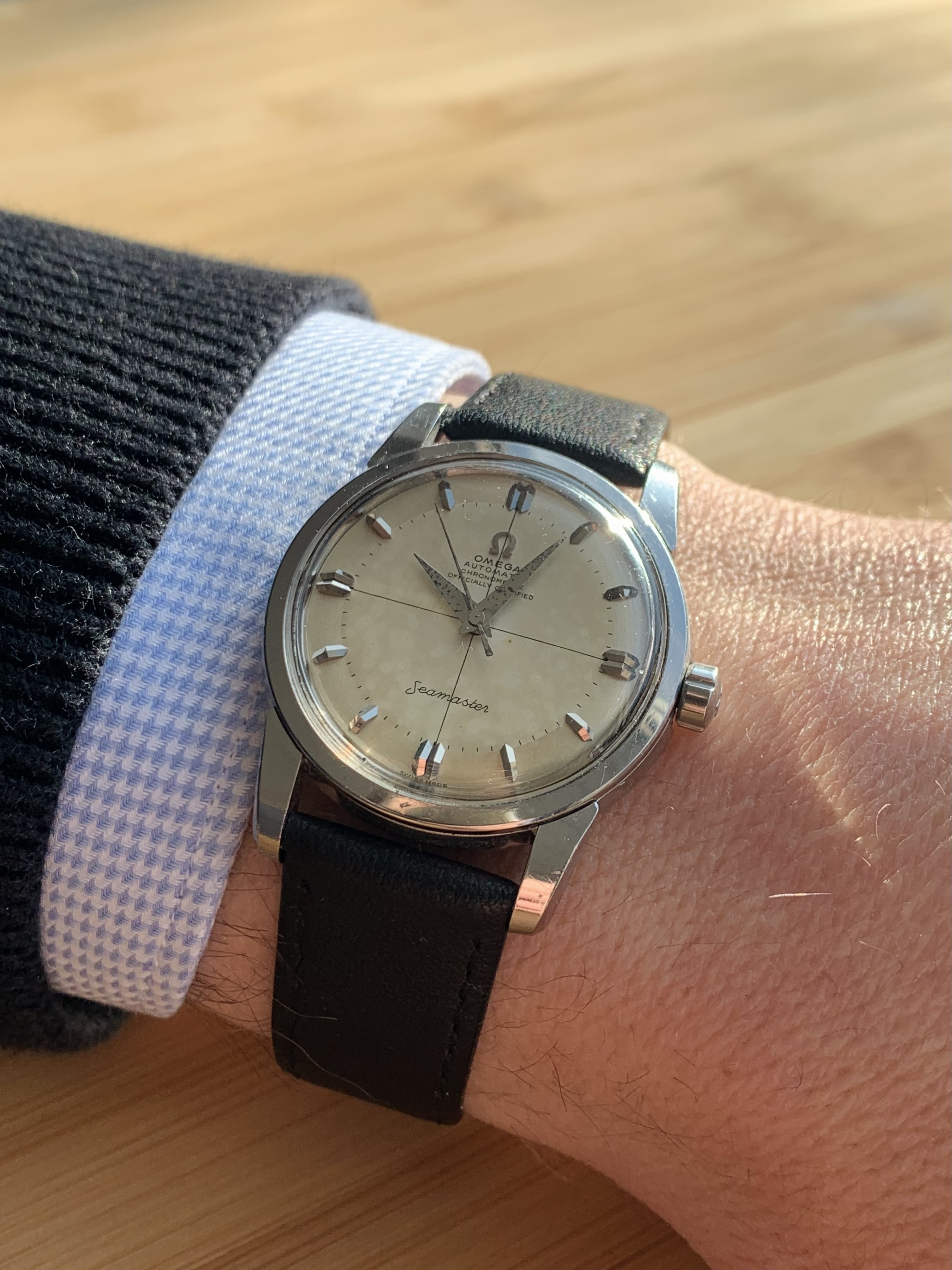 Verder: de vorige eigenaar heeft in 2024 een servicebeurt laten uitvoeren, helaas geen factuur van beschikbaar; voor het uurwerk zie onderste foto; voor deze Seamaster heb ik destijds 1.000 euro betaald