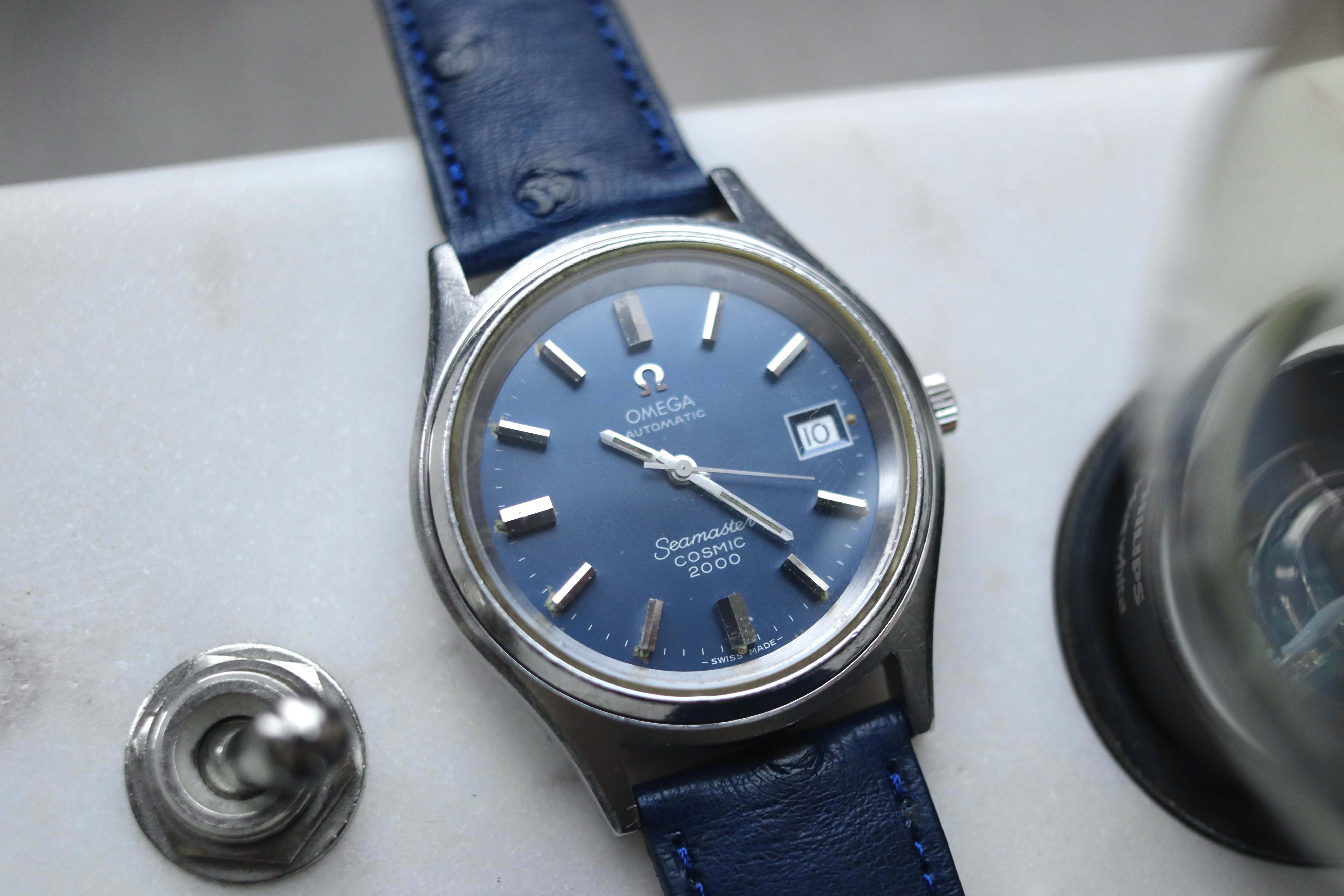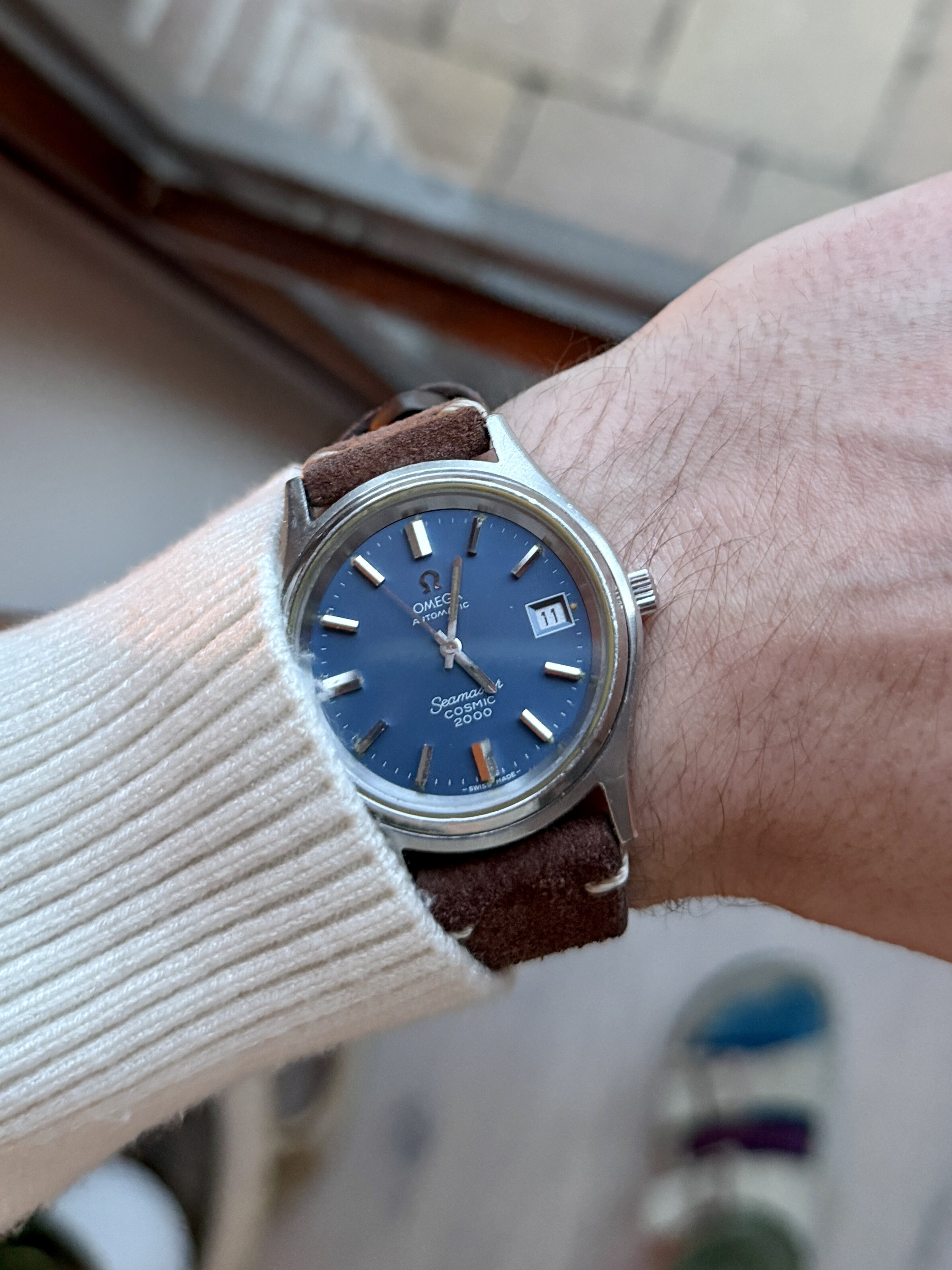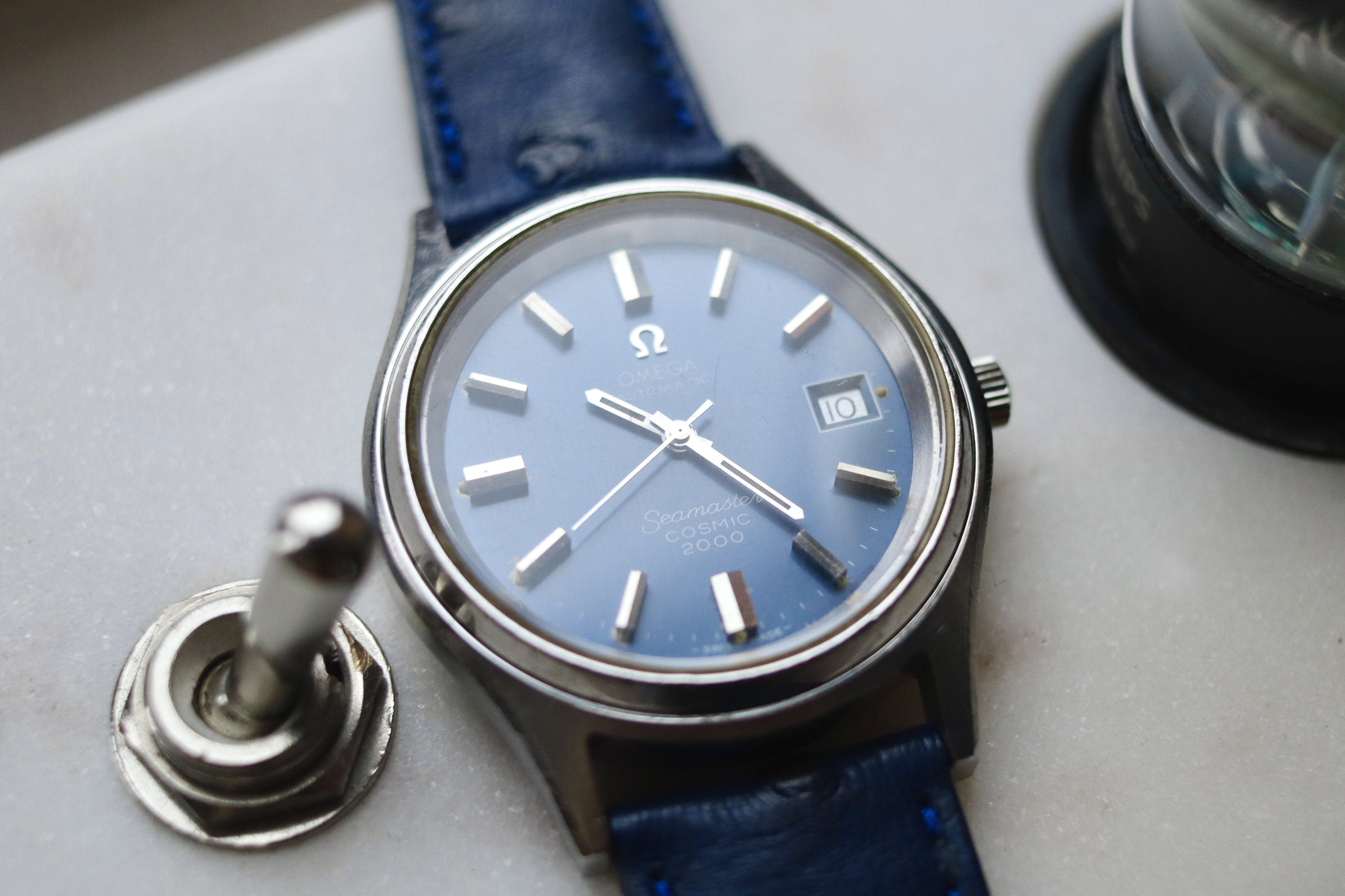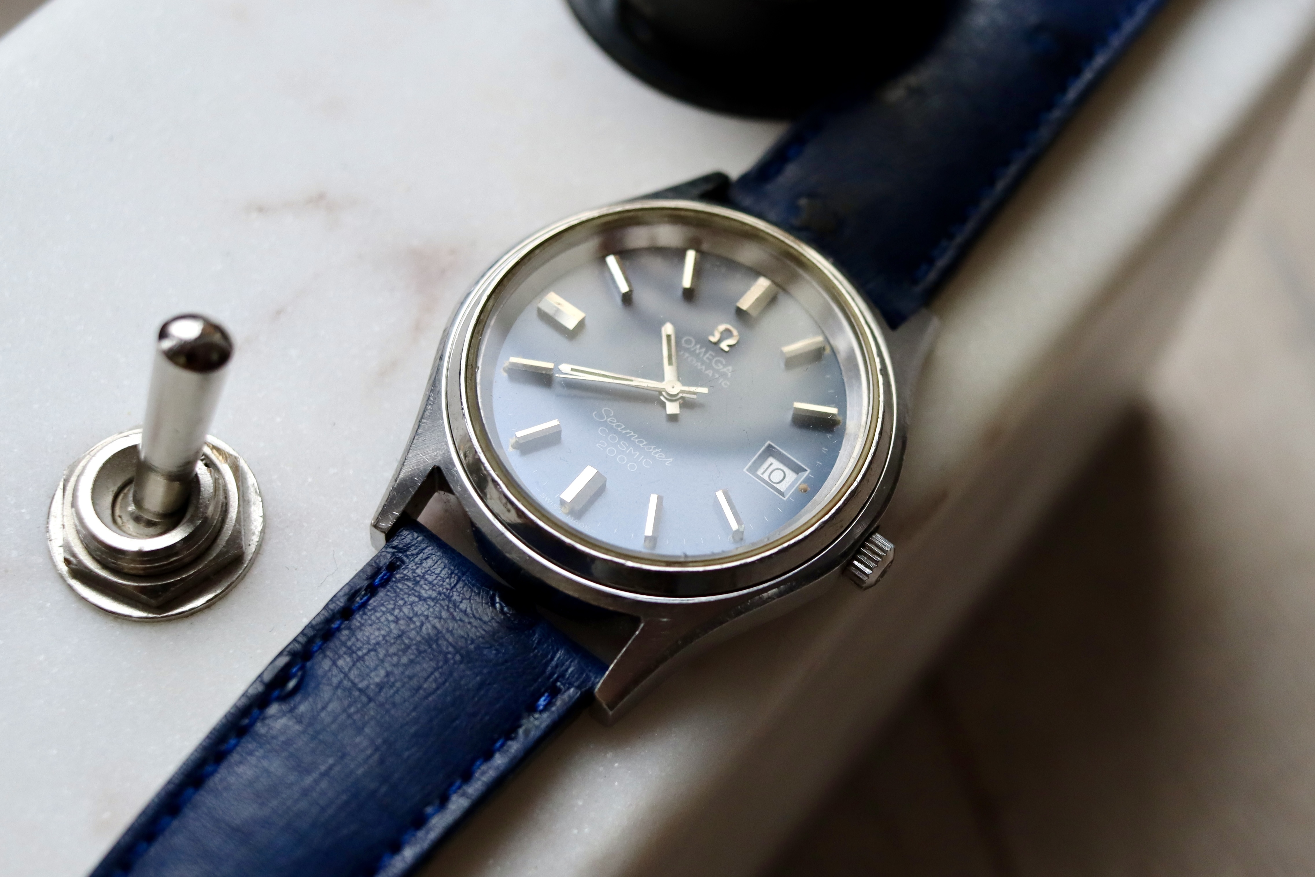 Na wat getwijfel zet ik ook mijn tweede Seamaster Cosmic in de markt. Deze nette jumbo zoekt een nieuwe pols, bij voorkeur net wat groter dan de mijne. Deze vintage Seamaster van 38mm draagt naar mijn ervaring eerder als een 39mm. Verder is de kast netjes, en de mooie blauwe plaat vrij van patina.