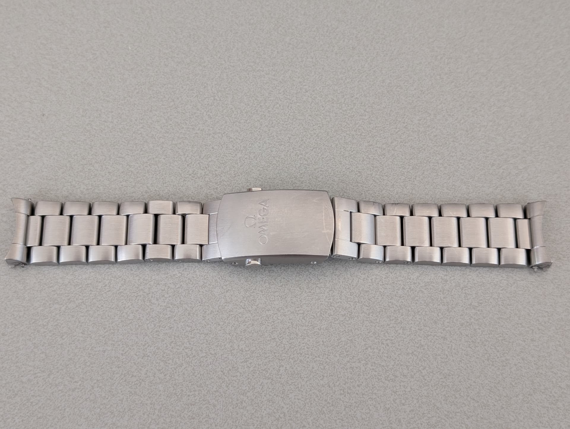Full set. Garantiebewijs, gebruikershandleiding, doos + omdoos, extra schakels, extra springbars, bij onderhoud vervangen onderdelen, Monstraps FKM band met vouwsluiting, Omega travel pouch, banden tool.