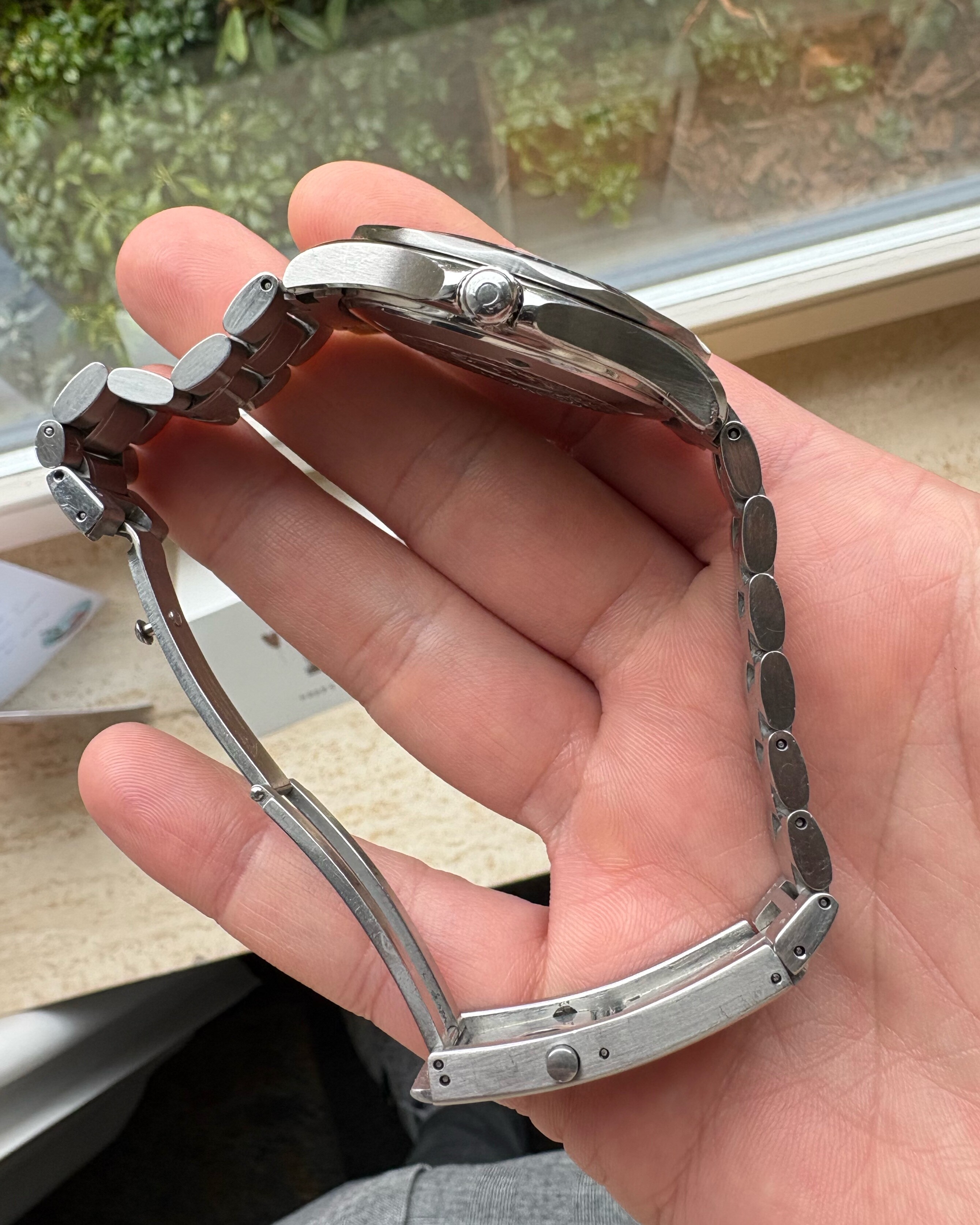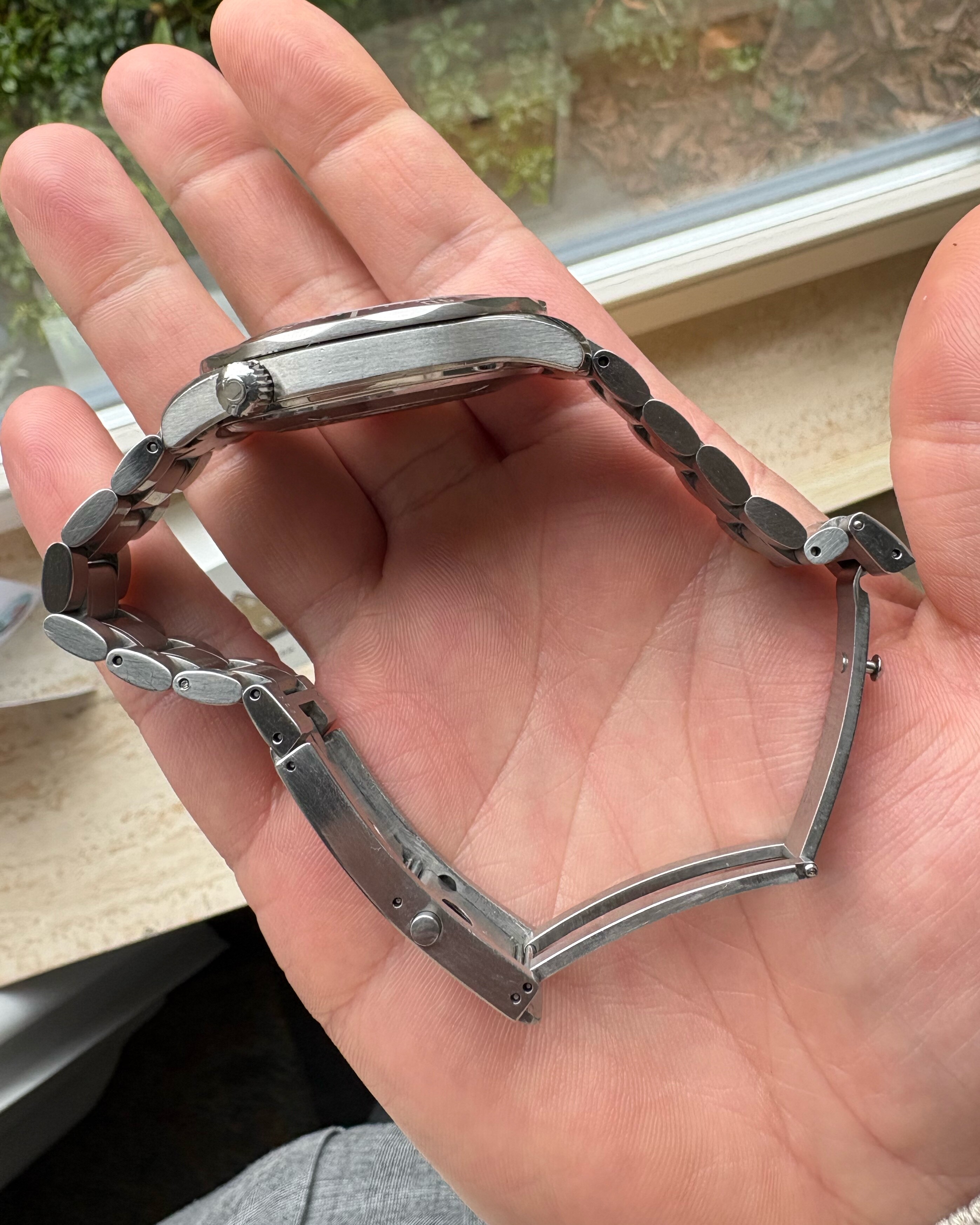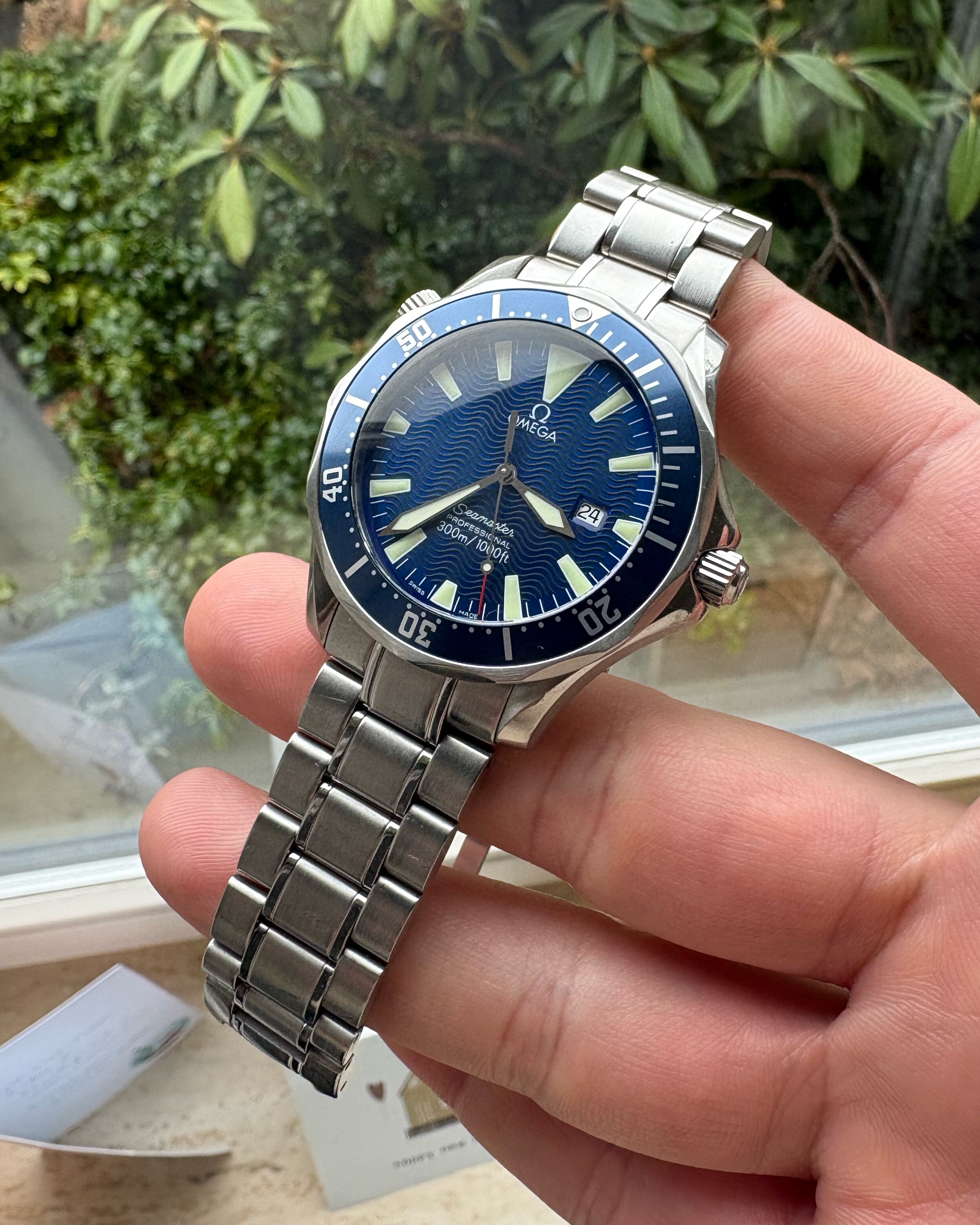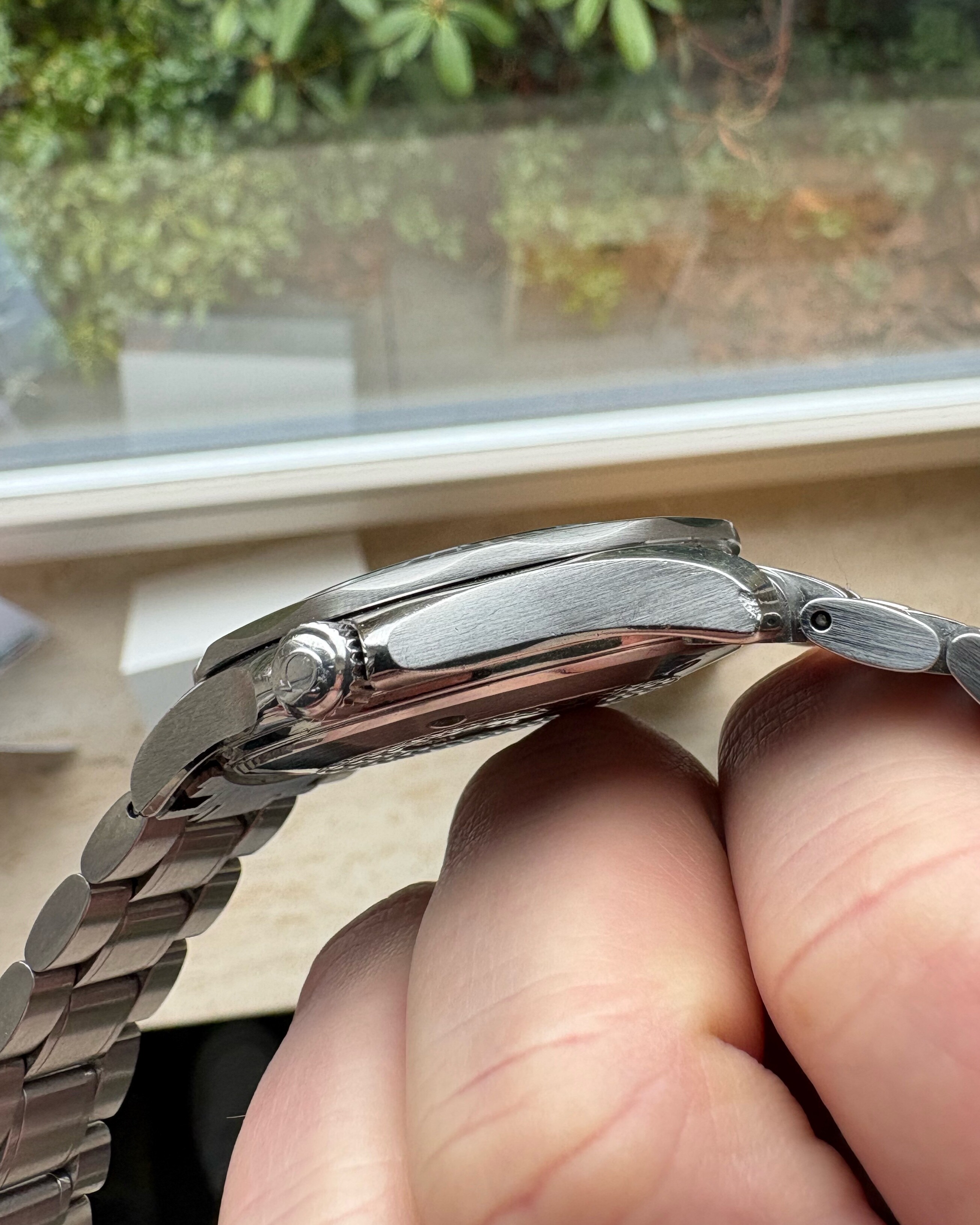 Bij de wisseling van de bezel(bij omega) is het horloge nagekeken, voorzien van nieuwe batterij en waterdicht getest.