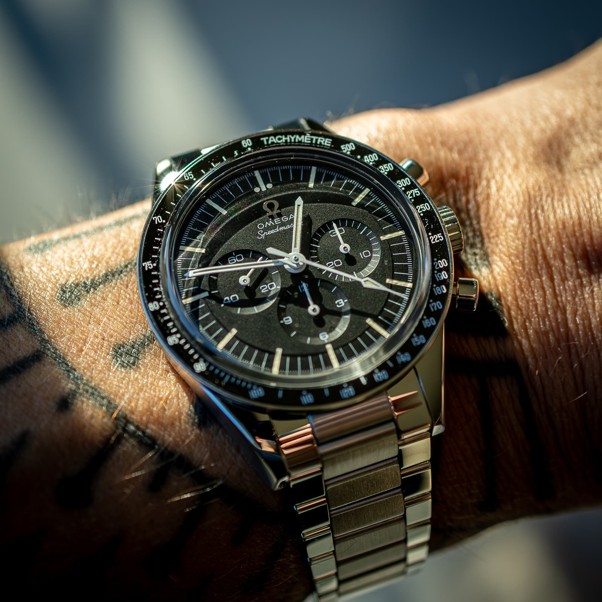Zoals jullie misschien wel weten is dit model een eerbetoon aan de 105.003 Speedmaster die astronaut Ed White droeg tijdens zijn ruimtewandeling in 1965. De stalen kast heeft een afmeting van 39.7mm (klassieke proporties) en de details zijn die van een vintage Speedmaster; het opgelegde logo, de step dial, de vintage case met straight lugs en het ontbreken van crownguards. Ook de flatlink band is opnieuw uitgebracht en super comfortabel.