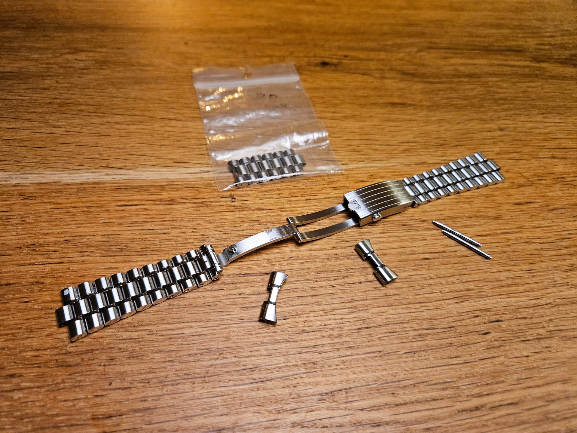 In net gedragen staat verkerende Omega Speedmaster band. Alle schakels aanwezig evenals de Omega pushpins.