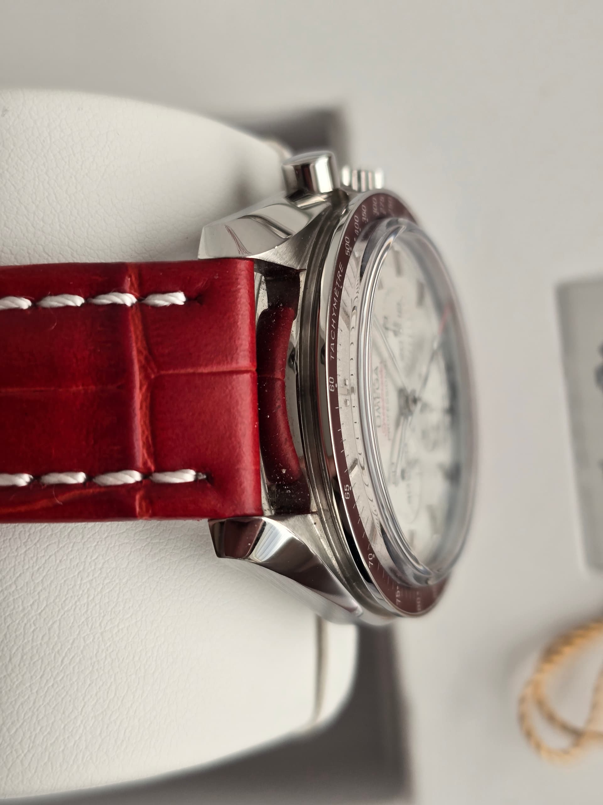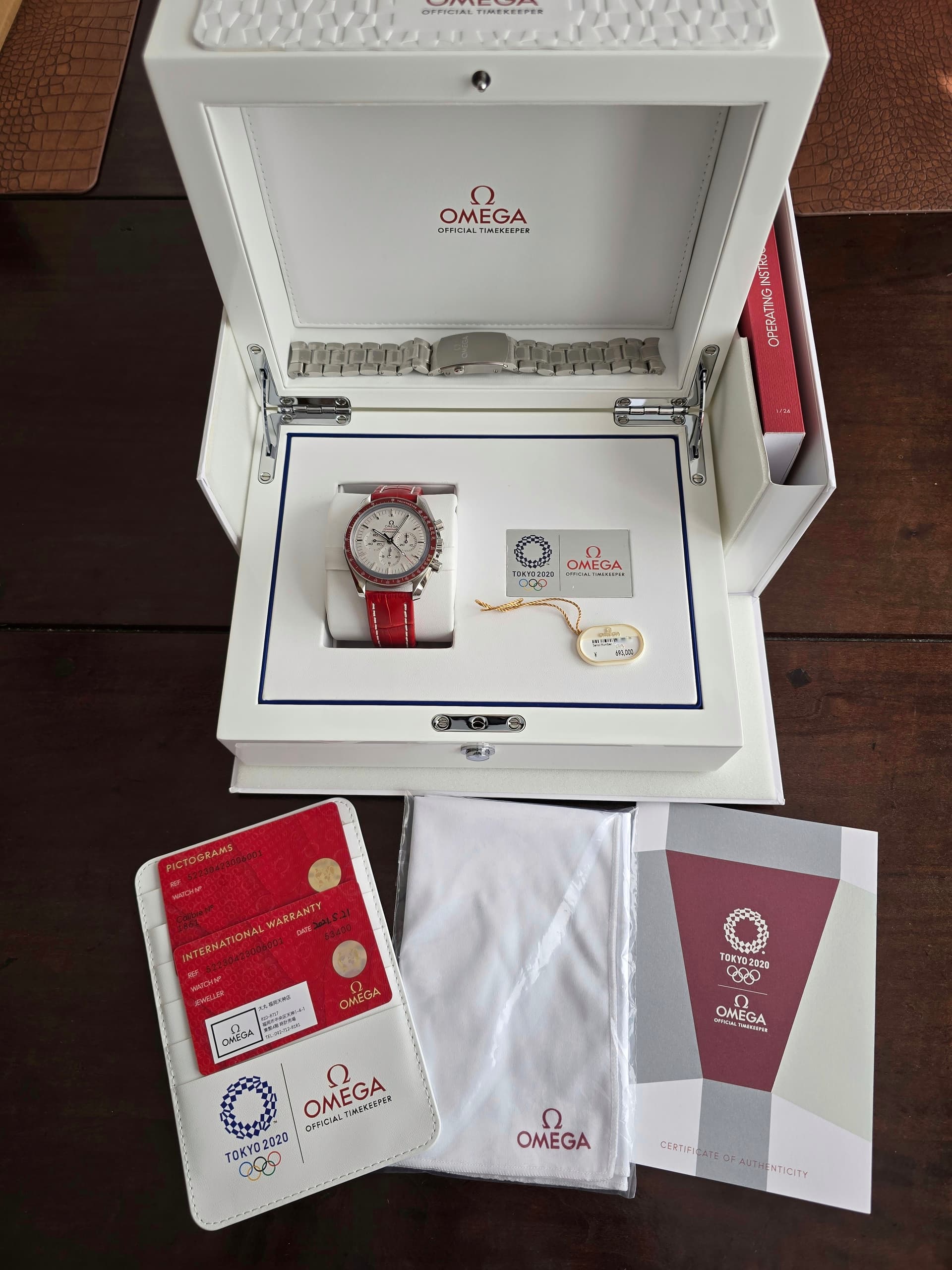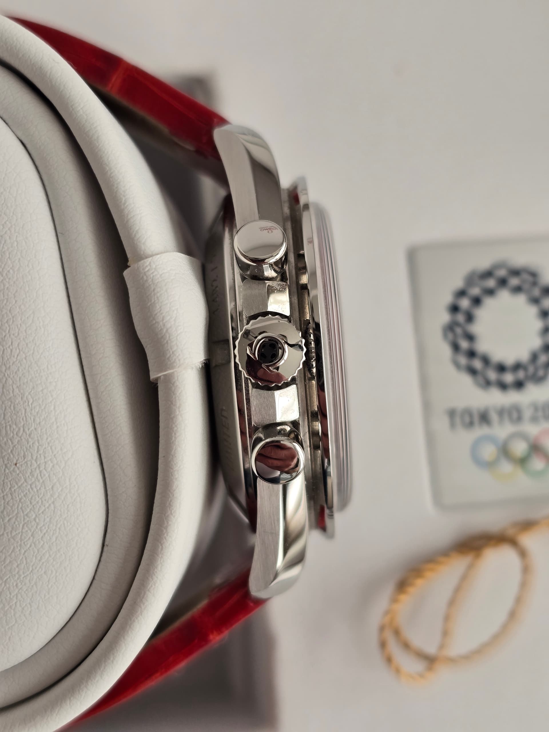 Ter verkoop bied ik mijn Omega Speedmaster Tokyo Olympics 2020 Rising Sun aan, een zeldzaam horloge dat speciaal werd uitgebracht ter ere van de Olympische Spelen in Tokyo. Dit model is onderdeel van een gelimiteerde serie die uitsluitend in Japan is verschenen en staat bekend om zijn bijzondere uitstraling en verzamelwaarde.