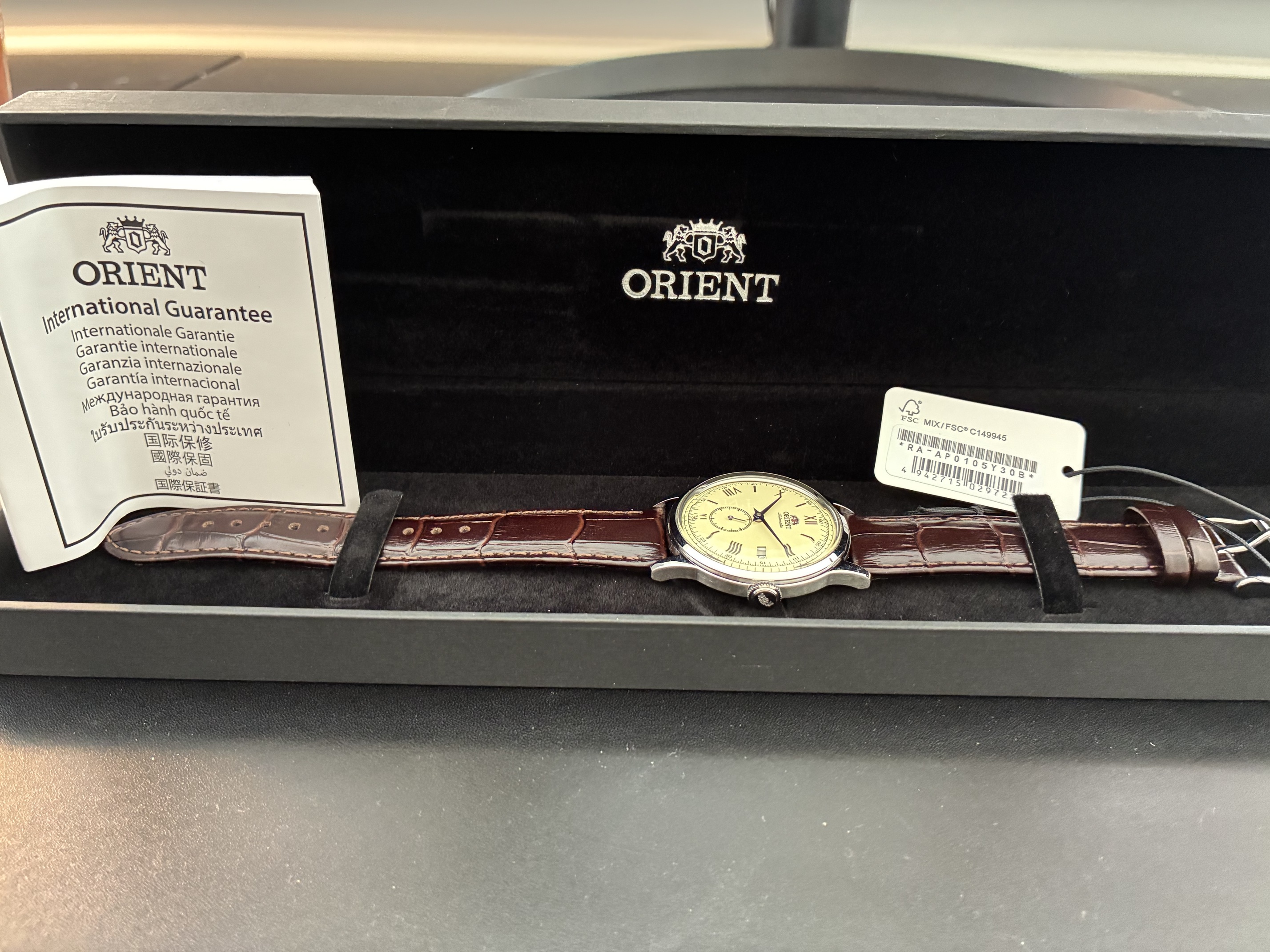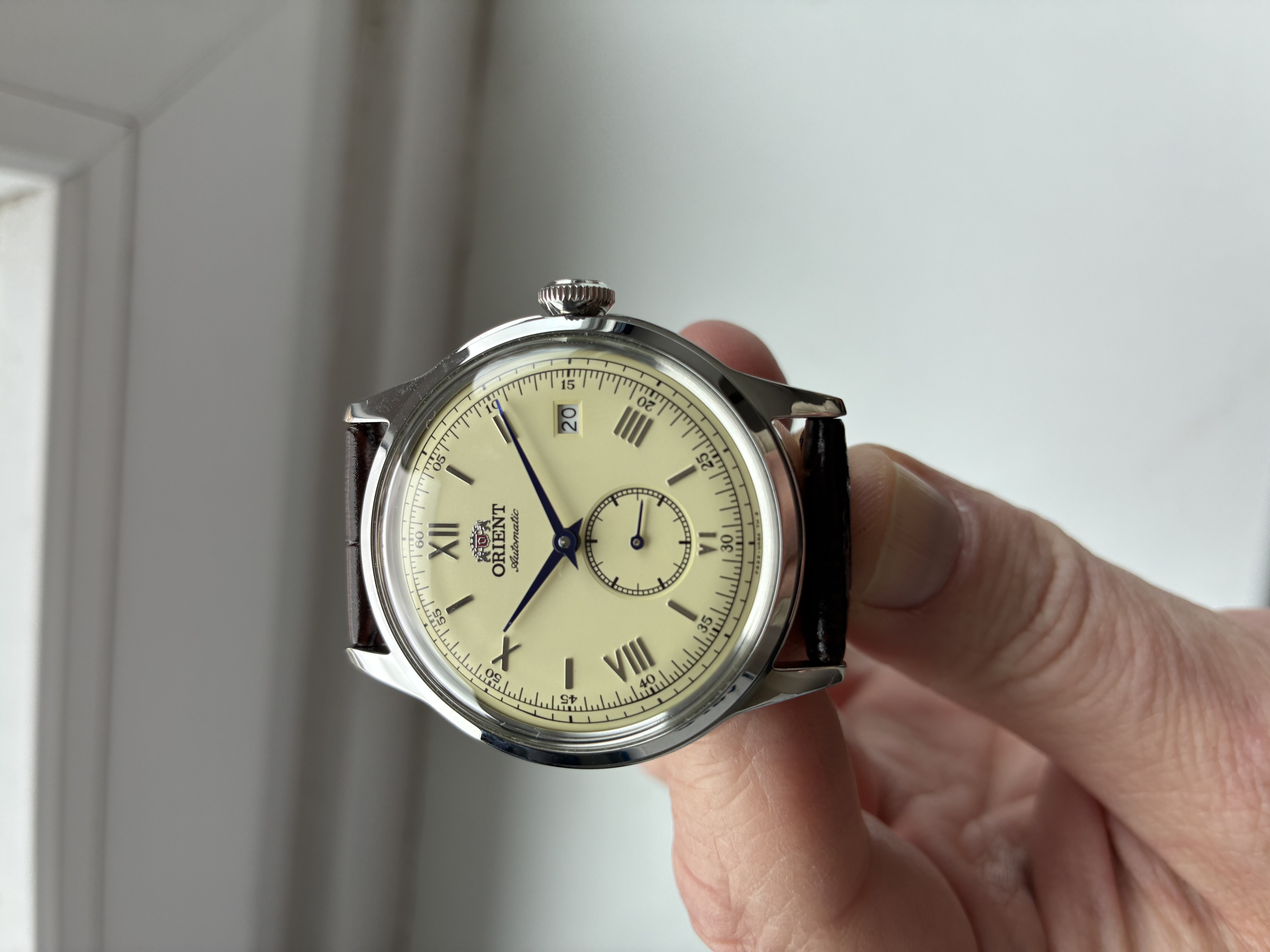 Merk en model: Orient Bambino 38mm small seconds. Referentie RA-AP0105Y30B