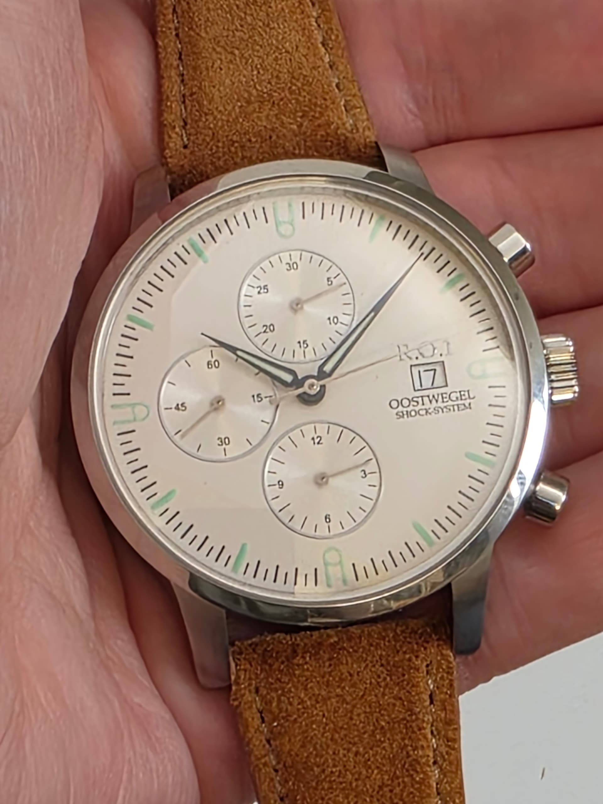 Het horloge bevindt zich in topstaat, en is zoals je ziet een chronograaf. Het mag weg omdat ik ook een tweede horloge in mijn bezit heb van deze Limburger. De nieuwprijs ligt bij 5650 euro.