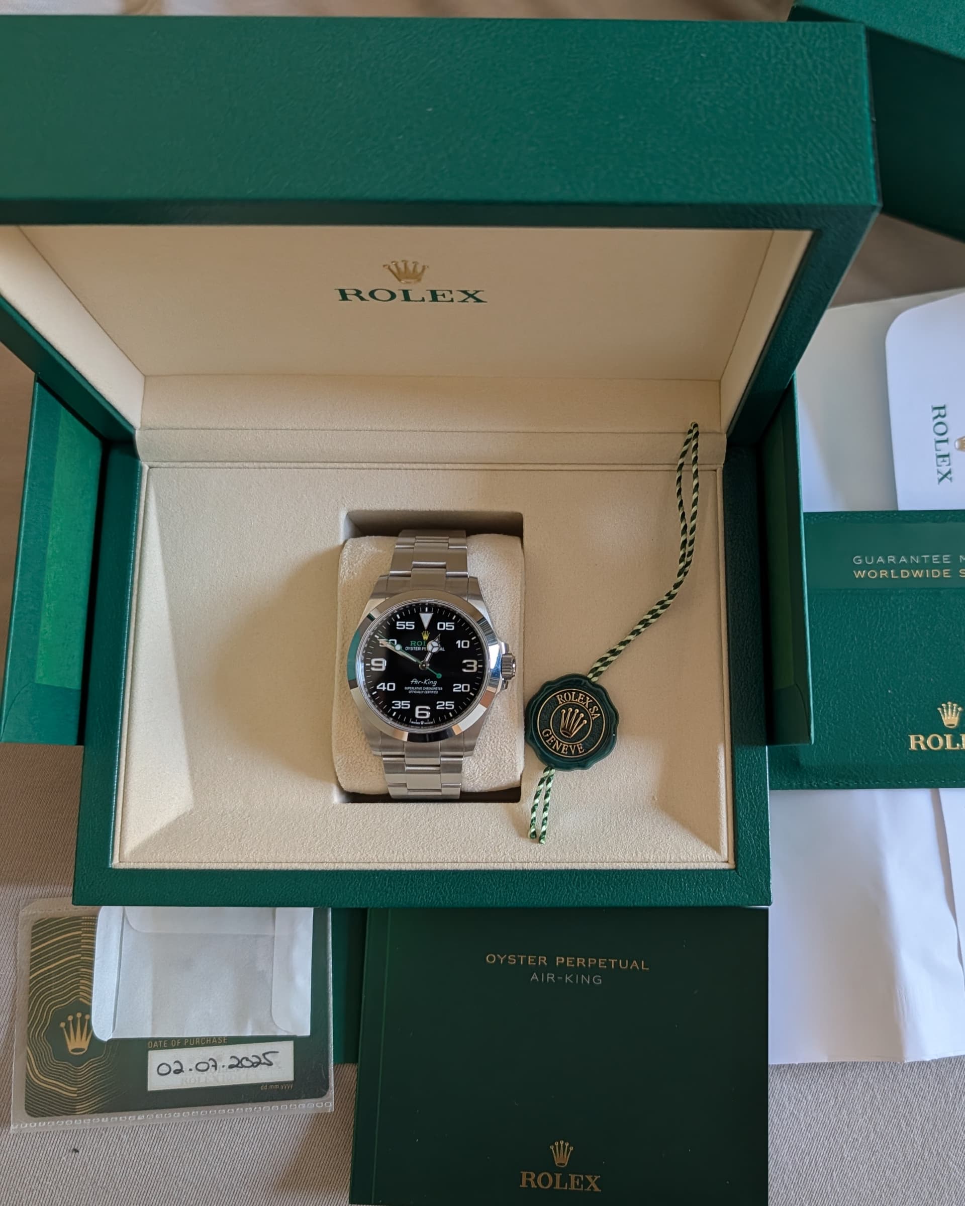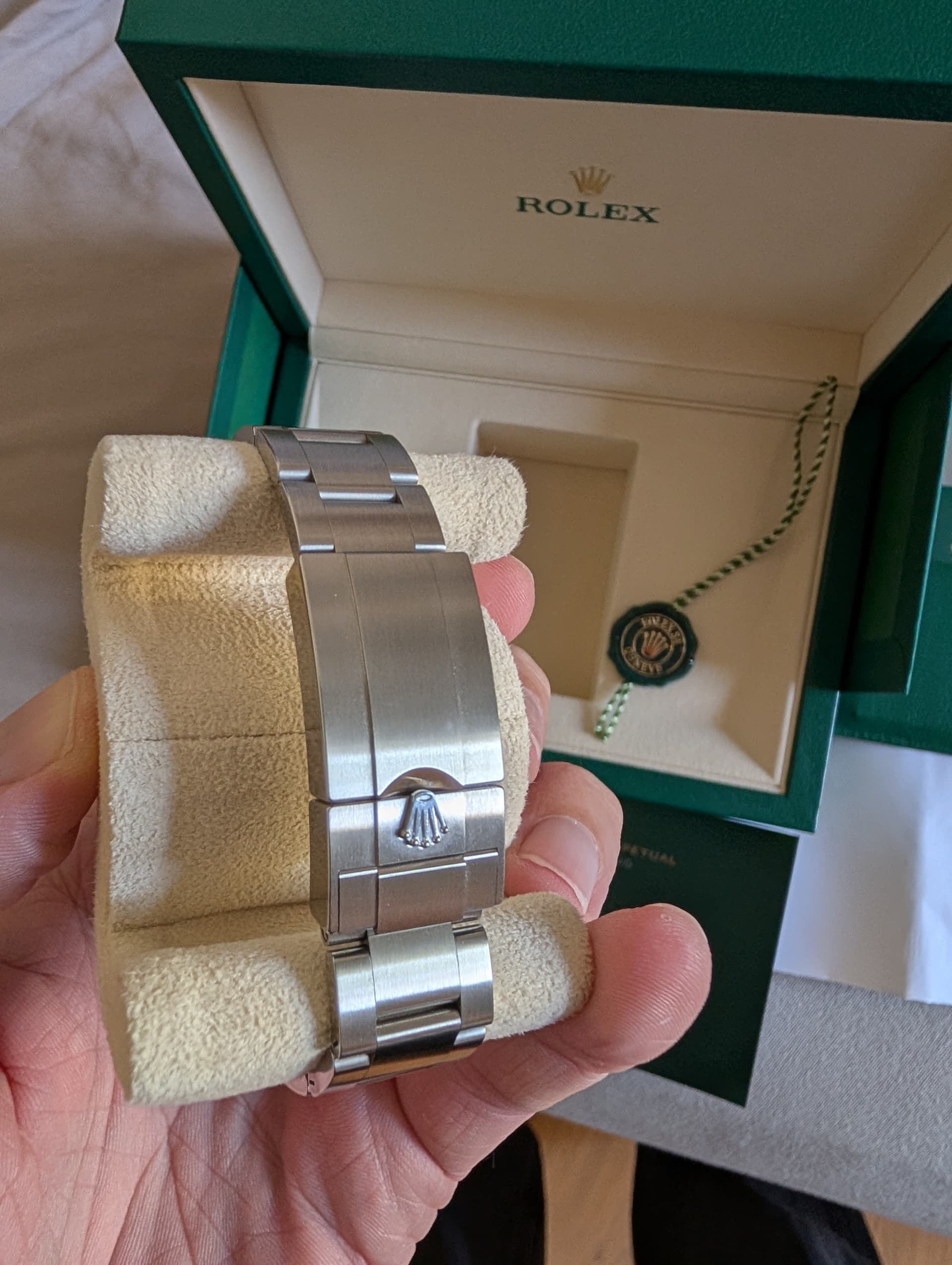 Ik ben de eerste eigenaar en kocht hem bij de Rolex Boutique, aantoonbaar op factuur.