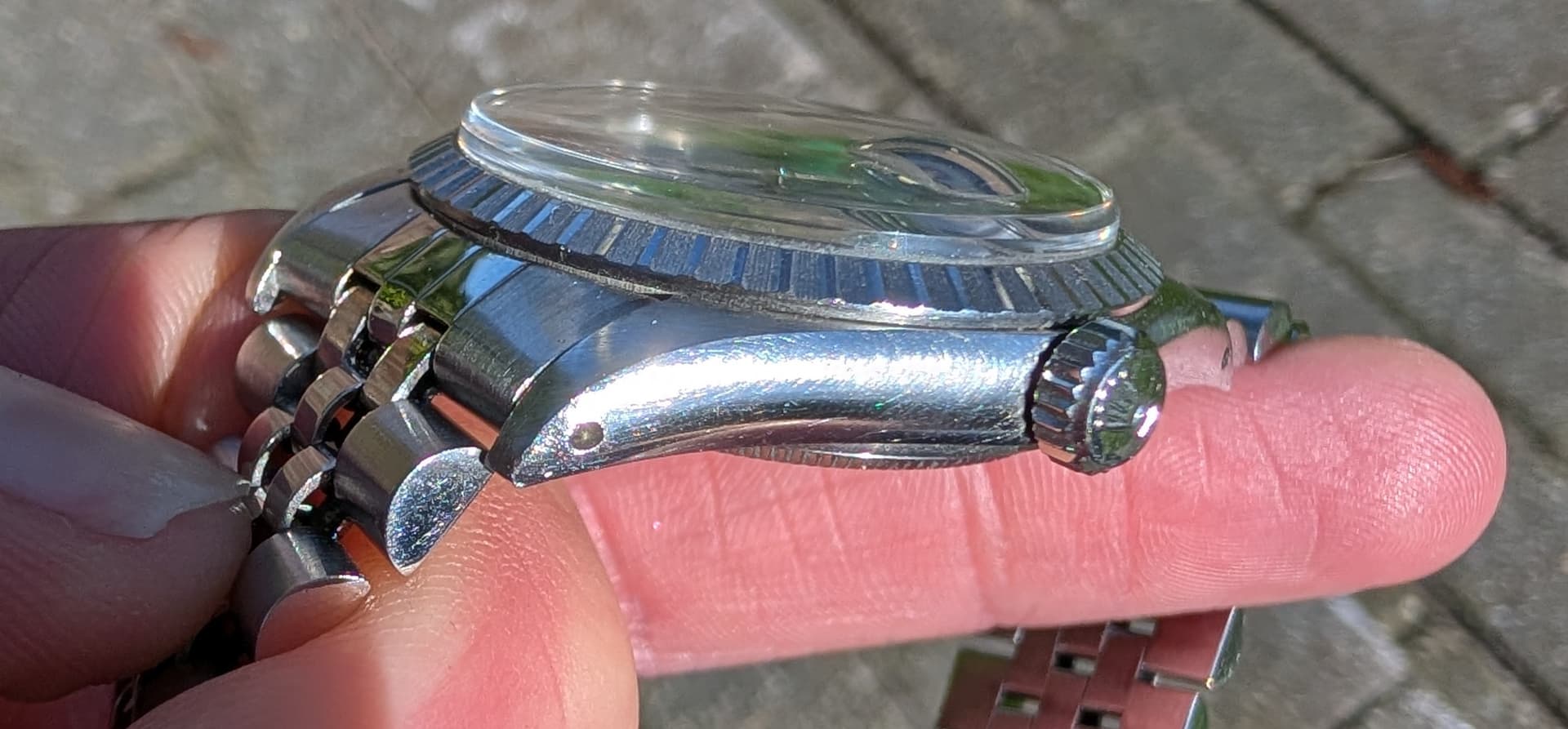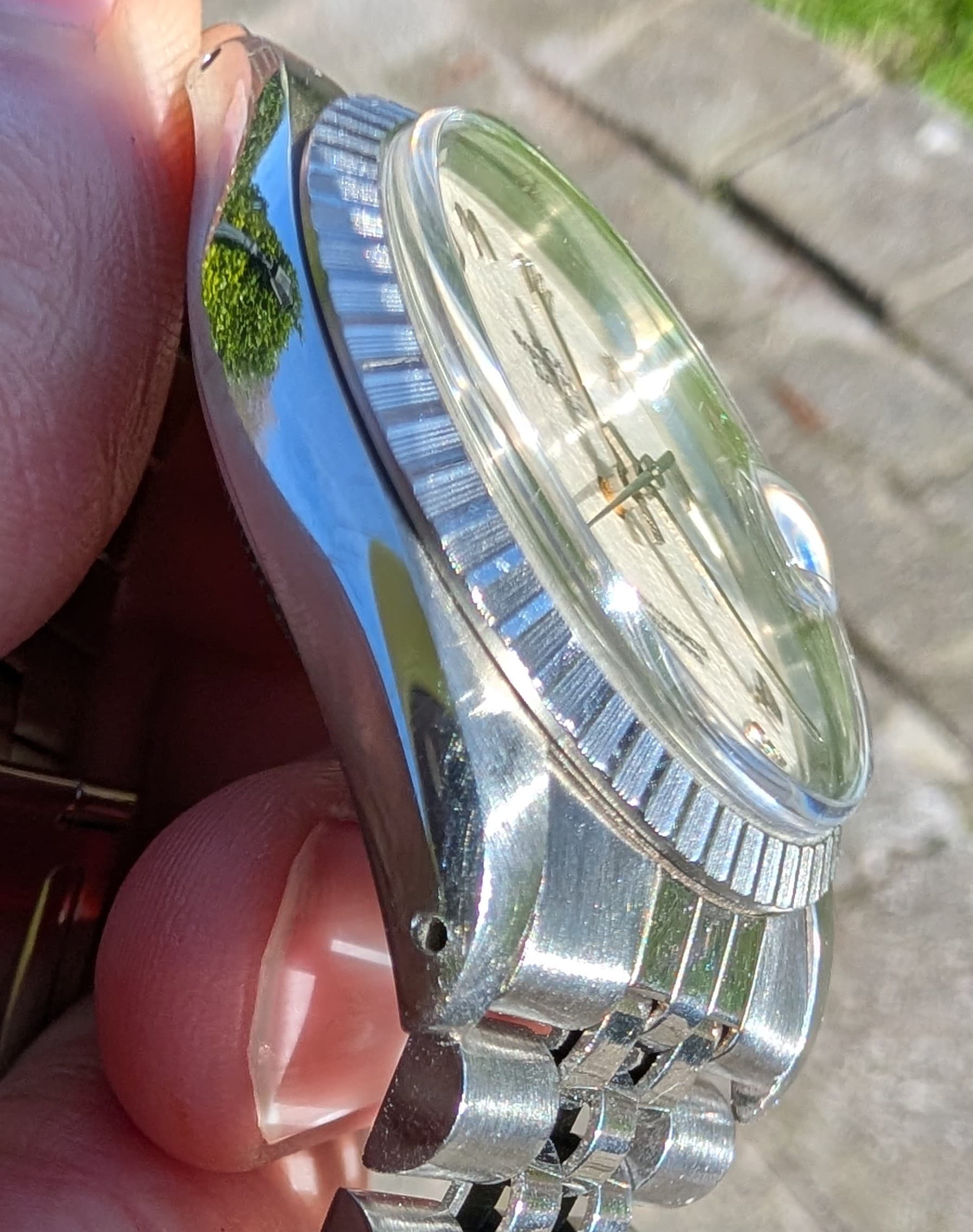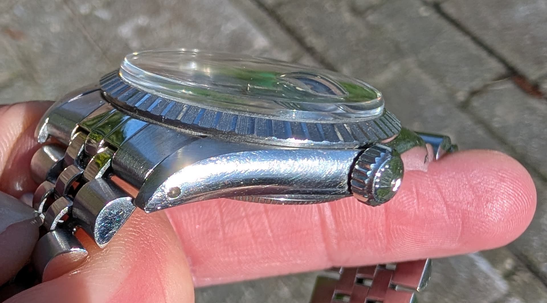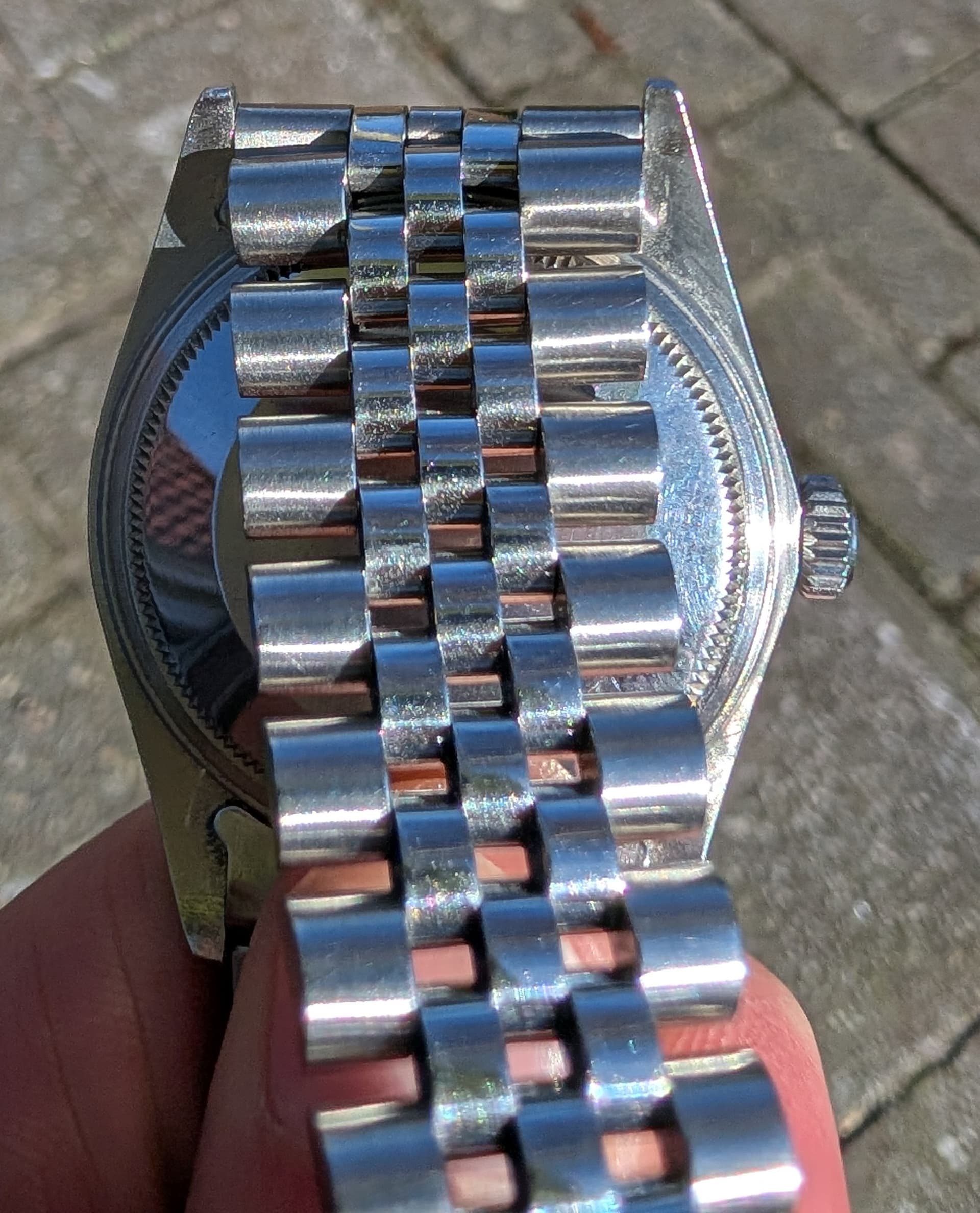 Een iconische Rolex met een eigen identiteit — ideaal voor de liefhebber die op zoek is naar een authentiek stuk met nét dat beetje extra. De foto’s zijn gemaakt op 18 maart 2026, in het onverbiddelijke zonlicht. Elk lijntje is dus zichtbaar om zo een goed mogelijk beeld te creëren. Gelukkig zijn er ook nog sfeerplaatjes.