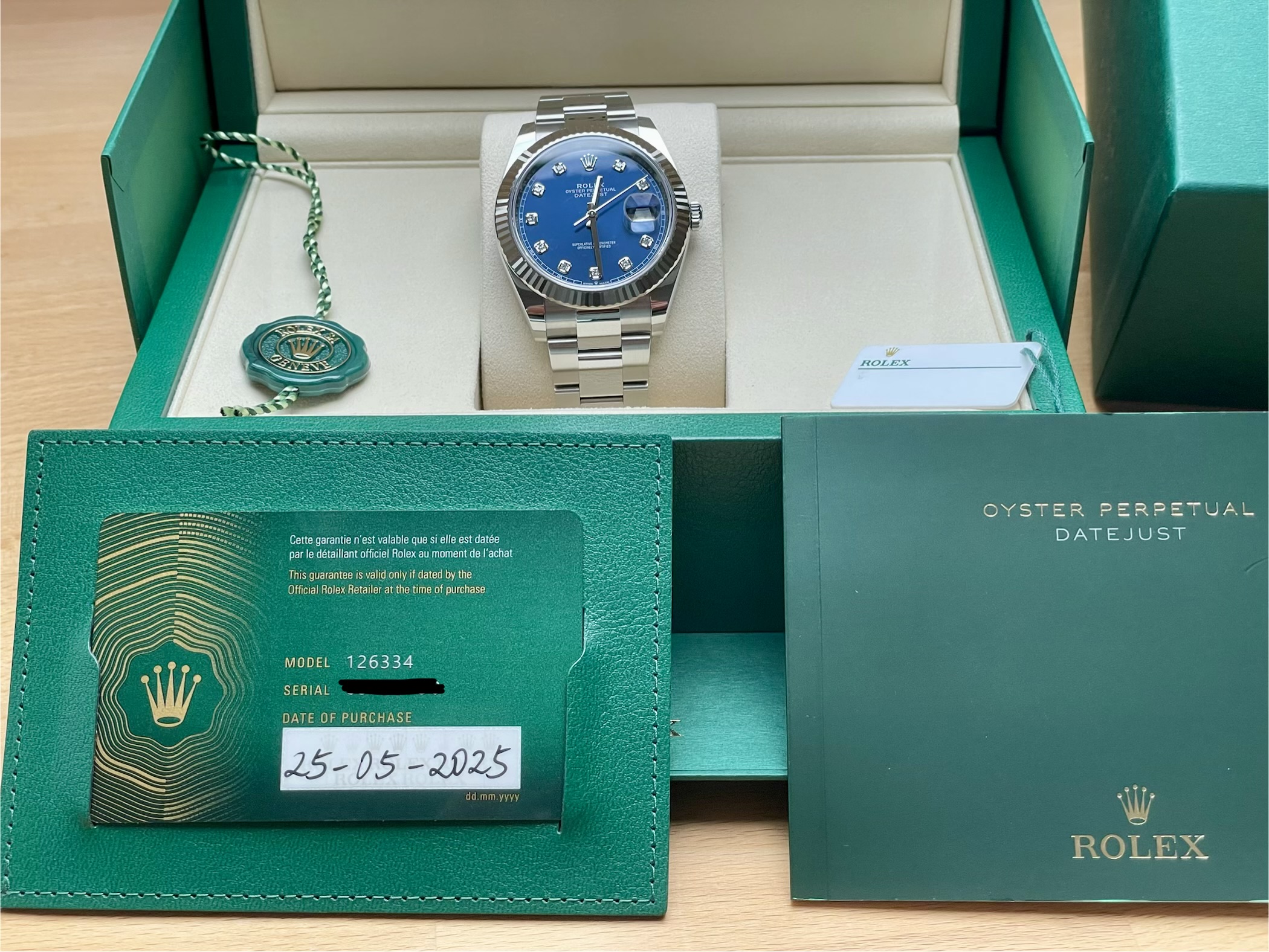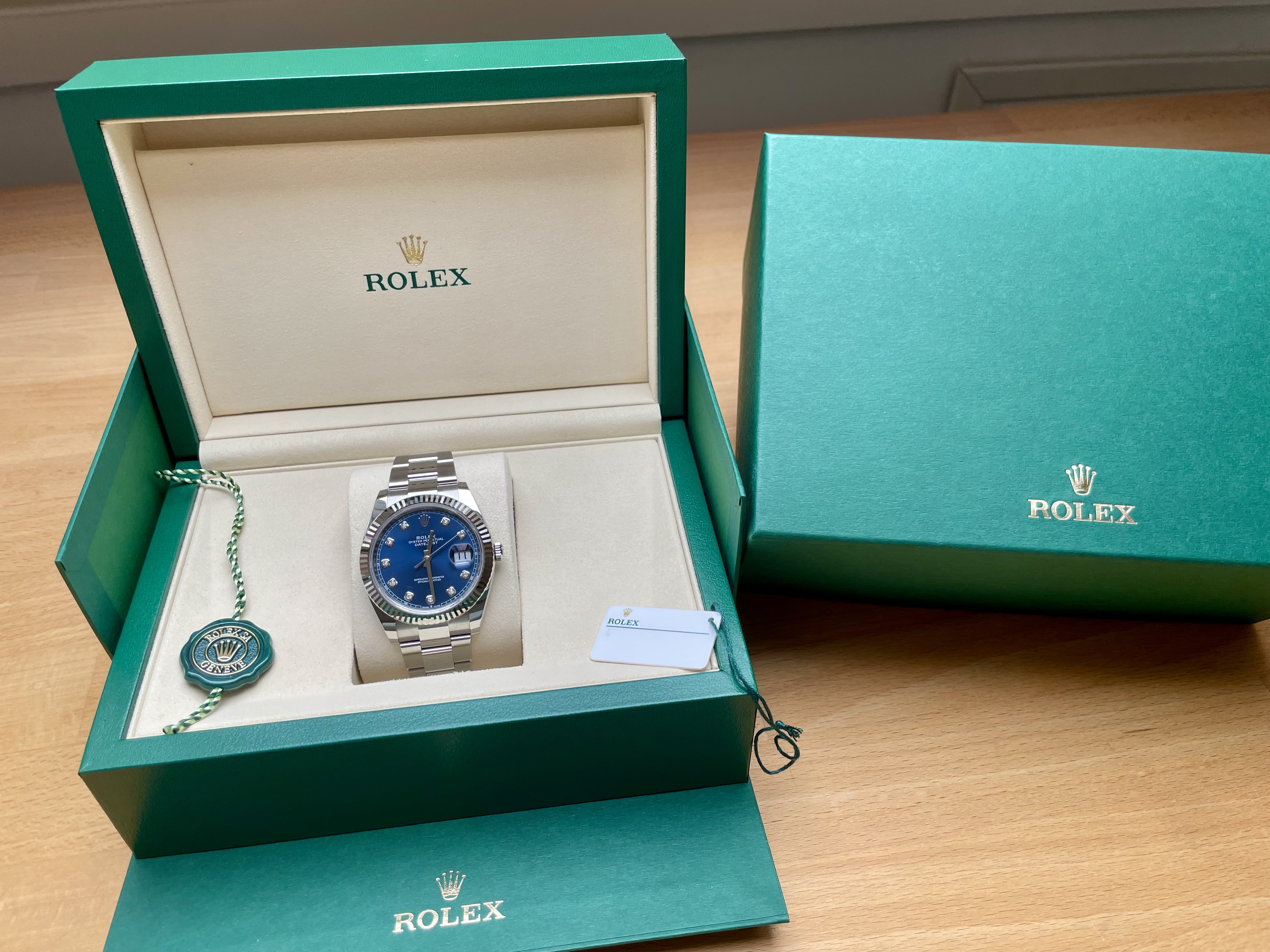 Het mechanisme loopt nauwkeuriger dan jouw agenda ooit zal doen. Nieuw. Full set. Nooit gedragen door iemand die twijfelde.