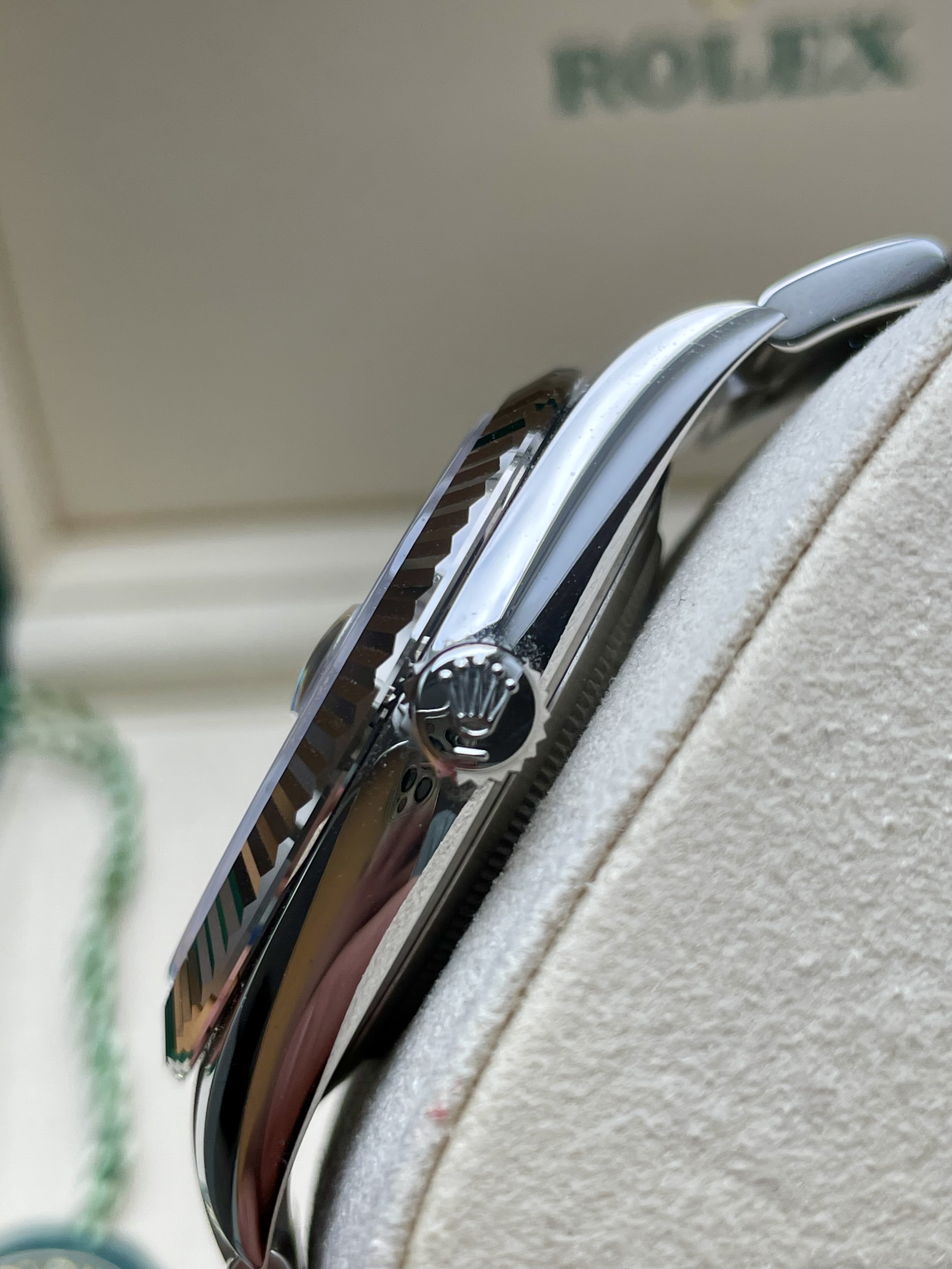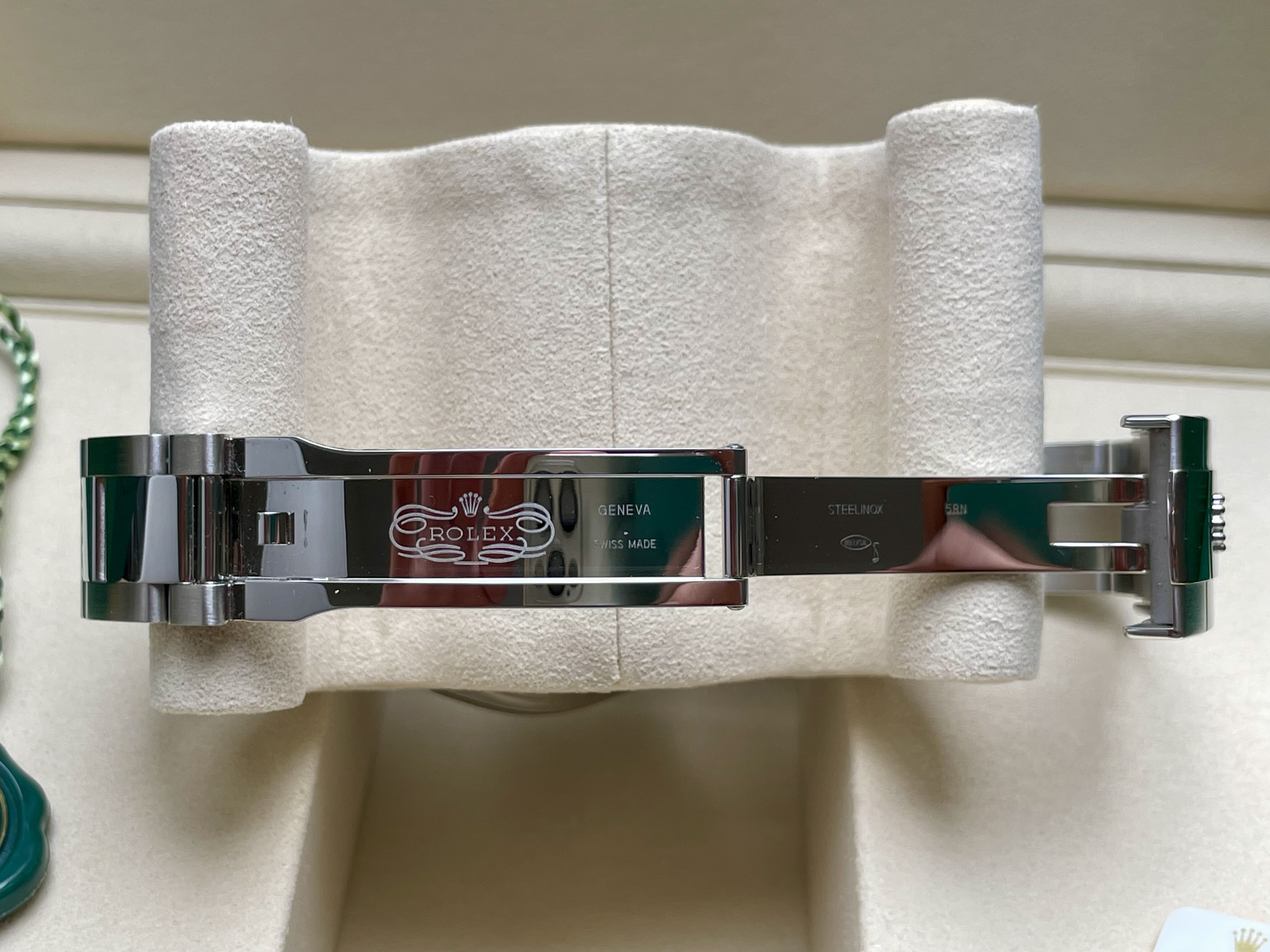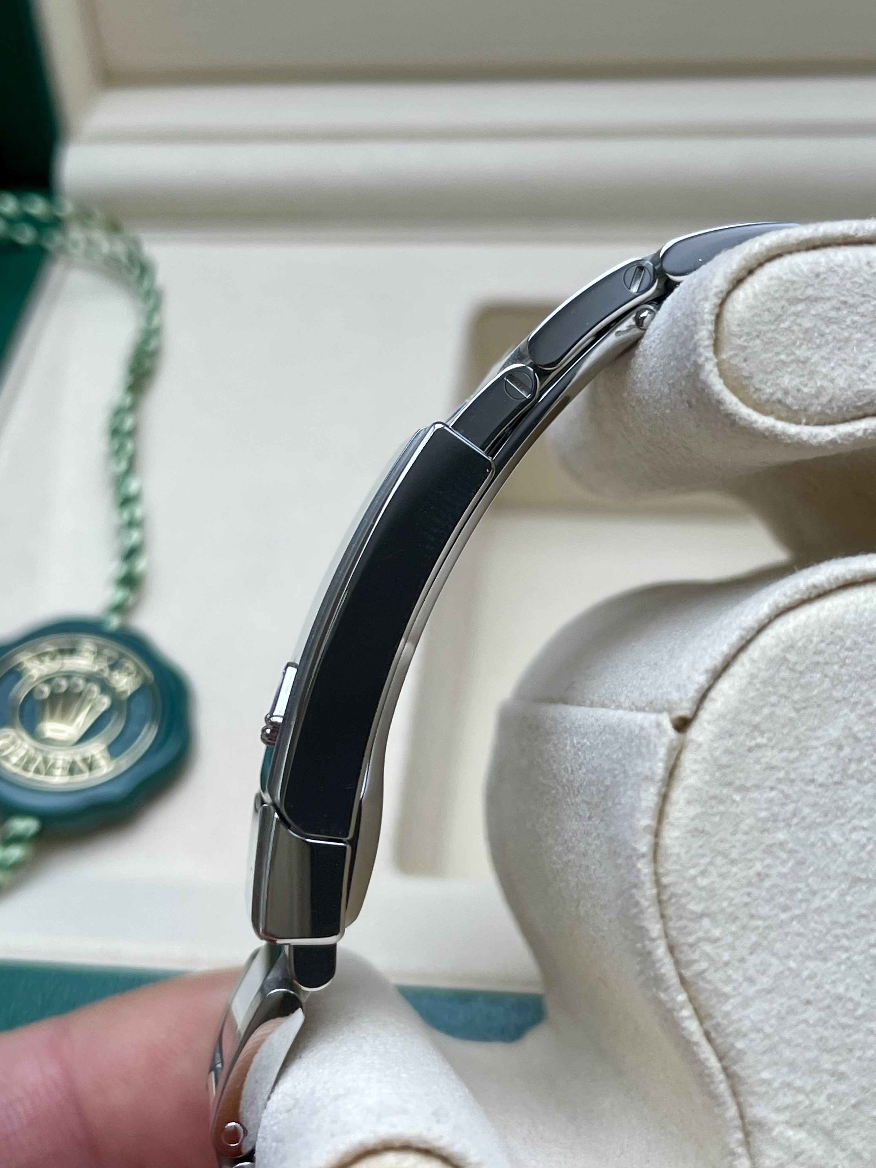 Daaronder: een Oyster-band die zit als een op maat gemaakt pak. Geen geratel, geen speling, geen compromis. Schakel voor schakel vakmanschap om je pols, afgewerkt alsof iemand er écht van hield.