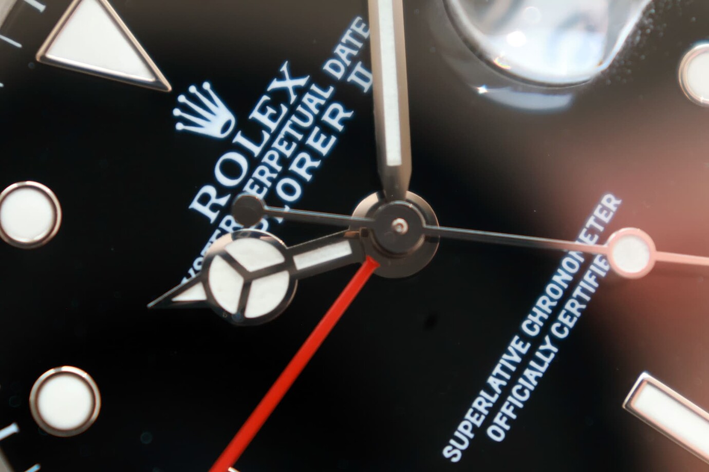 De Explorer II heeft een mooie tritium wijzerplaat met een mooie patina. Zowel de indexen als de wijzers hebben een mooie warme tint gekregen door de jaren heen. Het tritium zit nog netjes vast in de wijzers en indices.