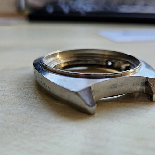 Helaas met tekst in de zijkant gegraveerd maar wellicht dat iemand het er netjes uit kan schuren en polijsten.