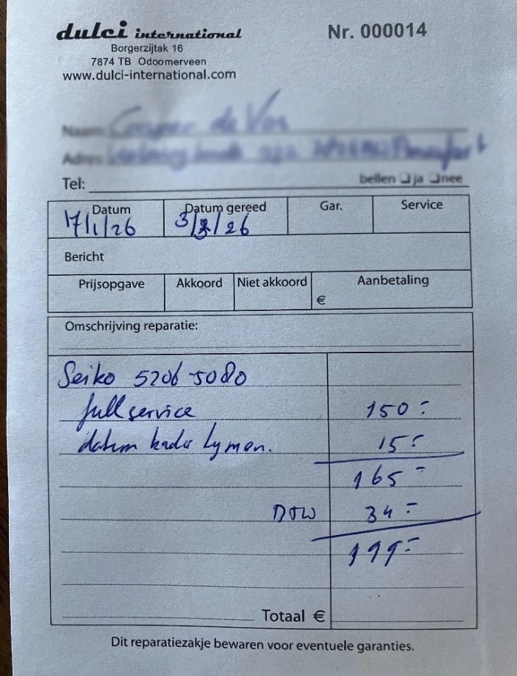 Net volledig geserviced bij Dulci (zie foto factuur).