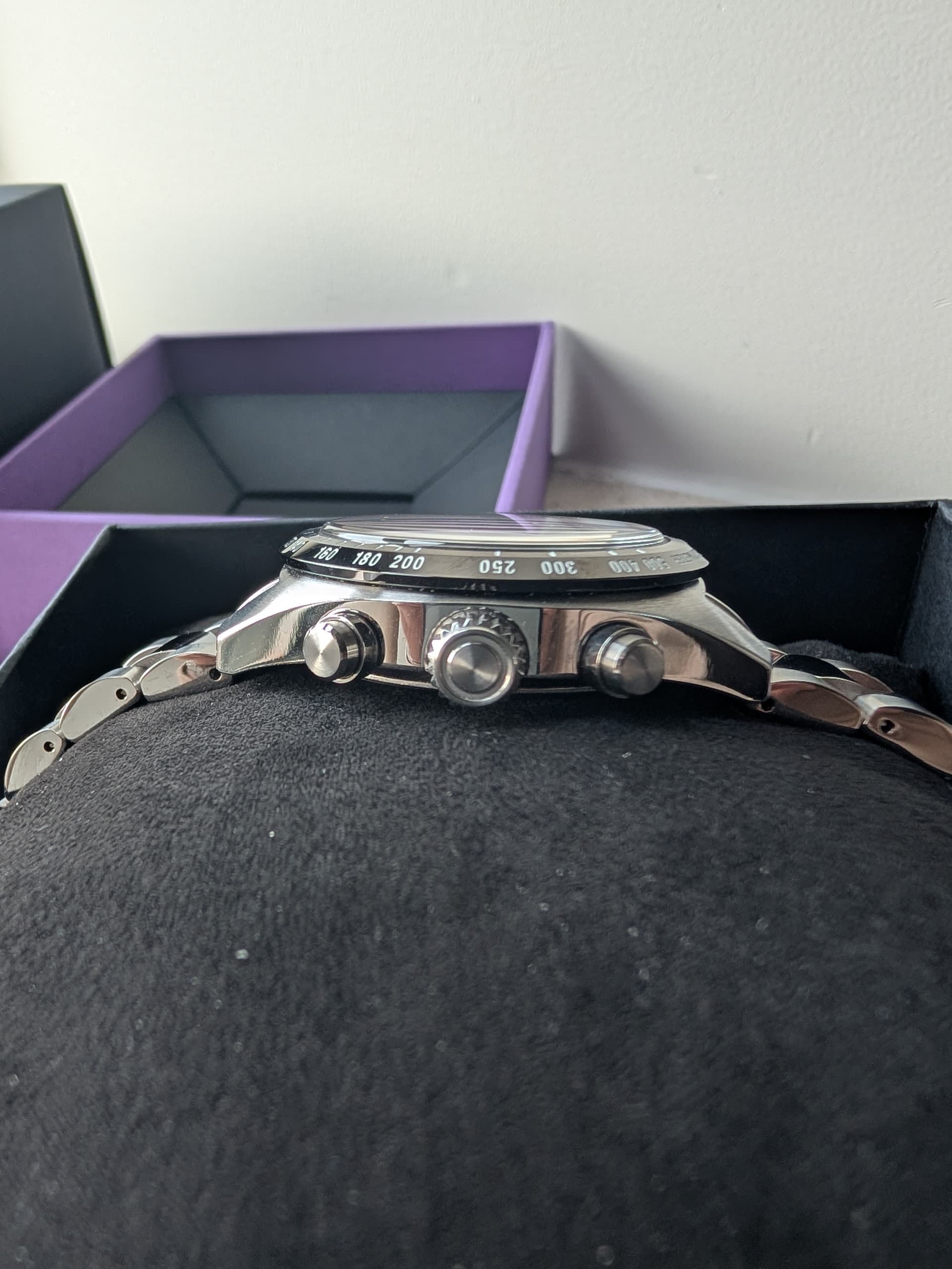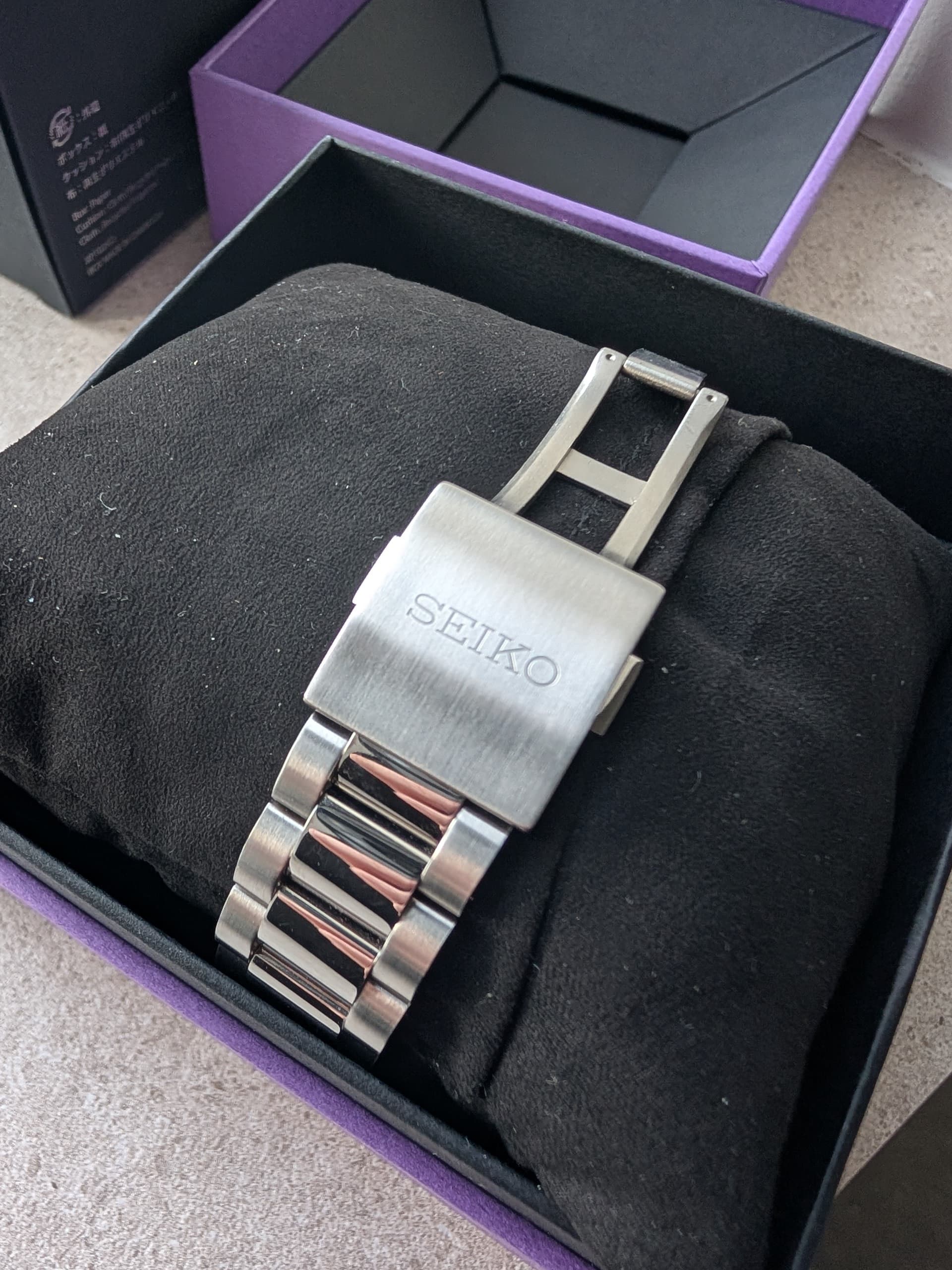 Te koop: Een mooi ‘Edo Purple’ Speedtimer, de SSC955. Het paars is moeilijk om mooi op de foto te krijgen. Maar is heel chique en subtiel te dragen. Draagt subliem, maar toch blijven de Speedtimers niet plakken en mag hij vanwege een andere aankoop weg.