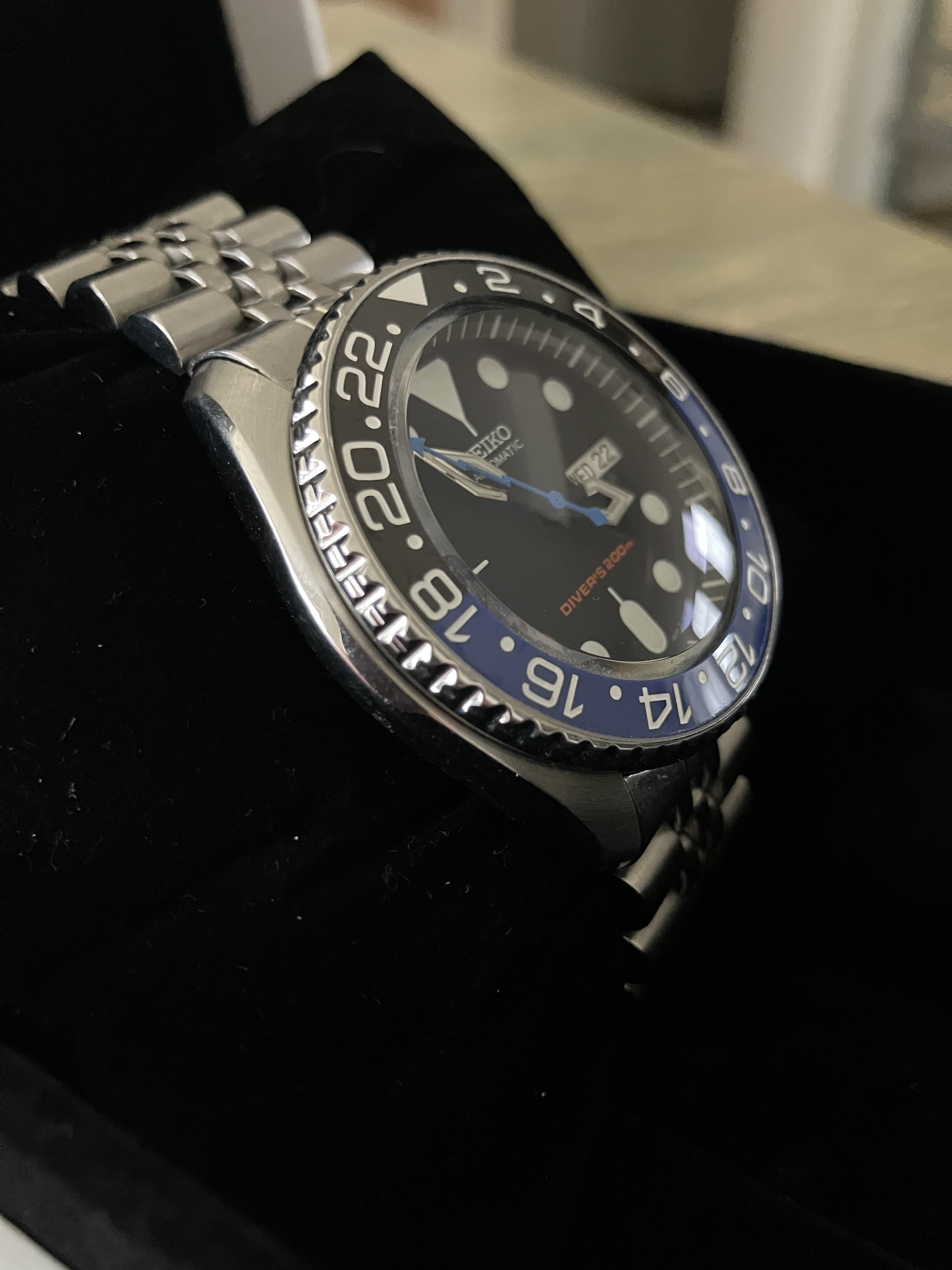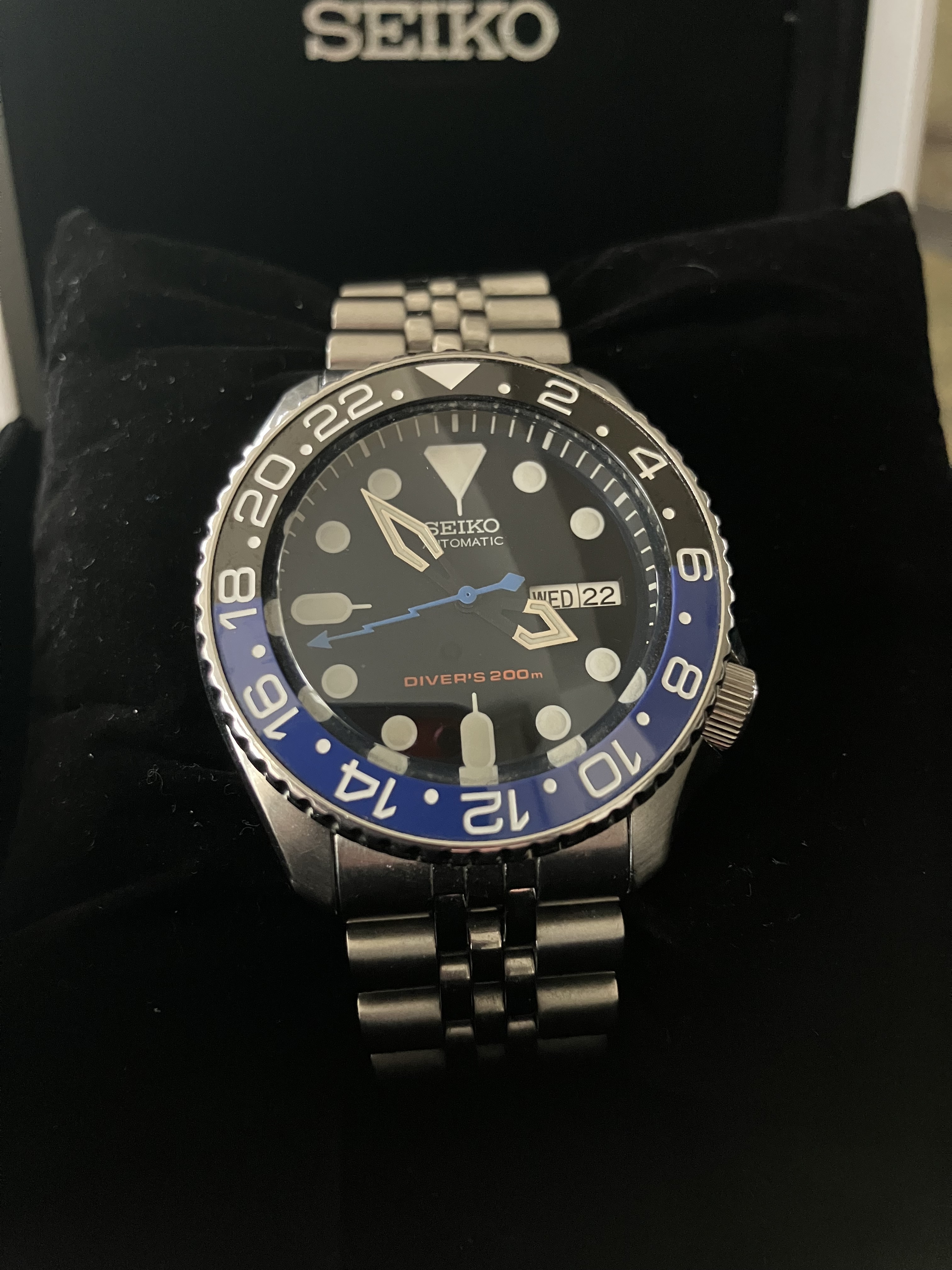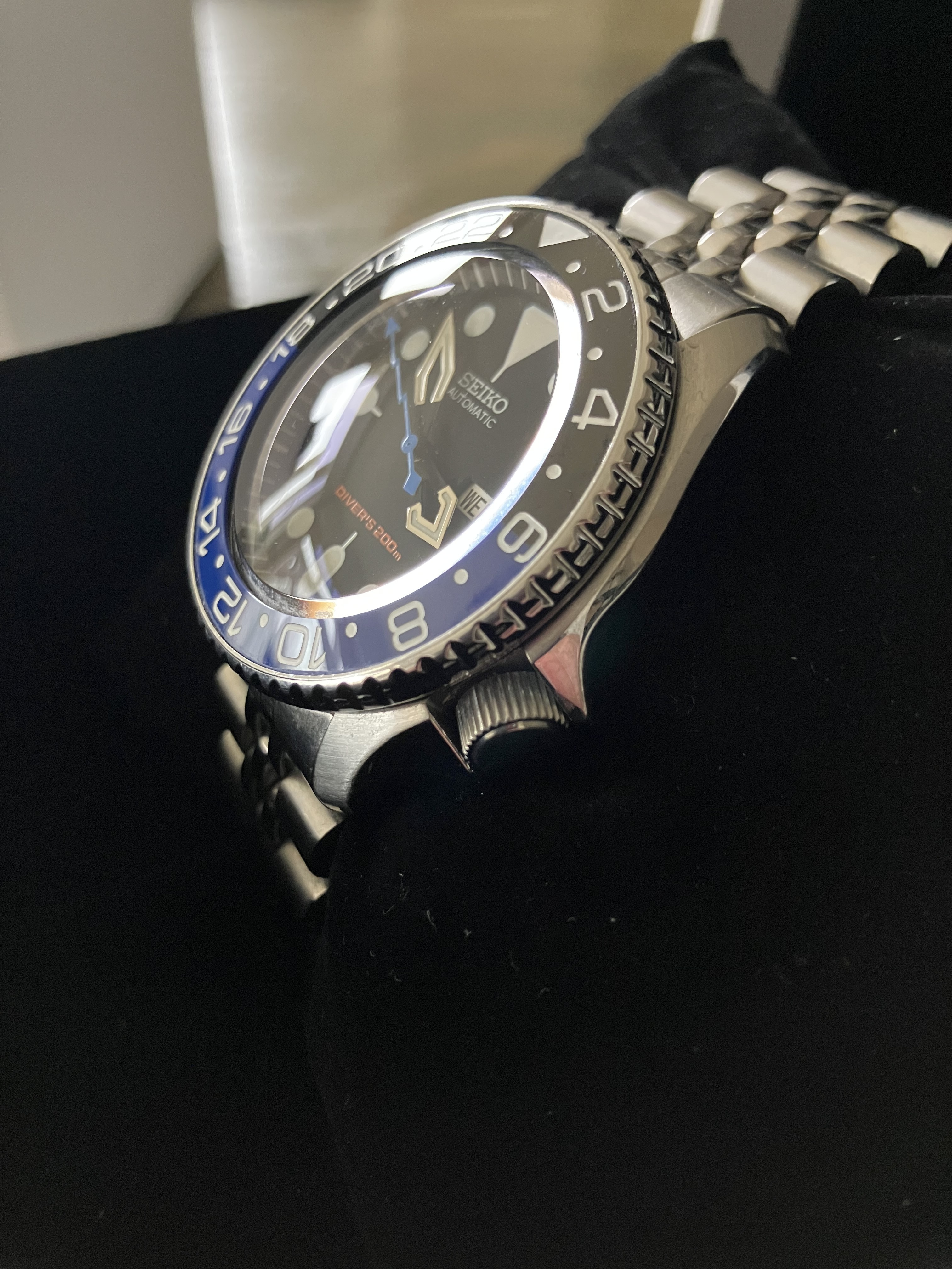 Mooie skx mod, domed saffier, bezel en wijzers.
