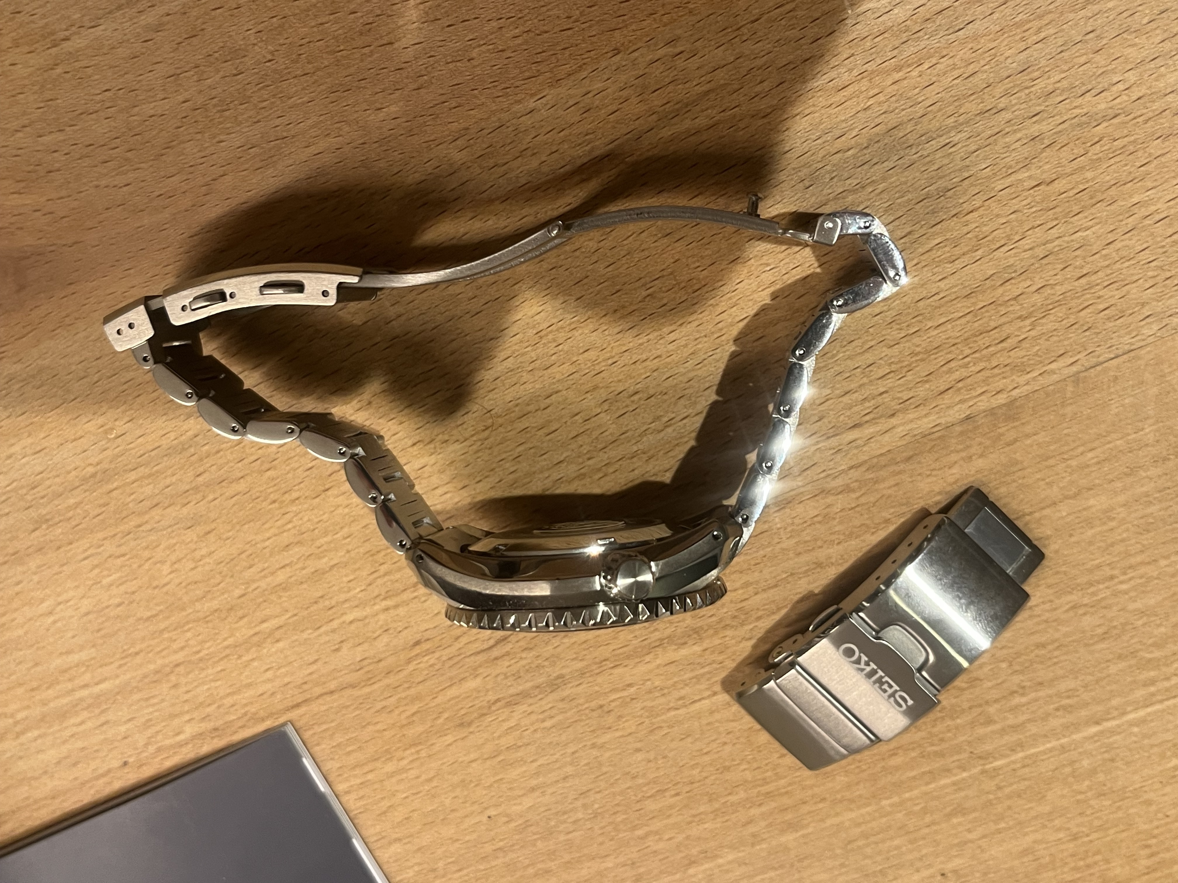 Conditie (krassen, werking etc): nieuw ik heb het plastic eraf gehaald, de band op maat gemaakt en een aftermarket on the fly microadjustgesp van Monsterwatches gemonteerd en het horloge alleen 1 dag gedragen.