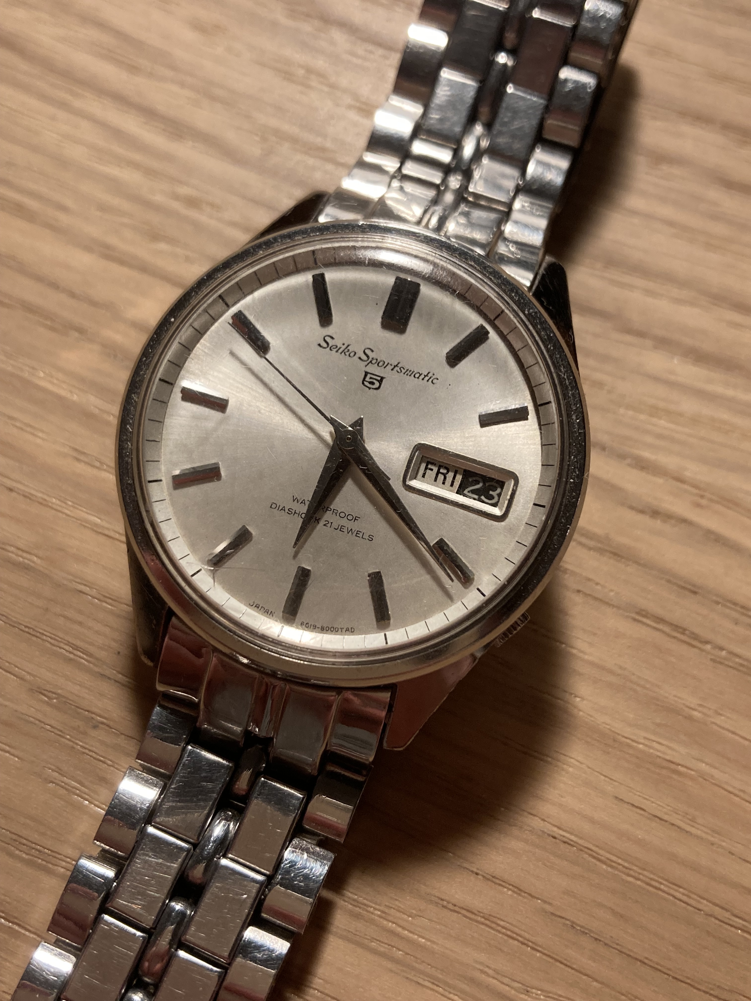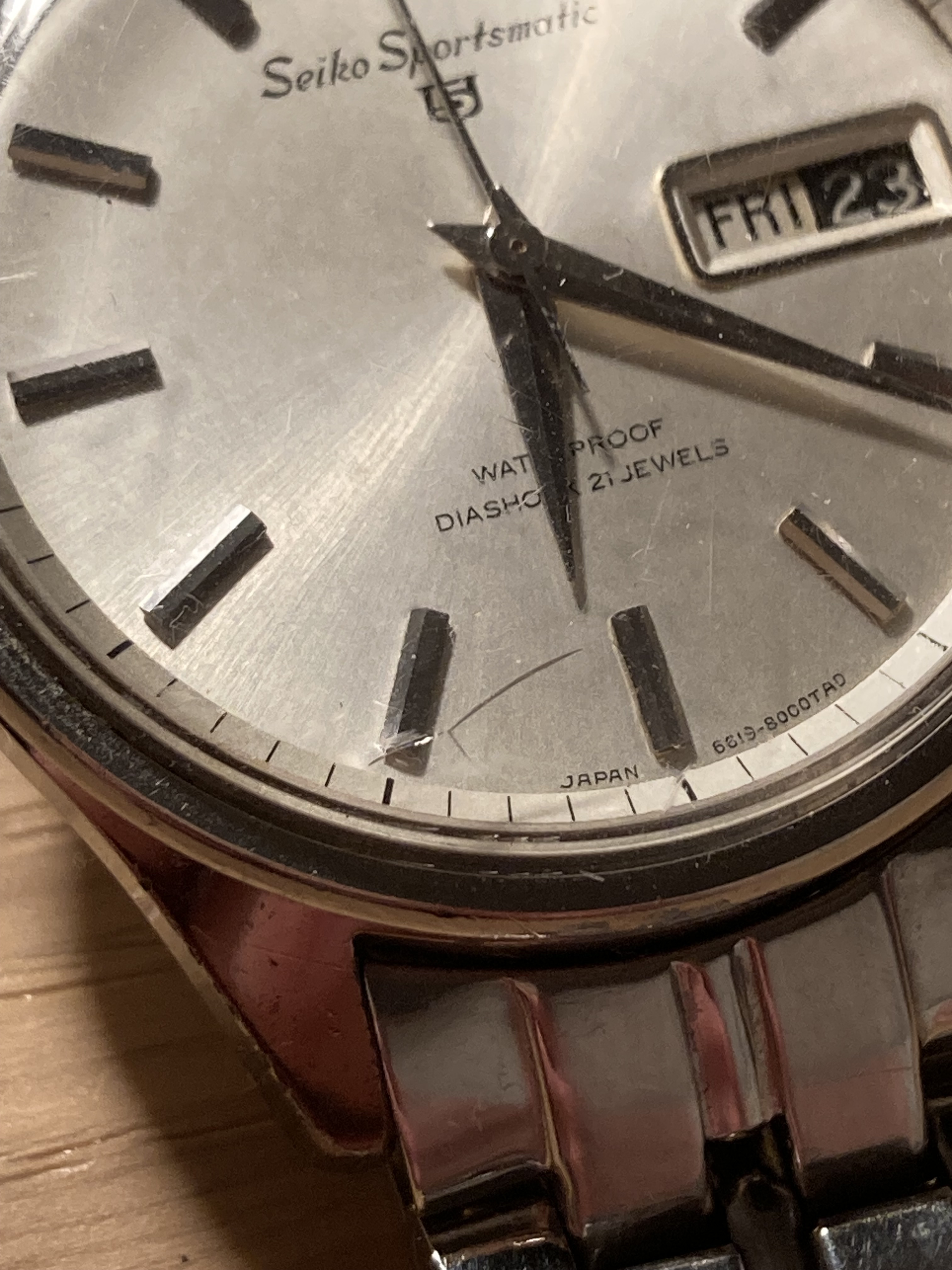 Conditie (krassen, werking etc): gebruikt maar goed werkende staat. Er zit een klein barstje in het glas bij de 7 uur. Deze lijkt niet verder uitgescheurd te zijn, en heb er geen hinder van ondervonden. Er mist één sier stukje op de schakel van de band. Alles is overigens volledig origineel en hij loopt uitstekend.