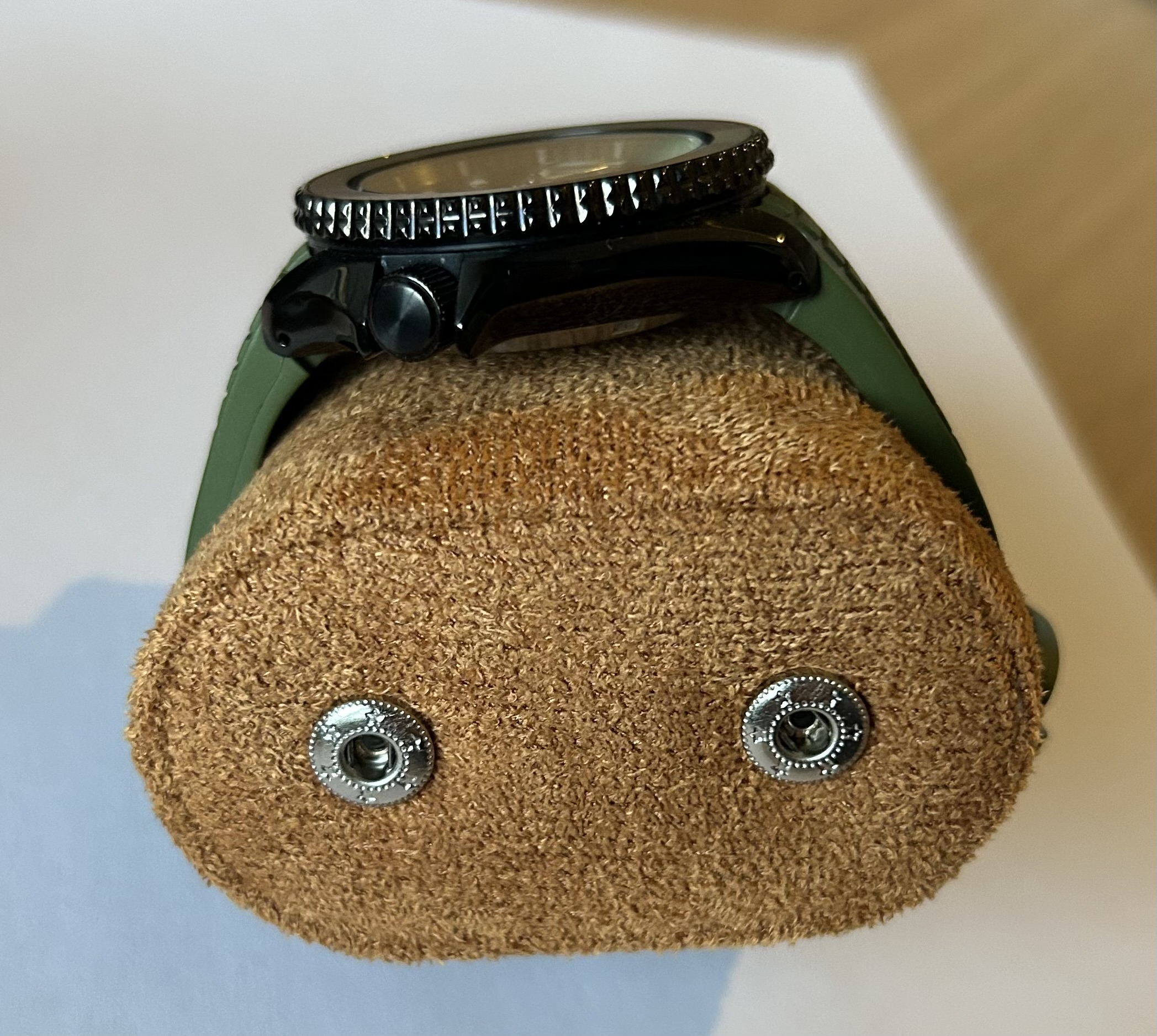 Op dit moment zit hij op de groene Crafter Blue band (cb11). Deze sluit perfect aan en ik moet zeggen, dat deze ook nog eens heel prettig draagt.