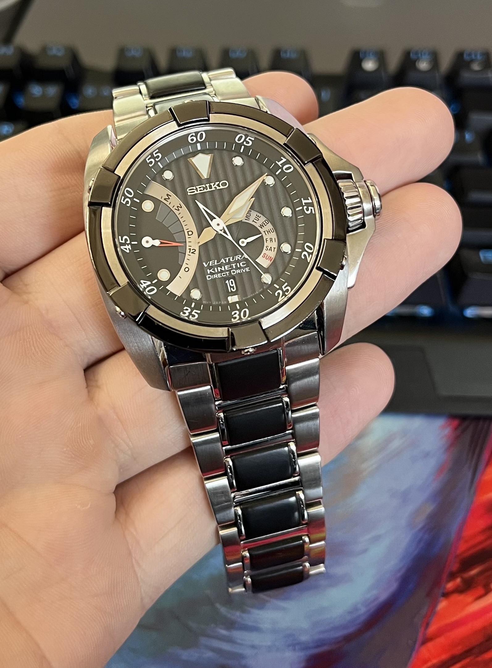 Hierbij bied ik mijn prachtige Seiko Kinetic aan. Heb hem veel gedragen, maar blijft nú eigenlijk alleen maar liggen met al het andere geweld.