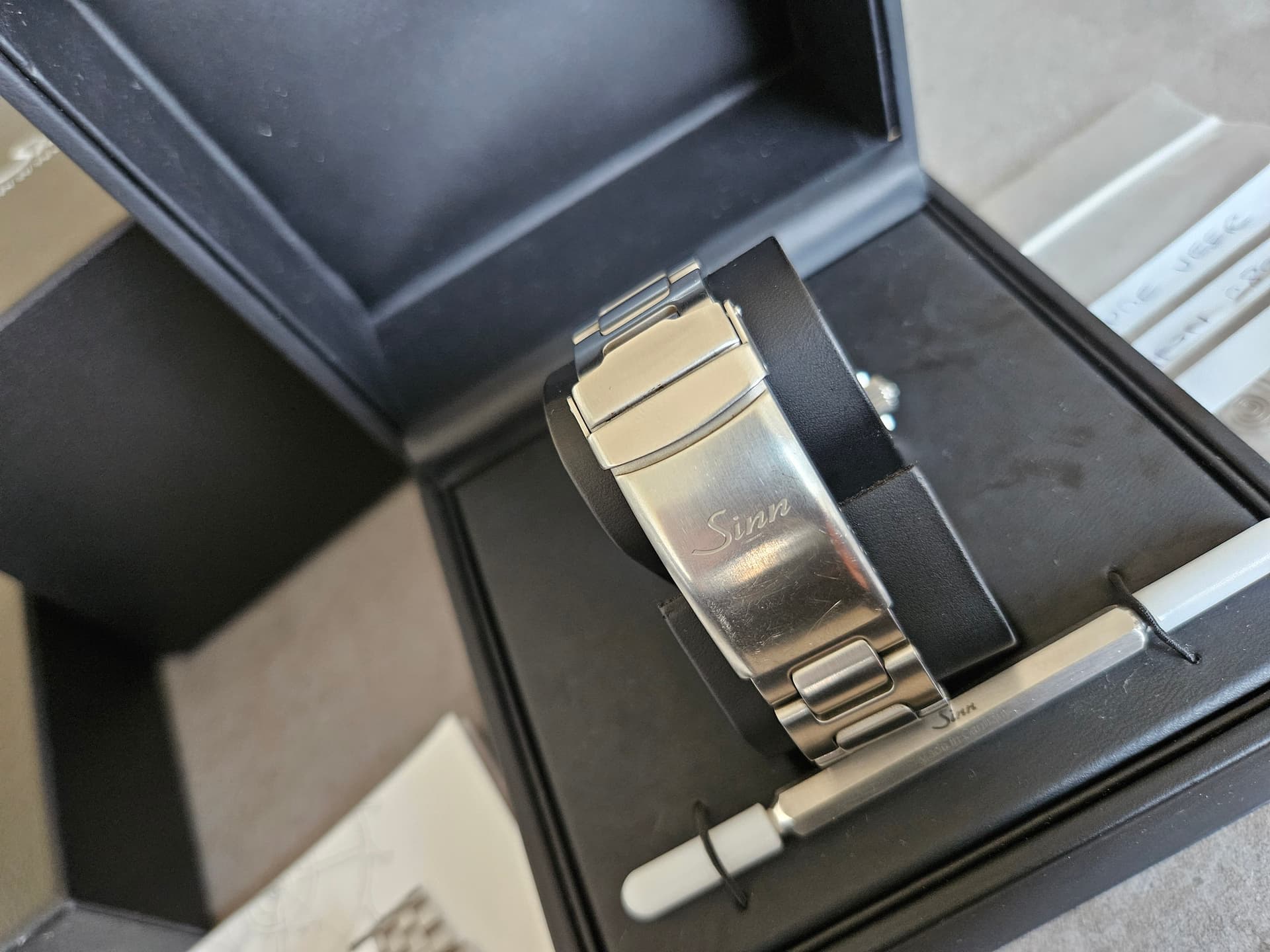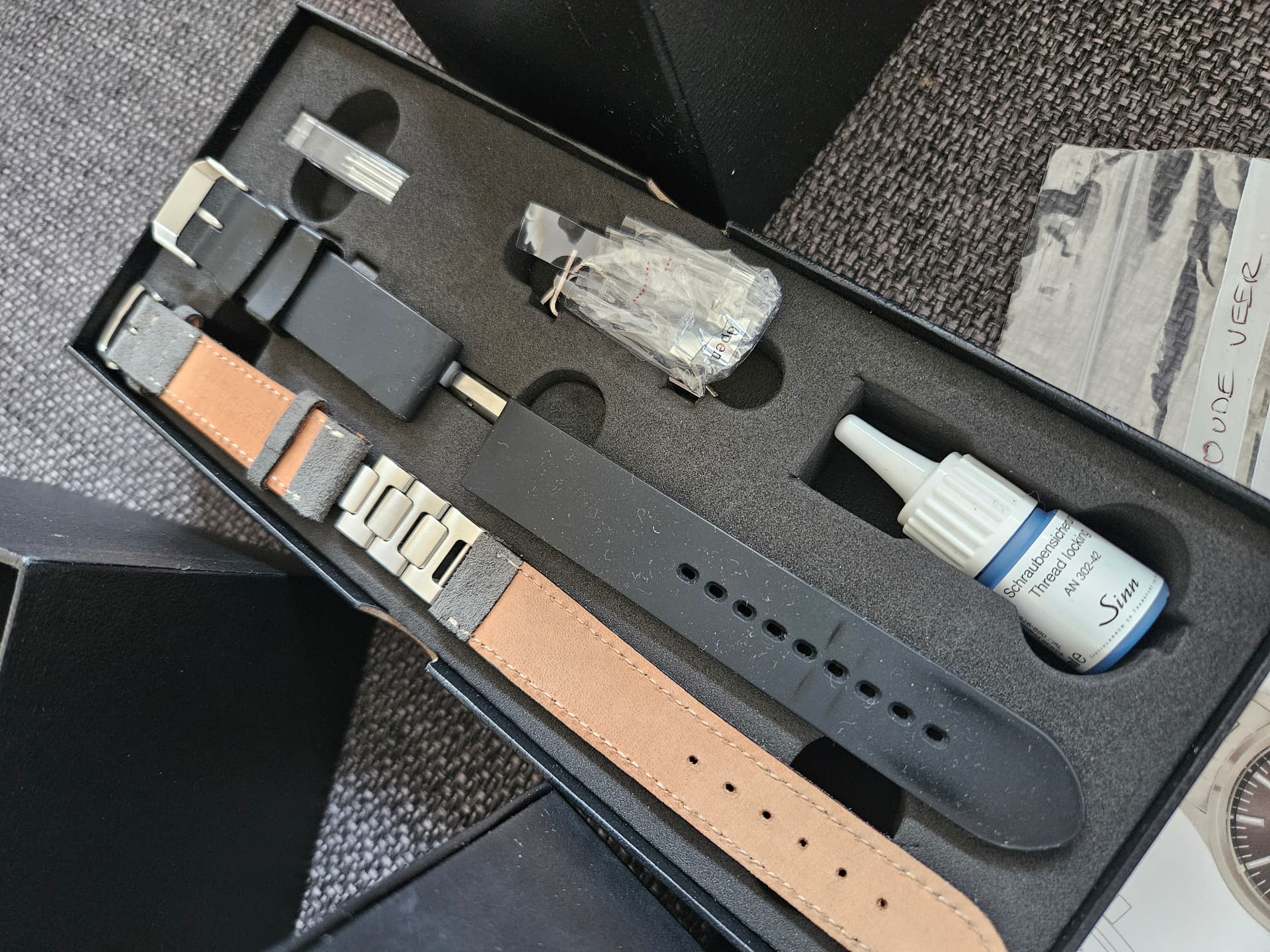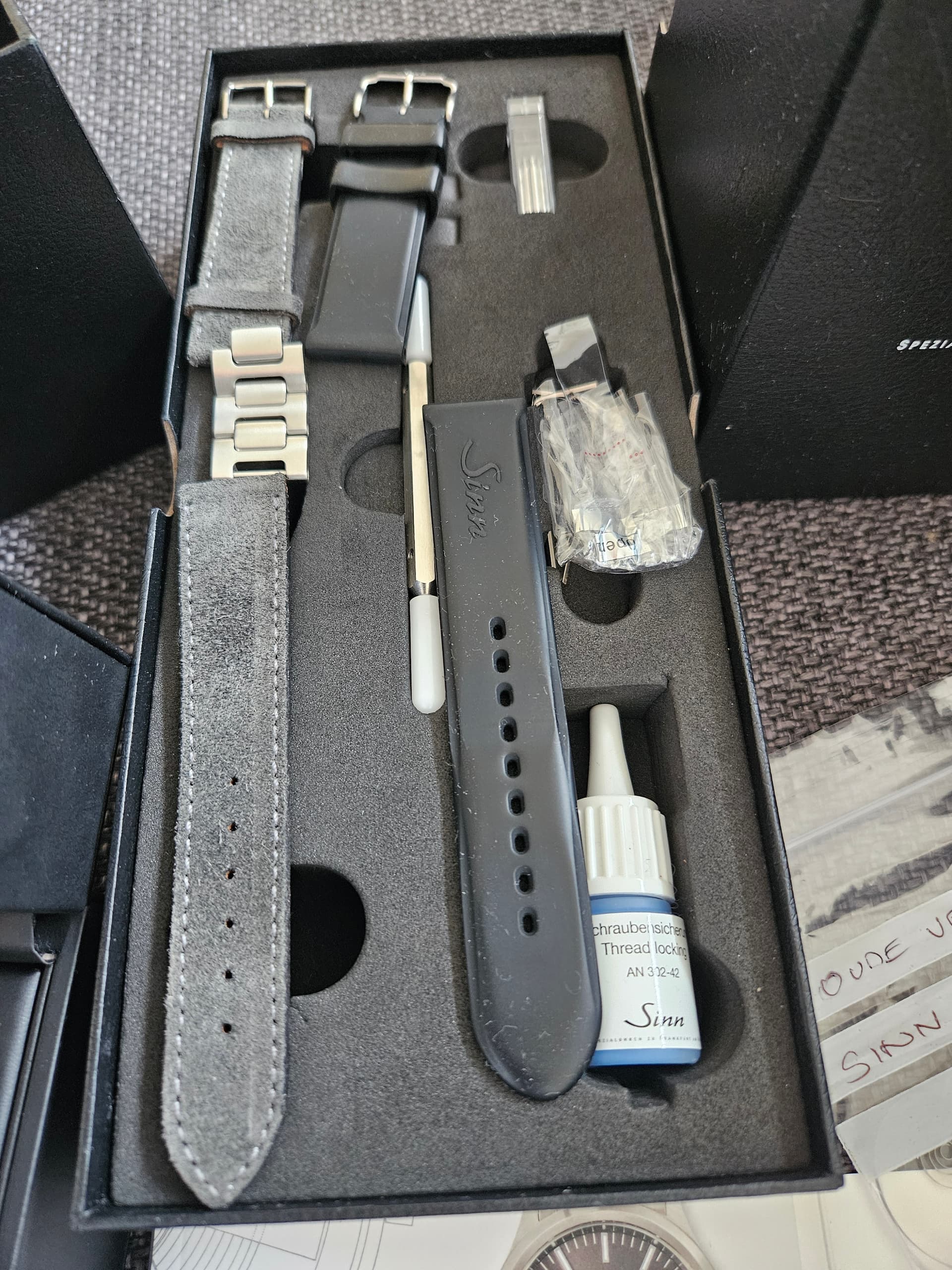 - Originele doos en/of eventuele accessoires: Originele doos, boekjes, garantiekaart, originele Sinn siliconen en Sinn H-link band met alle schakels. Plus matchende grijze suede band (lijkt Sinn op te staan, maar ben niet zeker). Banden zijn in nieuwstaat, beide slechts 1 á 2x gedragen. Alle originele accessoires zitten erbij, al met al een hele mooie en complete verzamelwaardige set.