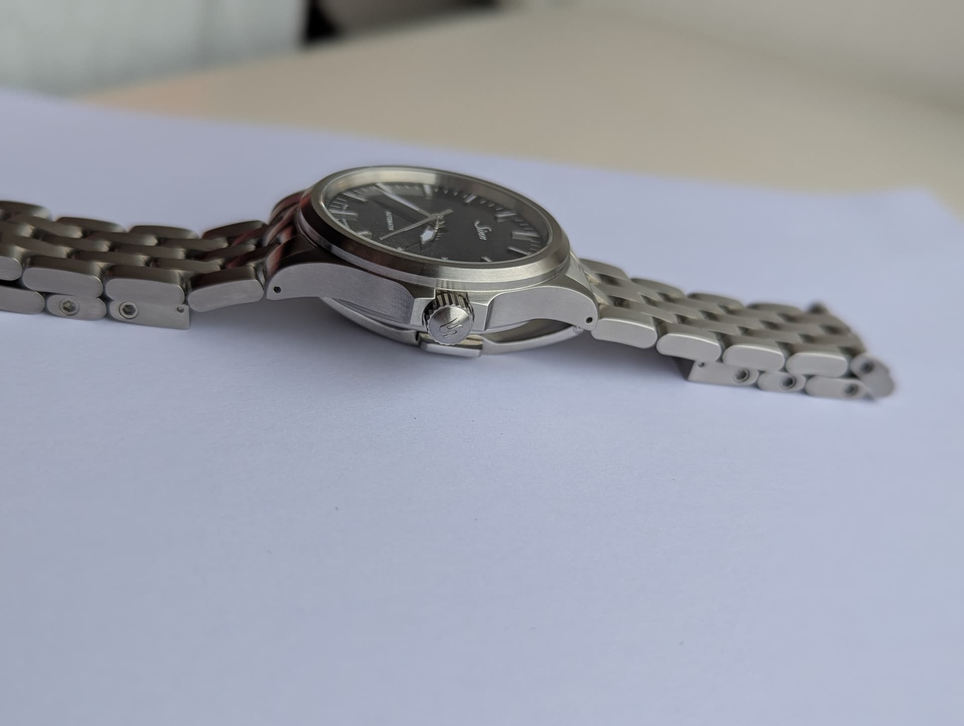 Te koop is mijn mooie Sinn, slechts een paar keer gedragen en in nieuwstaat. Op de mooie fine link band met vlindersluiting.