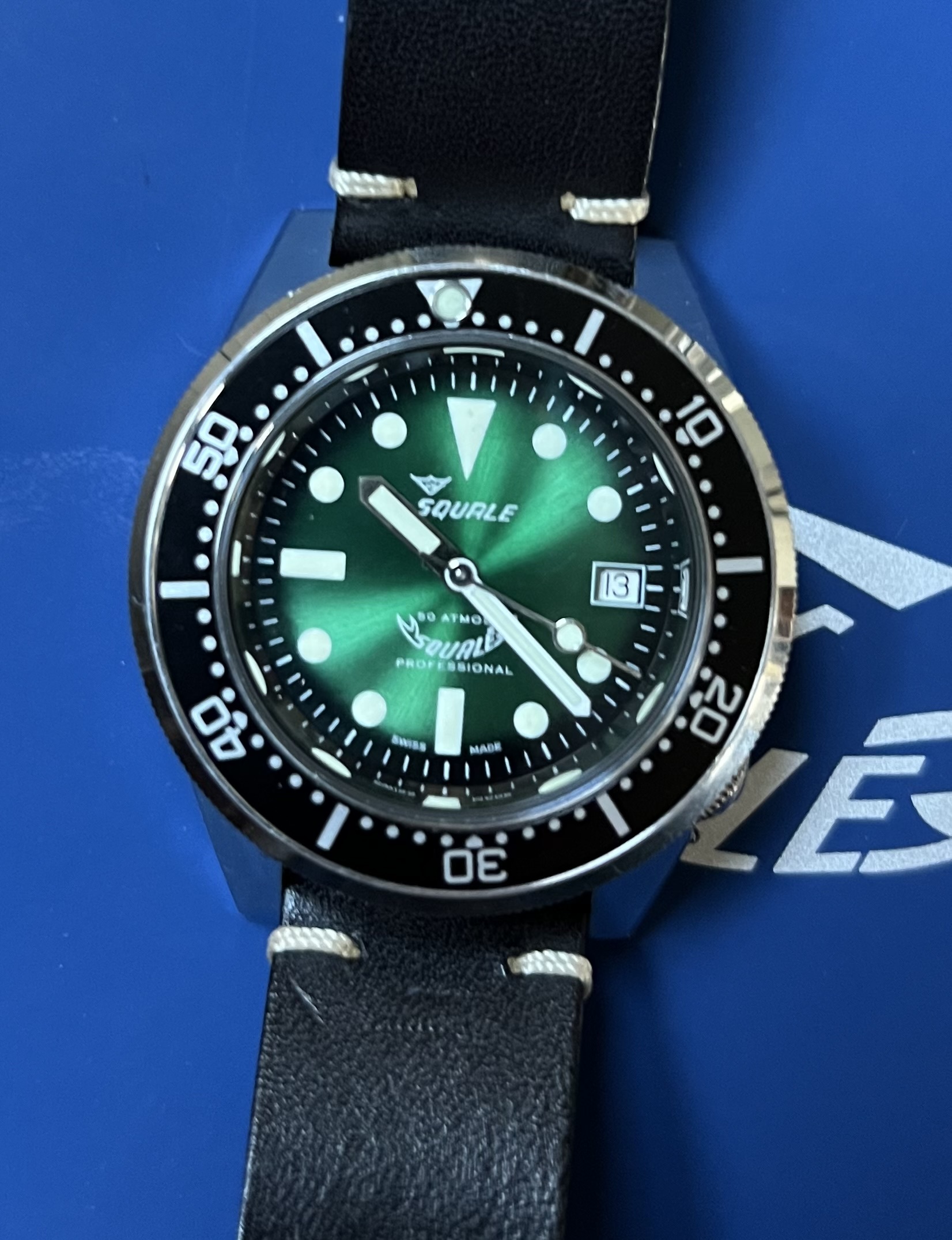 Sinds de komst van m’n horloges van CREPAS en Doxa is ineens de hoardingbehoefte wat minder geworden, en mag er een en ander uit, zelfs een of twee uit de Squale hoard. En deze draag ik eigenlijk alleen met Kerst, dus da’s misschien een beetje weinig.