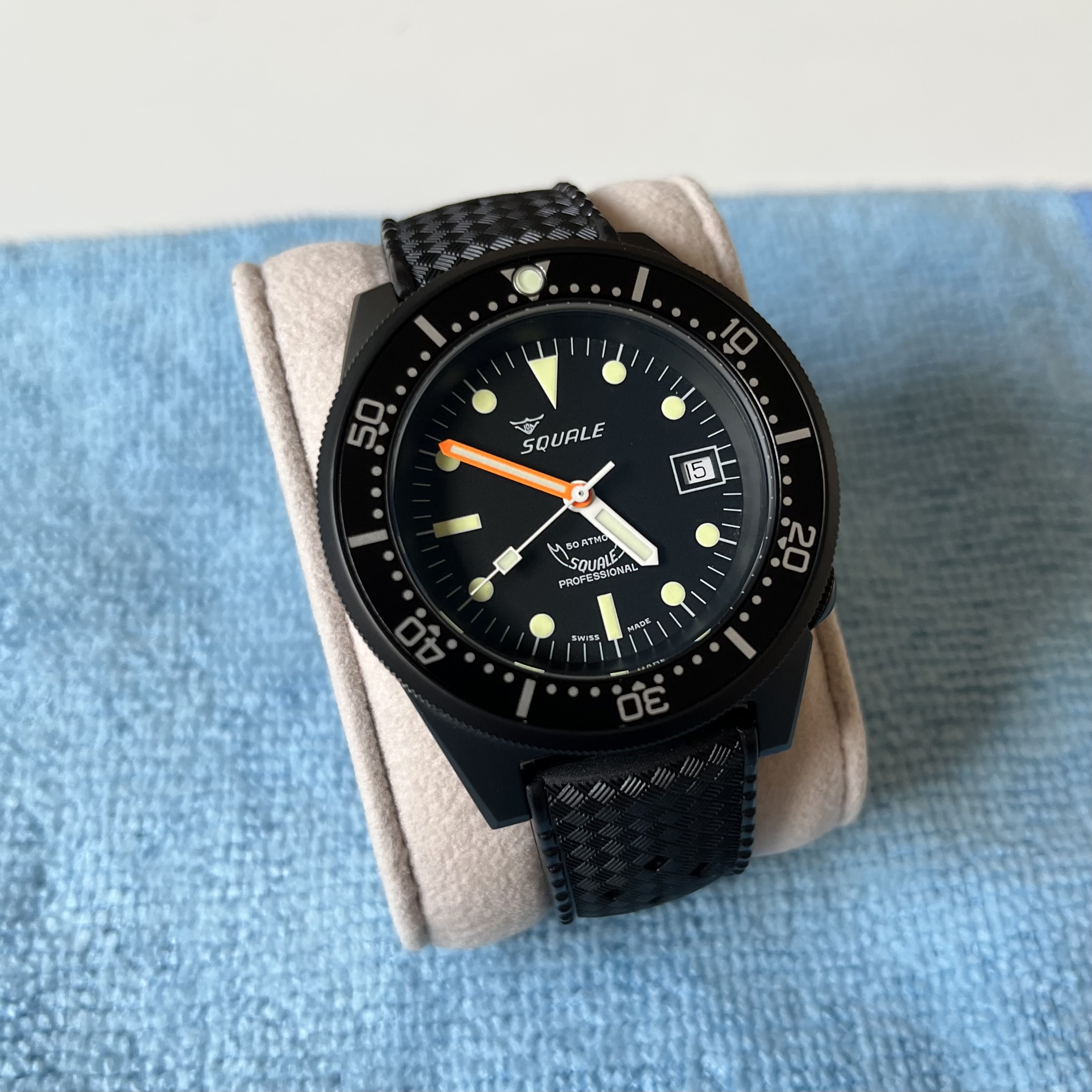 Aangezien de 2001 nergens heen gaat mag deze vertrekken om een plekje in de doos te maken voor een volgende aankoop ik denk niet dat je (of ik) een tweede zal vinden die zo mooi is, mét Squale inscriptie en ETA 2824 (vraag je horlogemaker maar hoe fijn dat is