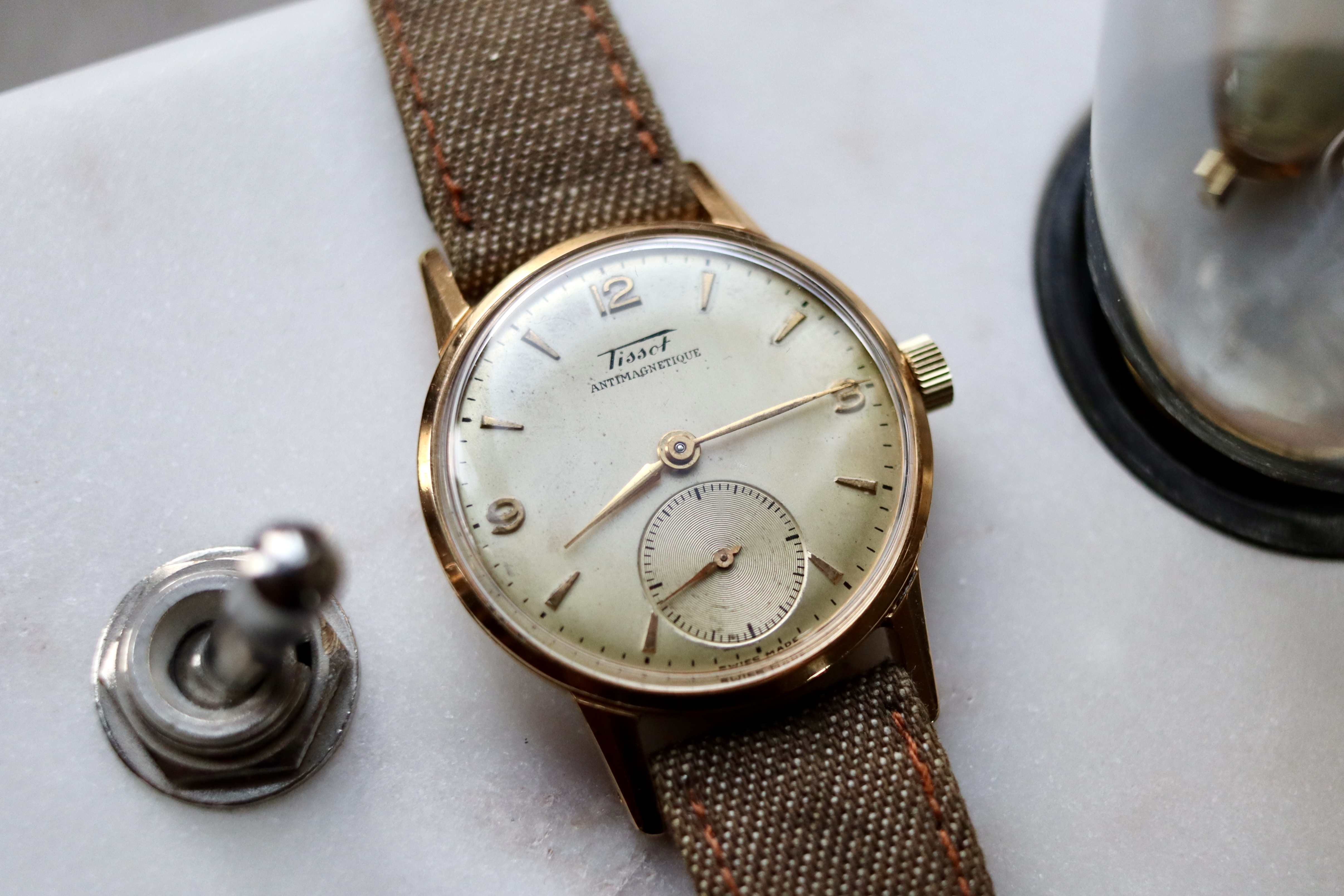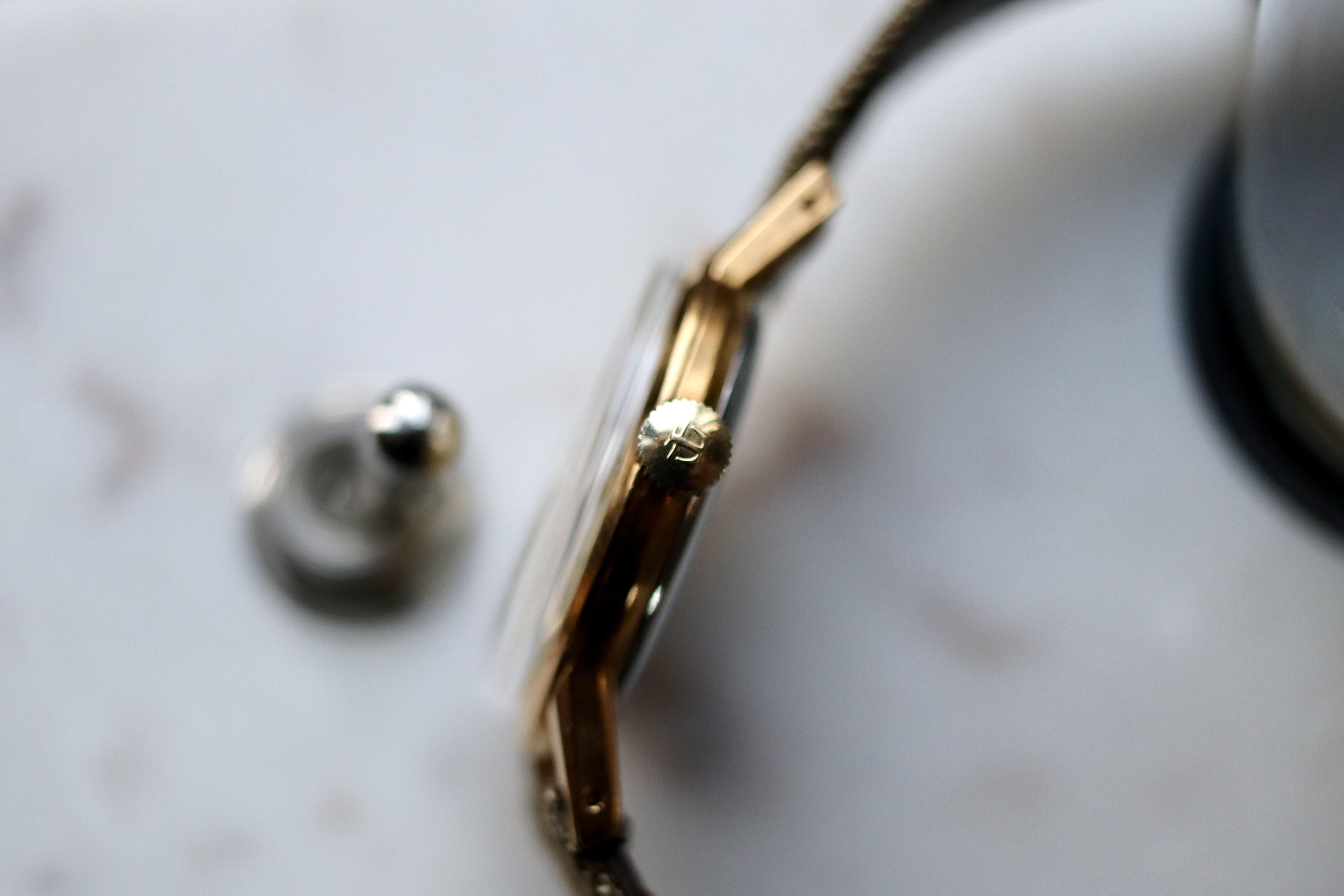 Deze handopwinder heeft een gesigneerde Tissot-kroon. De vergulding van de kast verkeert in zeer goede staat, en de wijzerplaat is slechts zeer subtiel gepatineerd. De elegante wijzers en de small seconds maken het geheel af. Deze dunne knapperd draagt gewoonweg heerlijk.