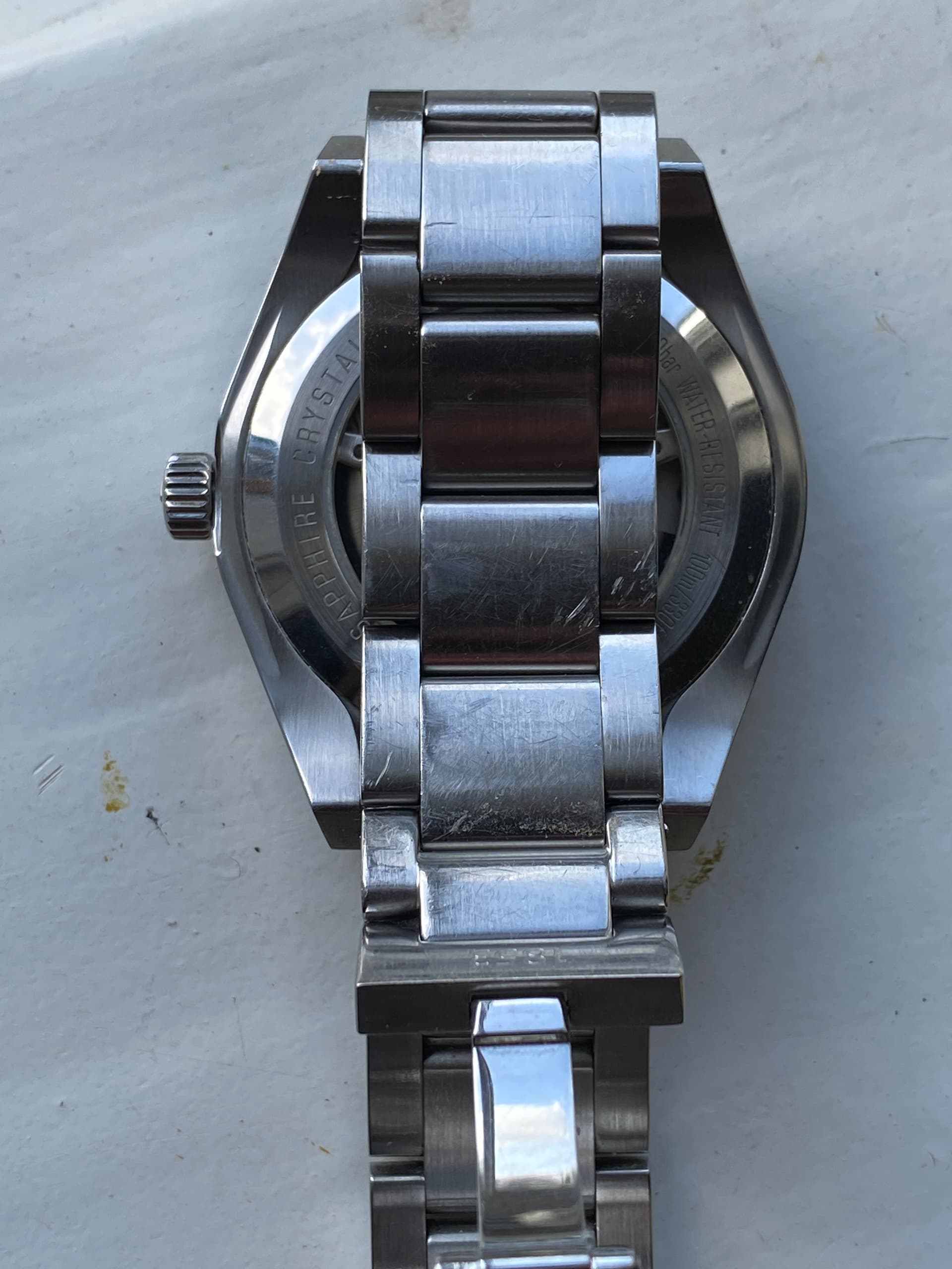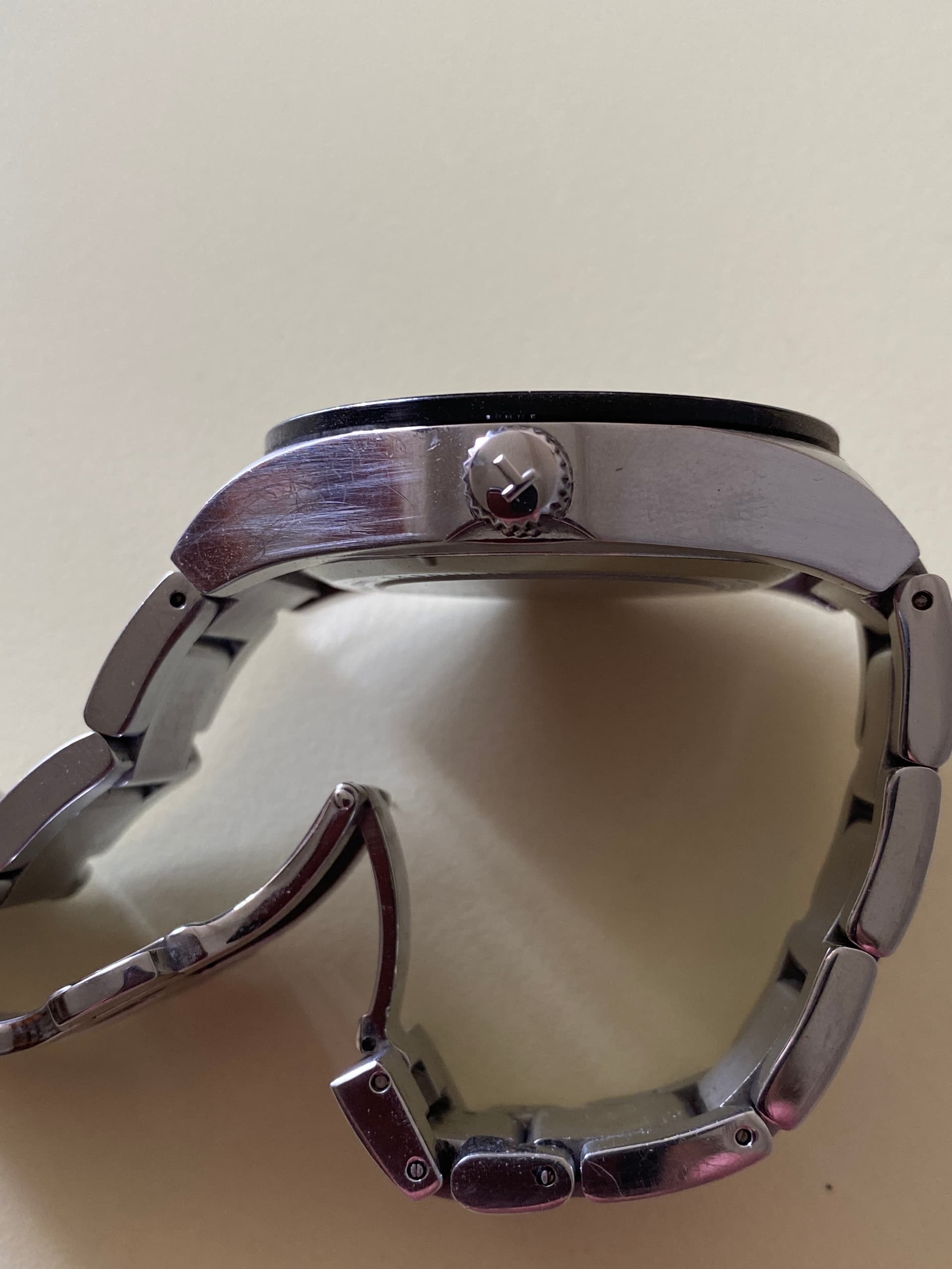 Te koop: Horloge gaat met een beetje pijn in het hart weg. Ik vind 'm mooi, is eigenlijk net iets te groot voor mijn pols en het euvel met de kroon irriteert me en ik ben zelf niet kundig genoeg om het te repareren.