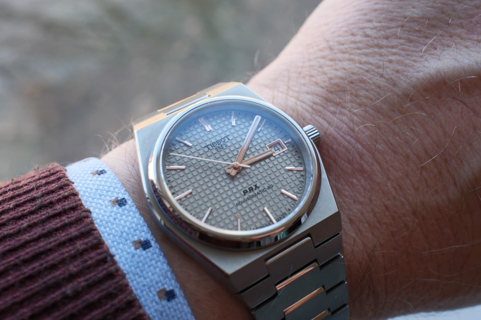 Zo ook deze verrassende Tissot PRX. Ik moest hem gewoon proberen. Ik ben verrast over de afwerking, het gewicht, en draagplezier, maar ik heb een Alpinist die in de weg zit, dus houden wordt hem niet.