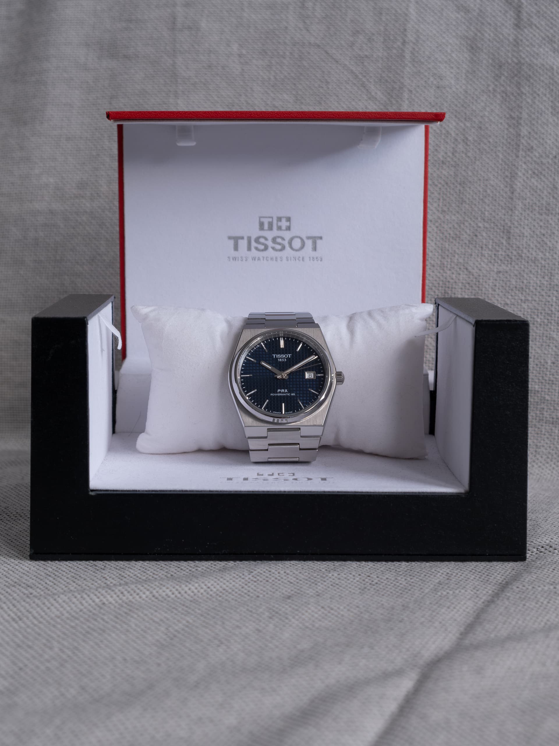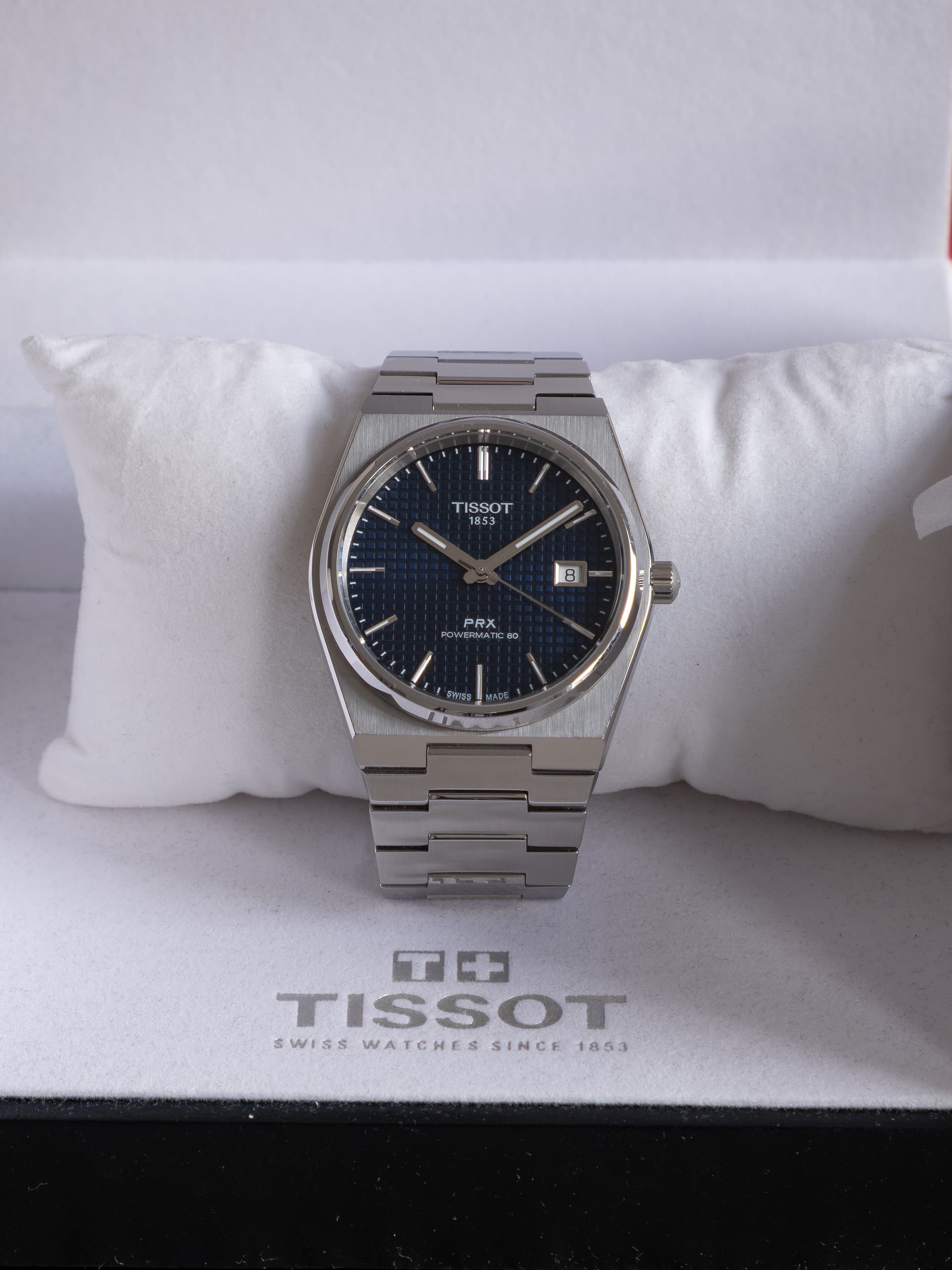 Te koop: Tissot PRX 40mm blauw automaat | Full set (incl. extra originele leren band)