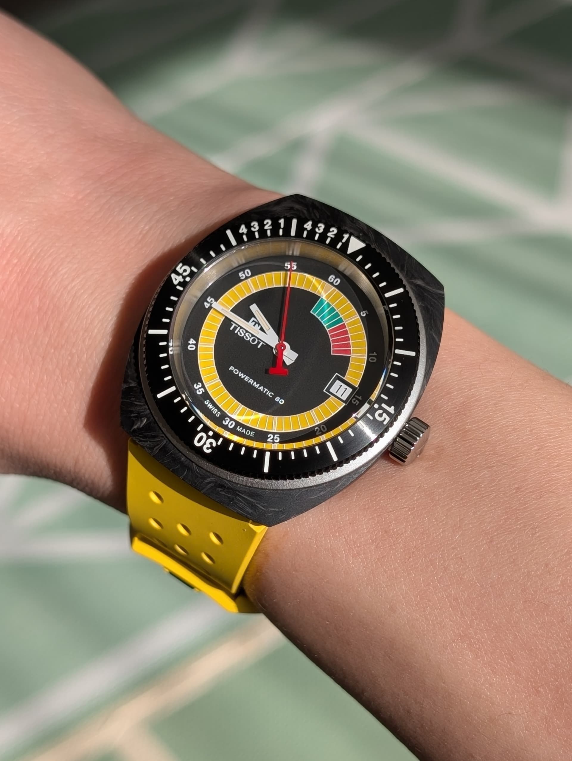 Leuke heruitgave van het origineel en een fantastisch zomers horloge maar hij krijgt gewoon te weinig pols tijd. Daarnaast ben ik ook bezig om de collectie wat uit te dunnen en het horloge potje weer aan te vullen na wat recente aankopen. Dus deze mag ook de collectie verlaten.
