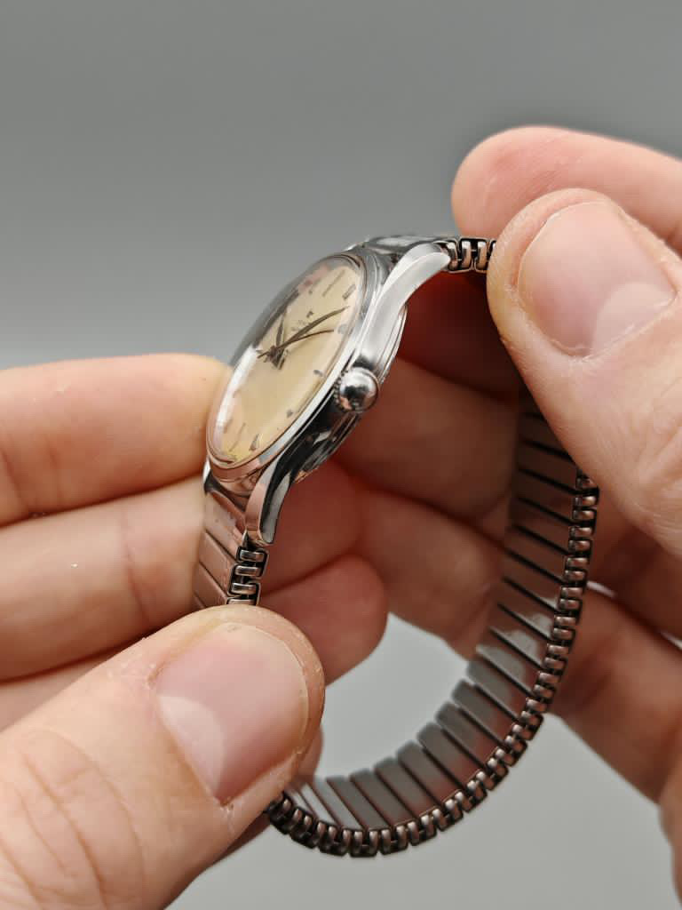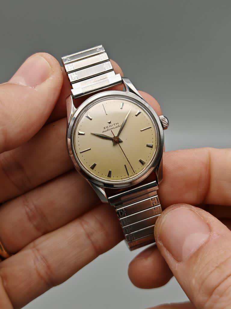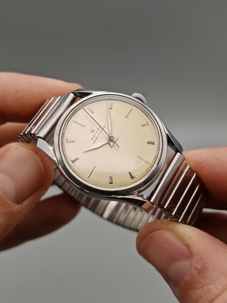 Op en top vintage … prachtige Stellina eggshell dial, prachtige lyre lugs, originele knop kroon met Zenith logo, feuille hands. Ik stop met praten … check gewoon de foto’s.