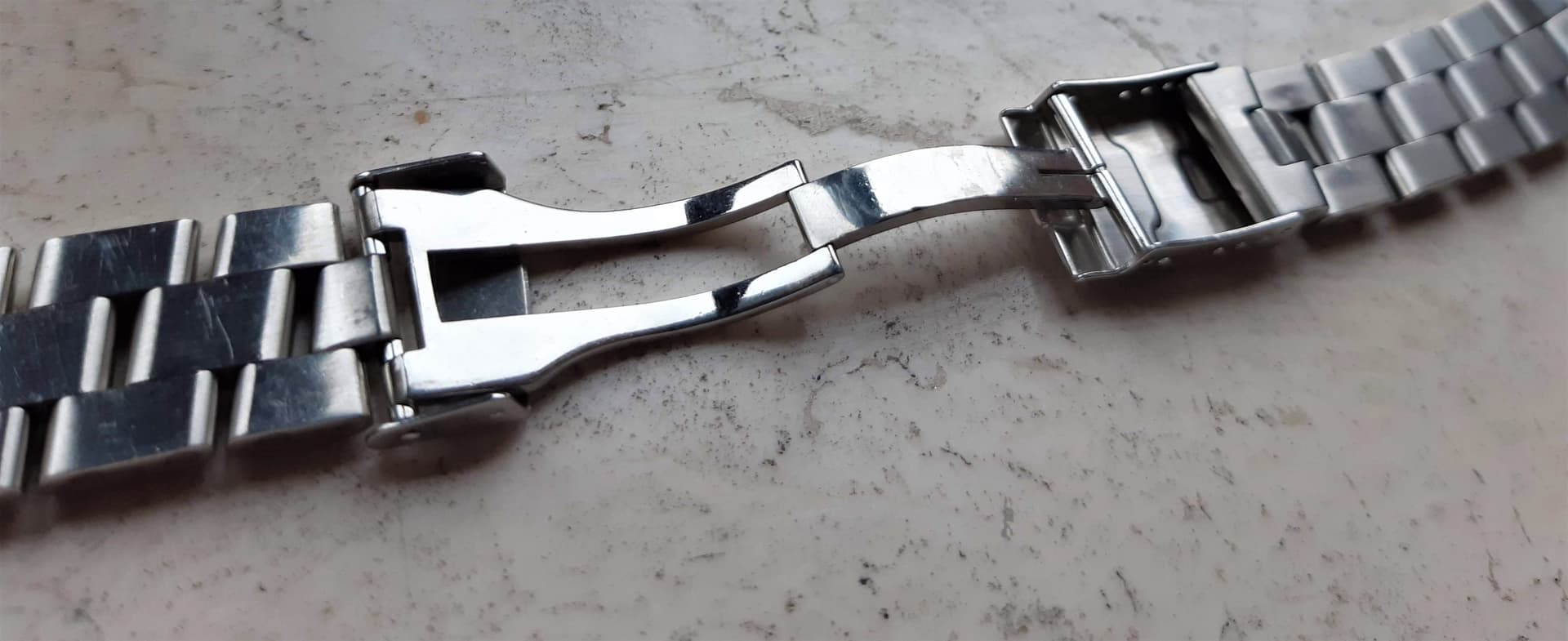 De band verkeert in een mooi gedragen staat. GEEN diepe krassen. Hij opent en sluit perfect.