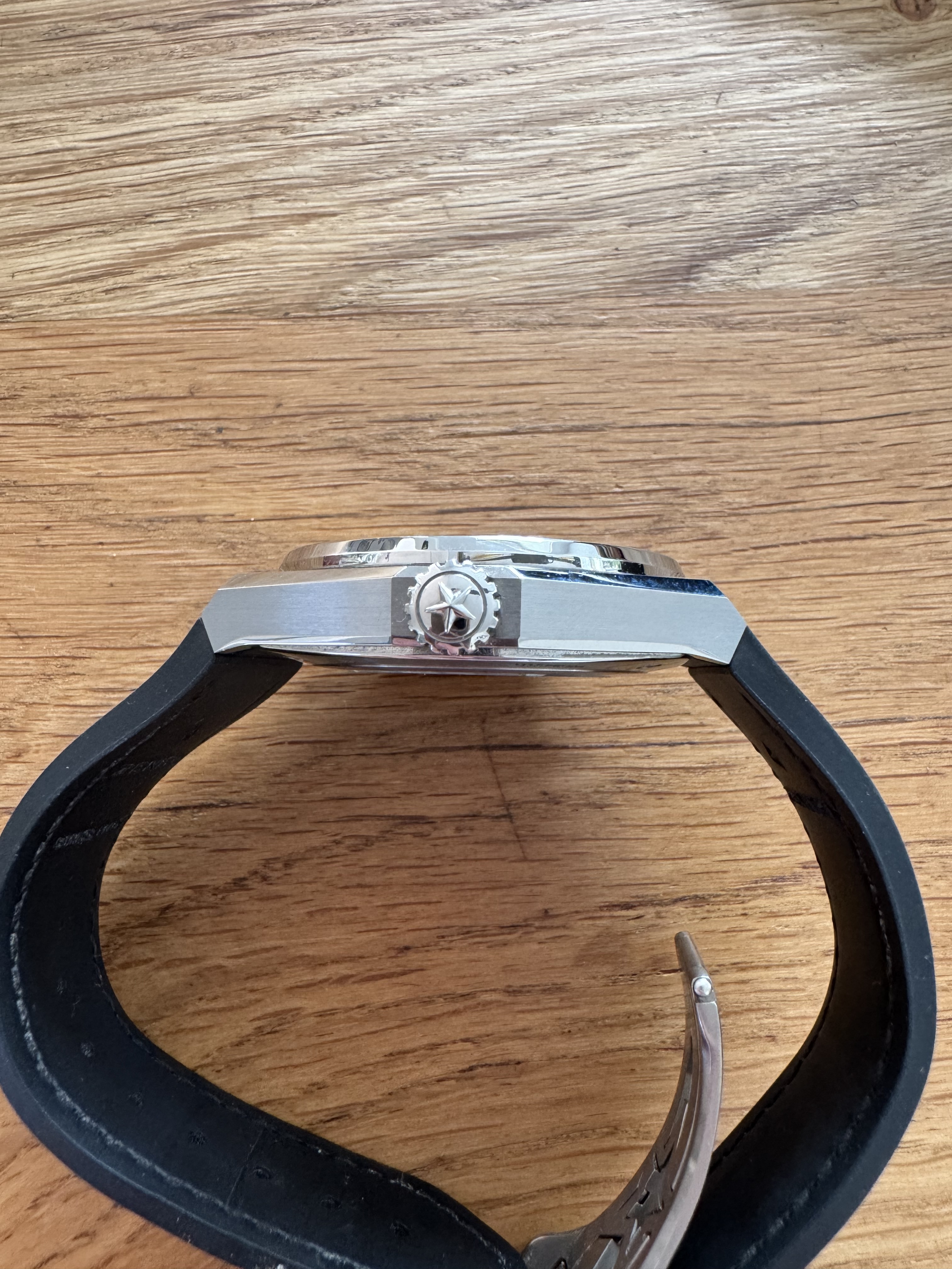 Beide supervette horloges: de Zenith heb ik al ietsje langer in bezit maar eigenlijk maar 3 keer gedragen. Zelfde geldt voor de GS: nog niet zo lang in bezit, maar ik moet gewoon nooit meer een dress(achtige) horloge kopen. Moet gewoon een toolwatch om doen, of iets vintage sportiefs, dat past beter met mij