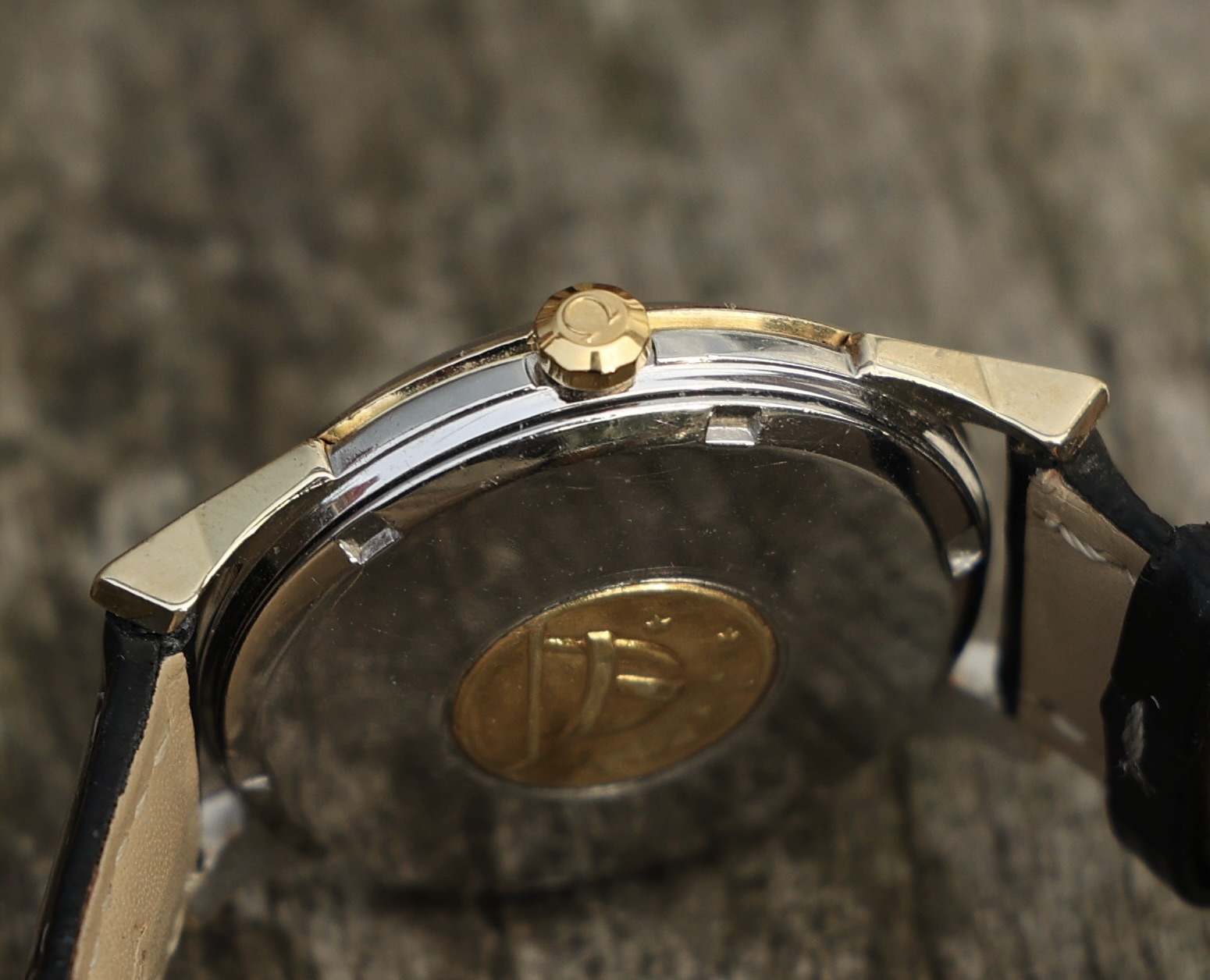 Conditie (krassen, werking etc): hij wordt dit jaar 58… De dial en bezel zien er heel mooi uit, de case-back vertoont sporen van leven. De foto van de achterzijde maakt het wel iets erger dan met blote te oog te zien. Ik heb hem in 2024 volledig gekocht met Omega service.