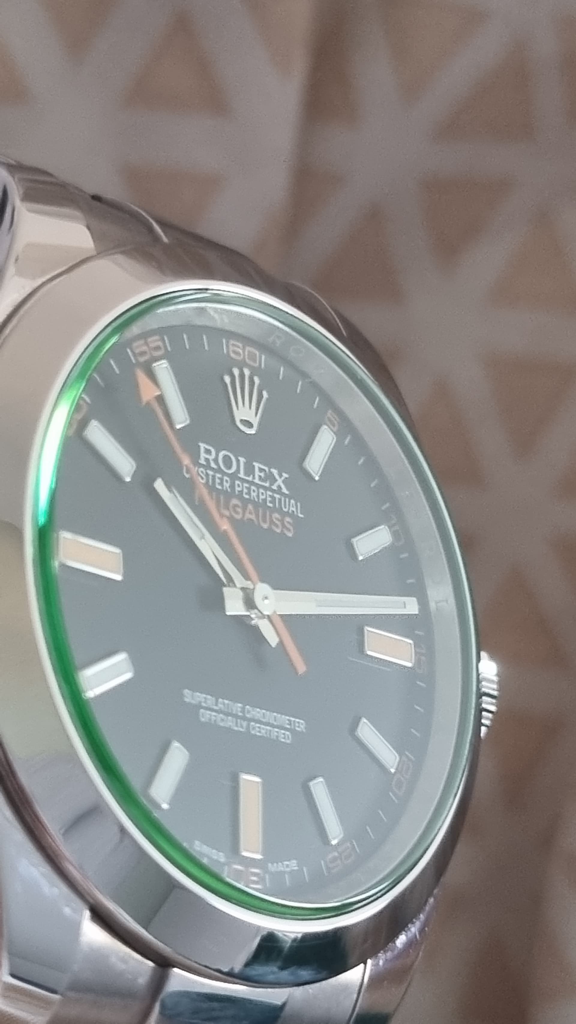 Afgelopen zomer de Milgauss aangeschaft. Een eigenzinnige Rolex waarvan de bliksemschicht secondewijzer minder in your face is dan op de foto. De groene gloed (glace verte) verwerkt in het saffierglas is een genot om te ervaren. De Milgauss is omringd door een natuurlijke charme, eigenzinnigheid maar brult als het nodig is.