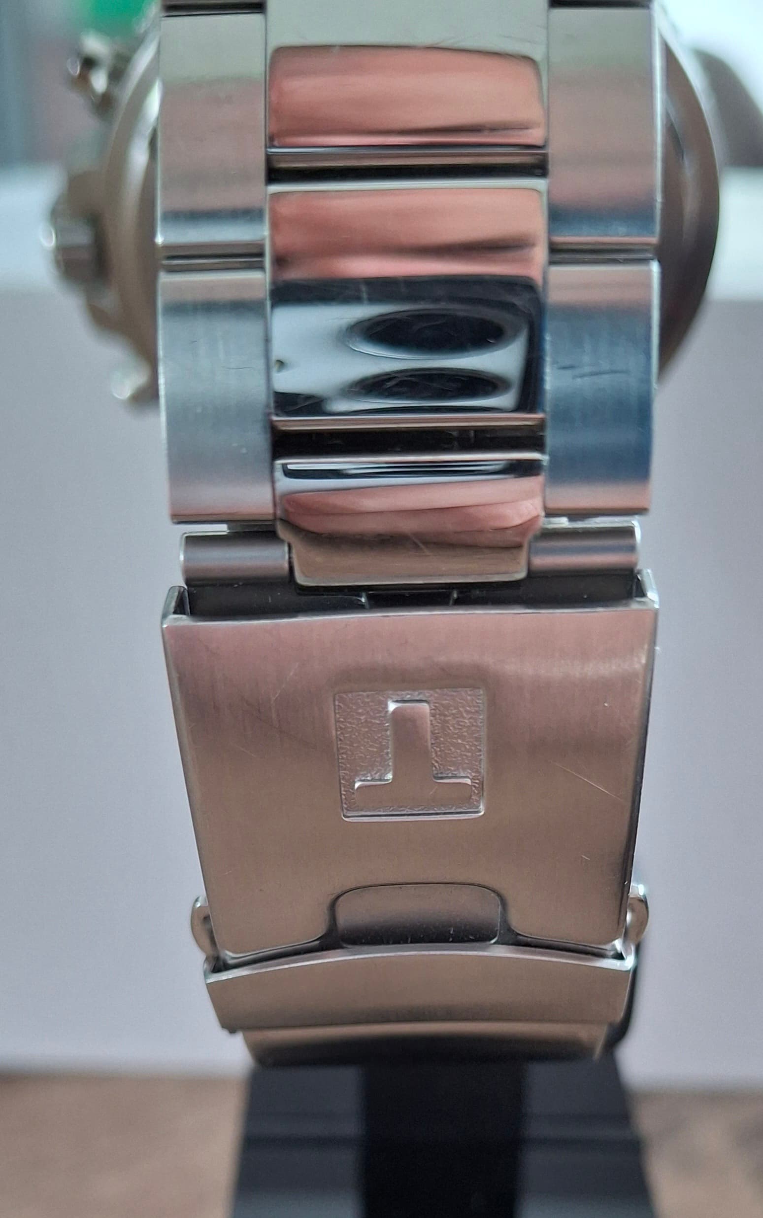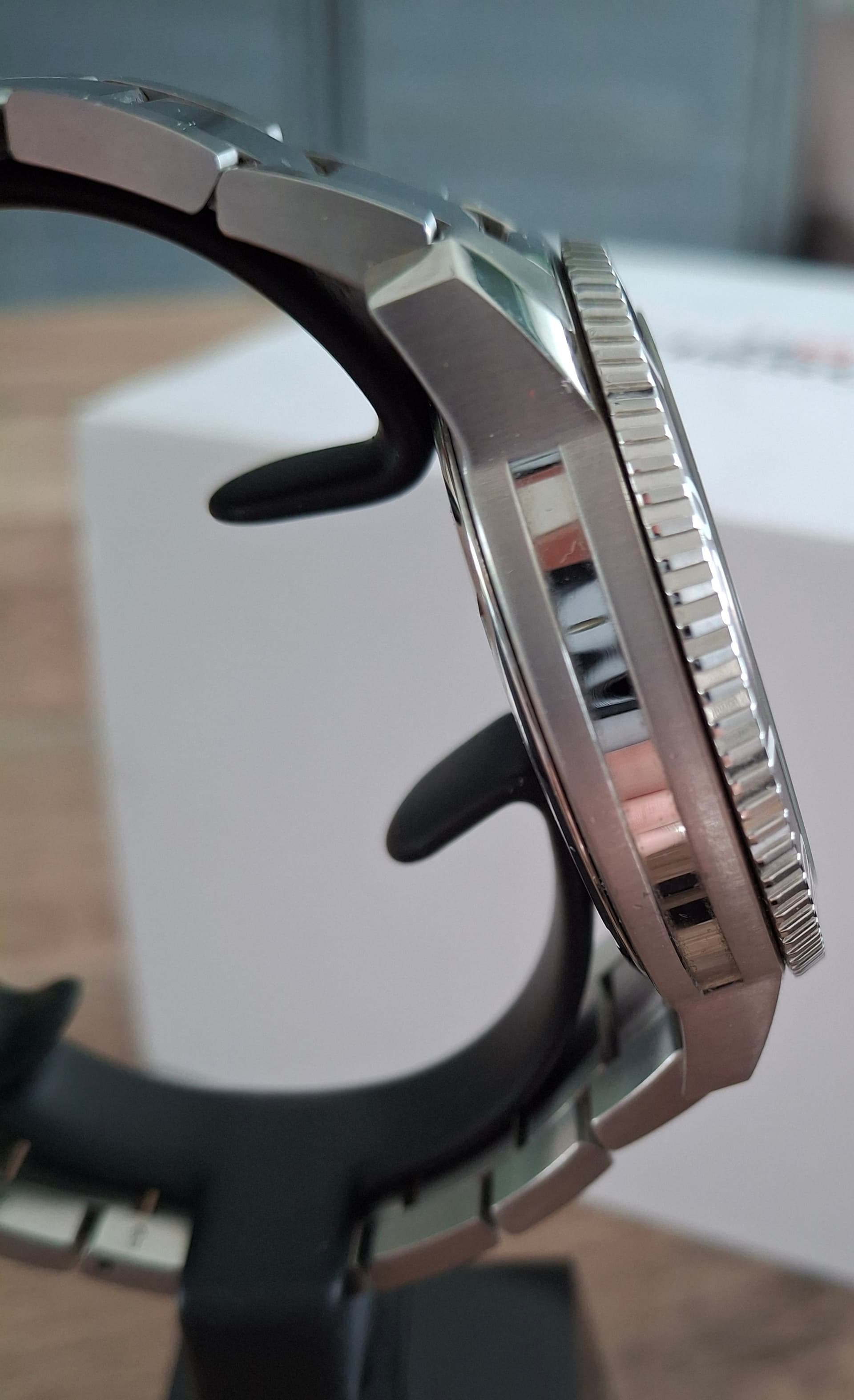 Conditie (krassen, werking etc): minimaal 9/10. Op de foto’s heb ik de haarlijntjes op de band bloot gelegd. De sluiting heeft een paar deskdive lijntjes. Kast en glas zijn onbeschadigd.